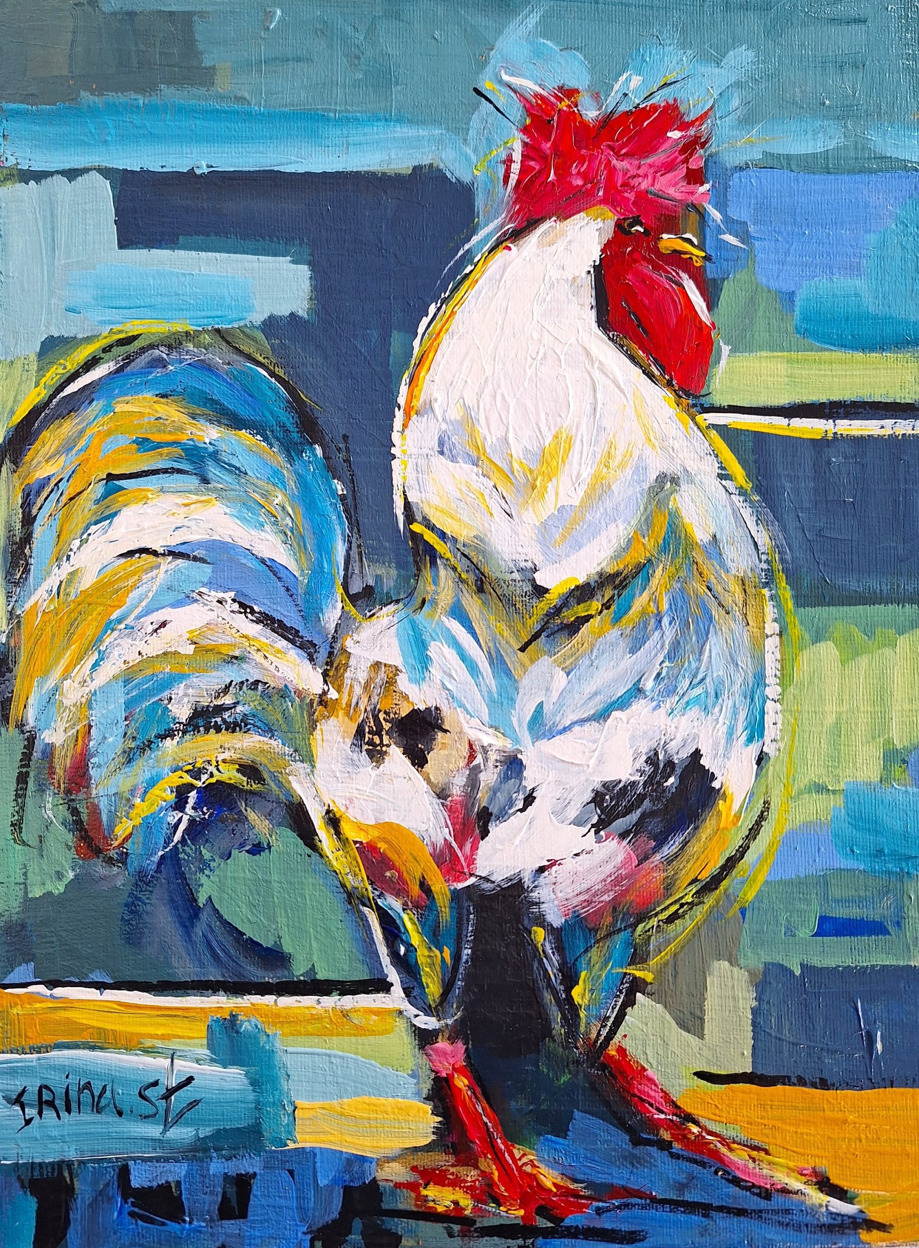 גלו את החיות והצבעוניות של יצירה זו בציור שמן מקורי. הציור מציג תרנגול צבעוני עם נוצות עשירות בגוונים מרהיבים, המעניק תחושת חיים ותנועה לכל חלל. משיכות מכחול נועזות וצבעים חיים מדגישות את היופי והפרטים של הציפור, ויוצרות יצירה שמוסיפה צבע וייחודיות לבית או למשרד.