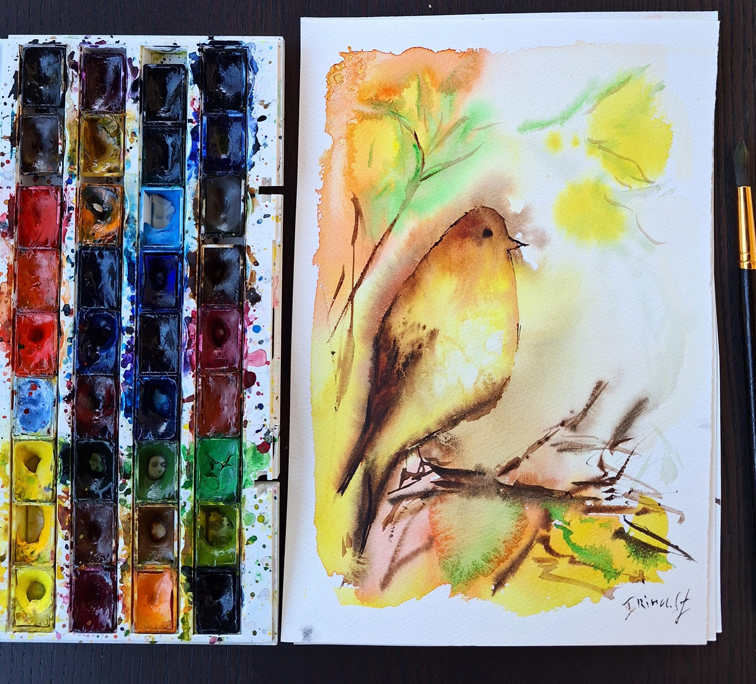 A bird Watercolor Painting on Cotton Paper – Single Painting original
