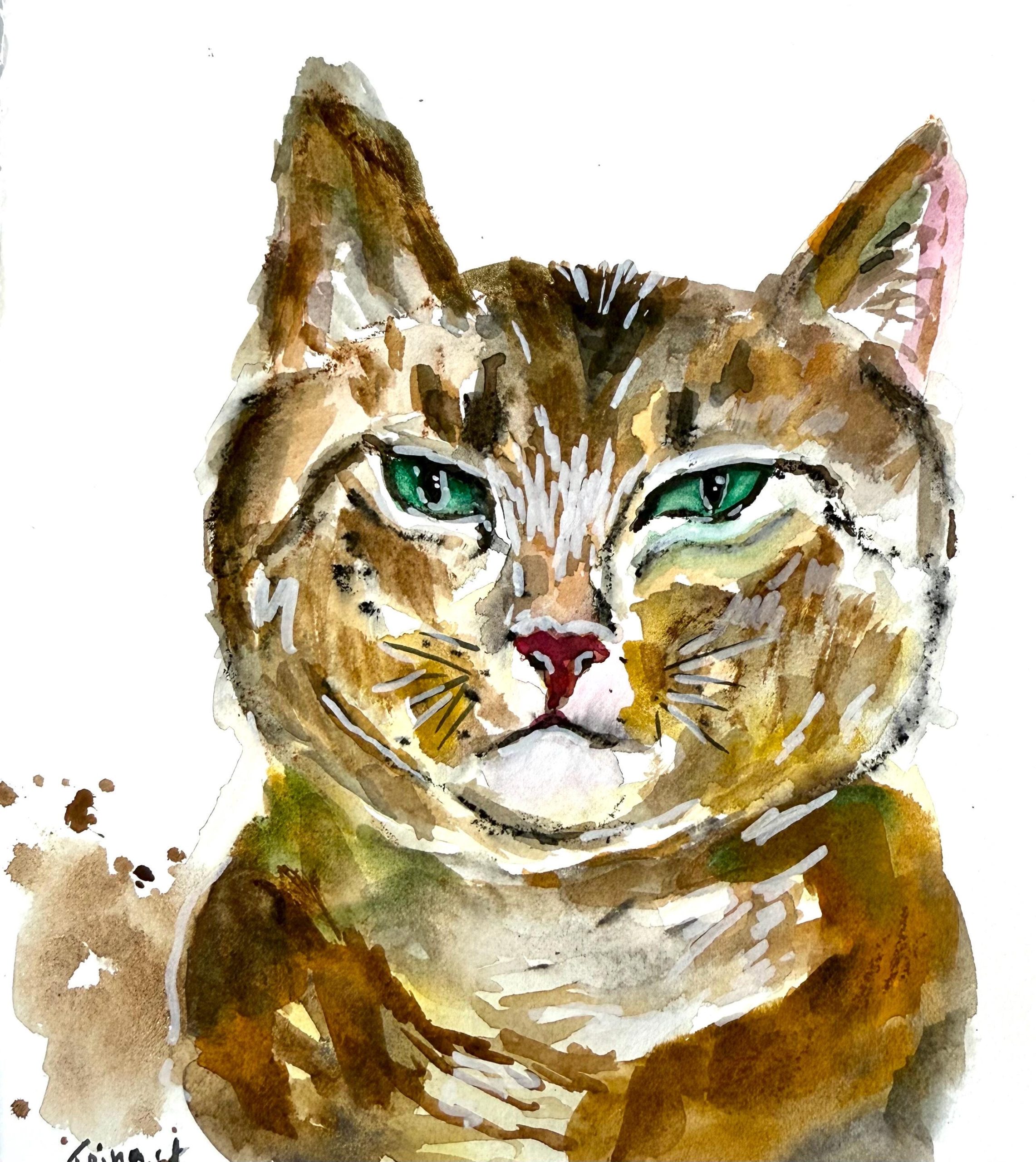 Colorful Cat Watercolor Painting: Original Art on Cotton Paper