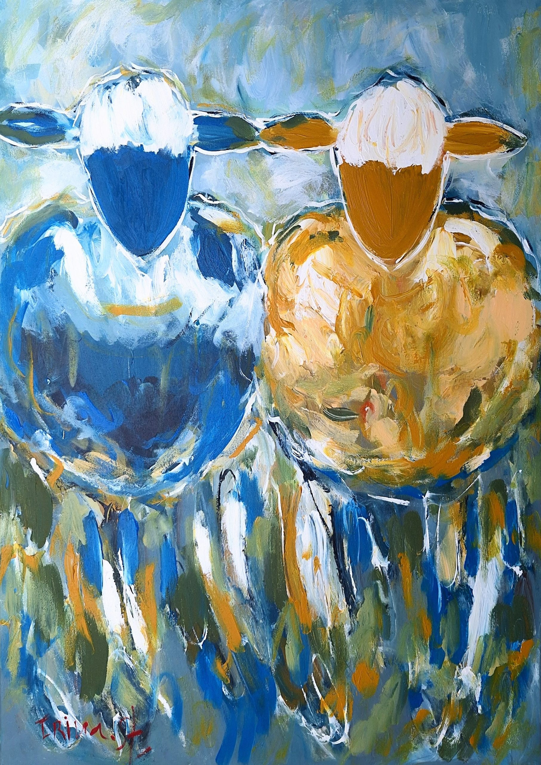 ציור כבשים זוגי צבעוניות מודרנית – צבעי שמן על קנבס איטלקי