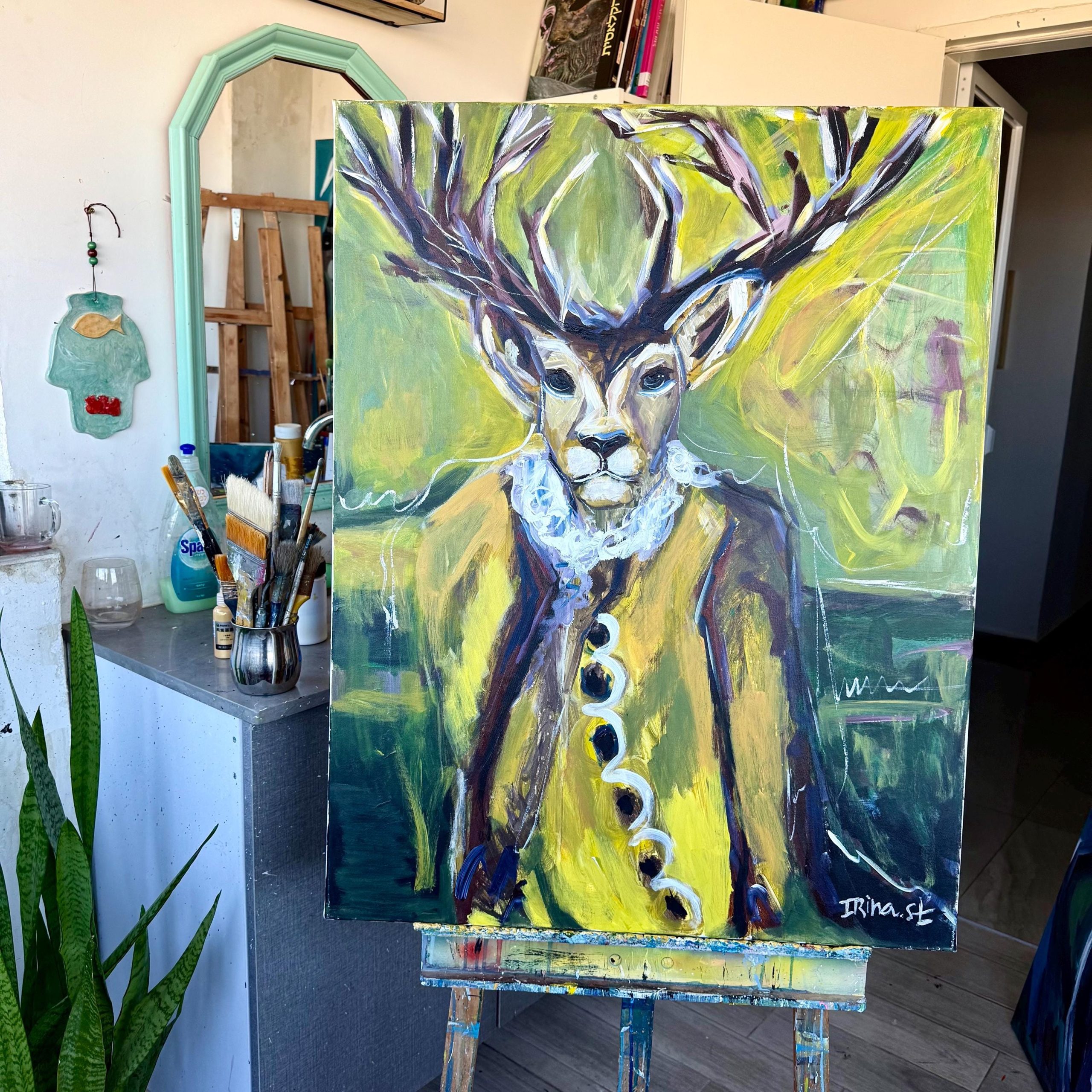 Bring a touch of sophistication and whimsy to your space with this original oil painting of a deer in a suit. Hand-painted on high-quality canvas, this one-of-a-kind artwork combines the beauty of nature with a modern twist. Perfect for a living room, office, or bedroom, this unique piece makes a statement and adds personality to any interior. Ideal as a gift for art lovers or anyone looking to elevate their home decor with a truly distinctive painting. Ready to ship and designed to impress!