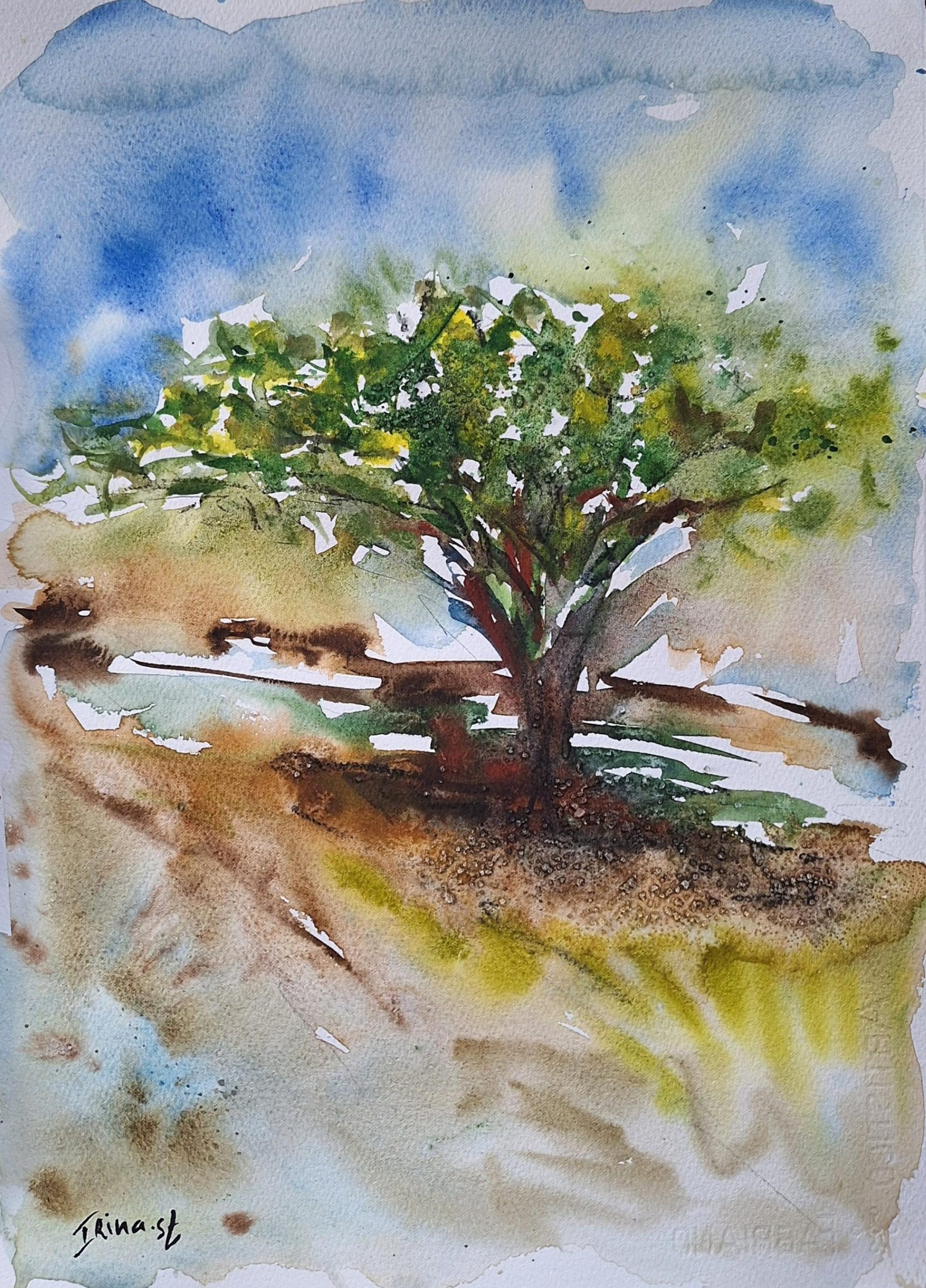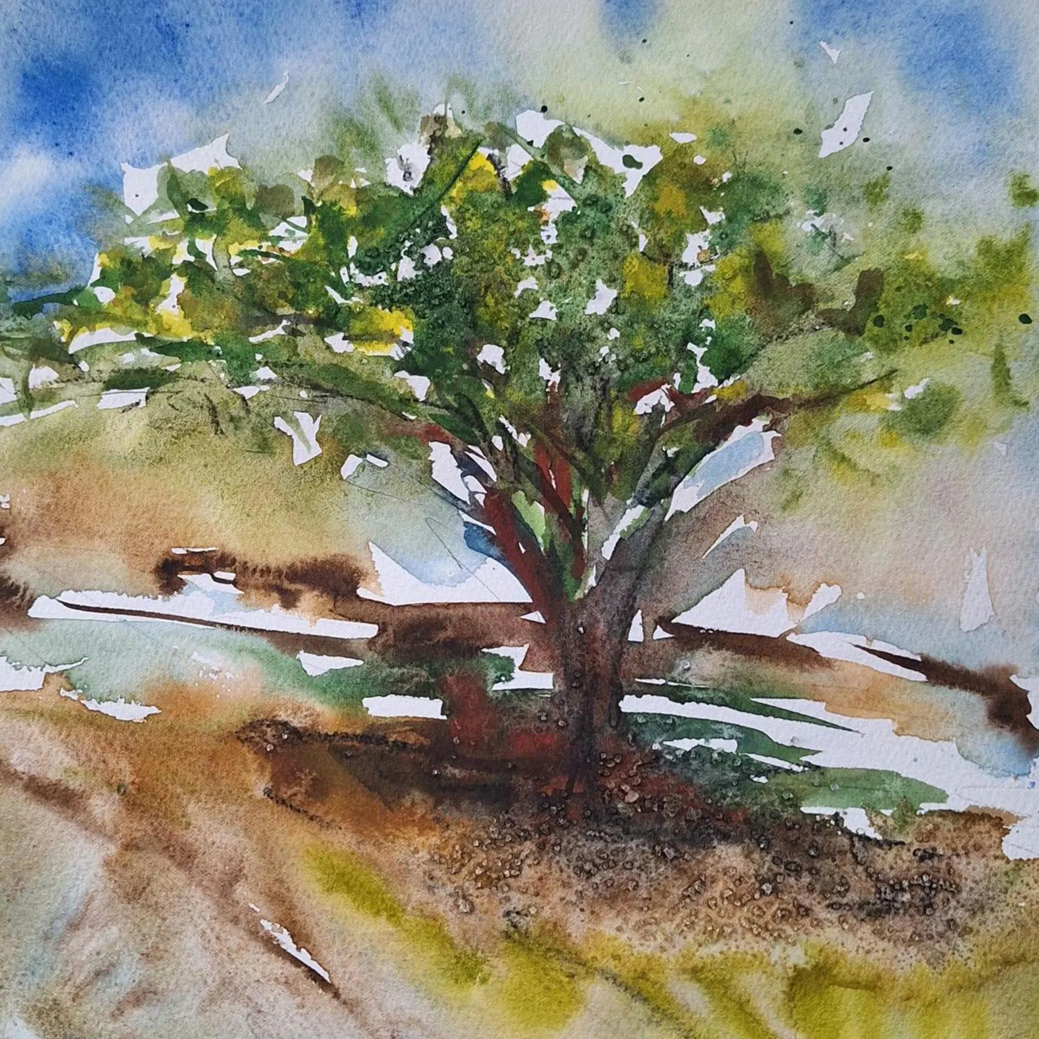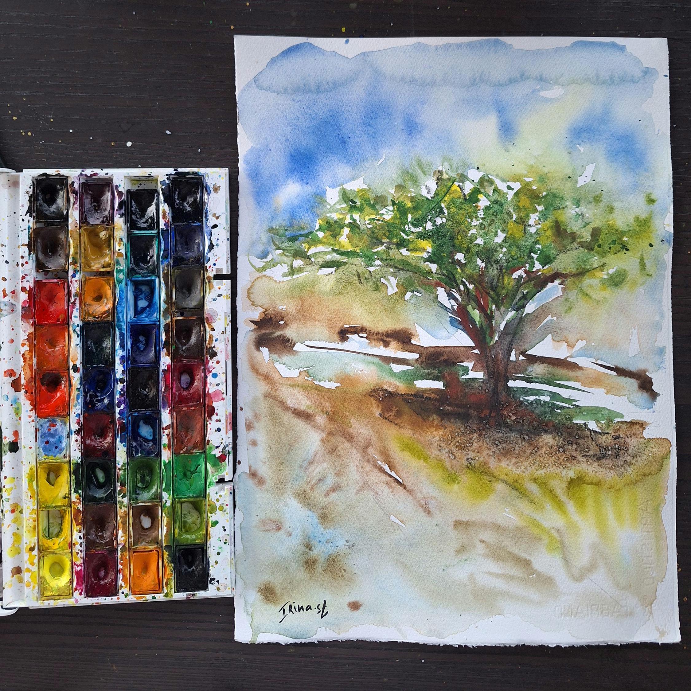 Desert Tree Watercolor Painting: Abstract Nature Art (11×15 inches)