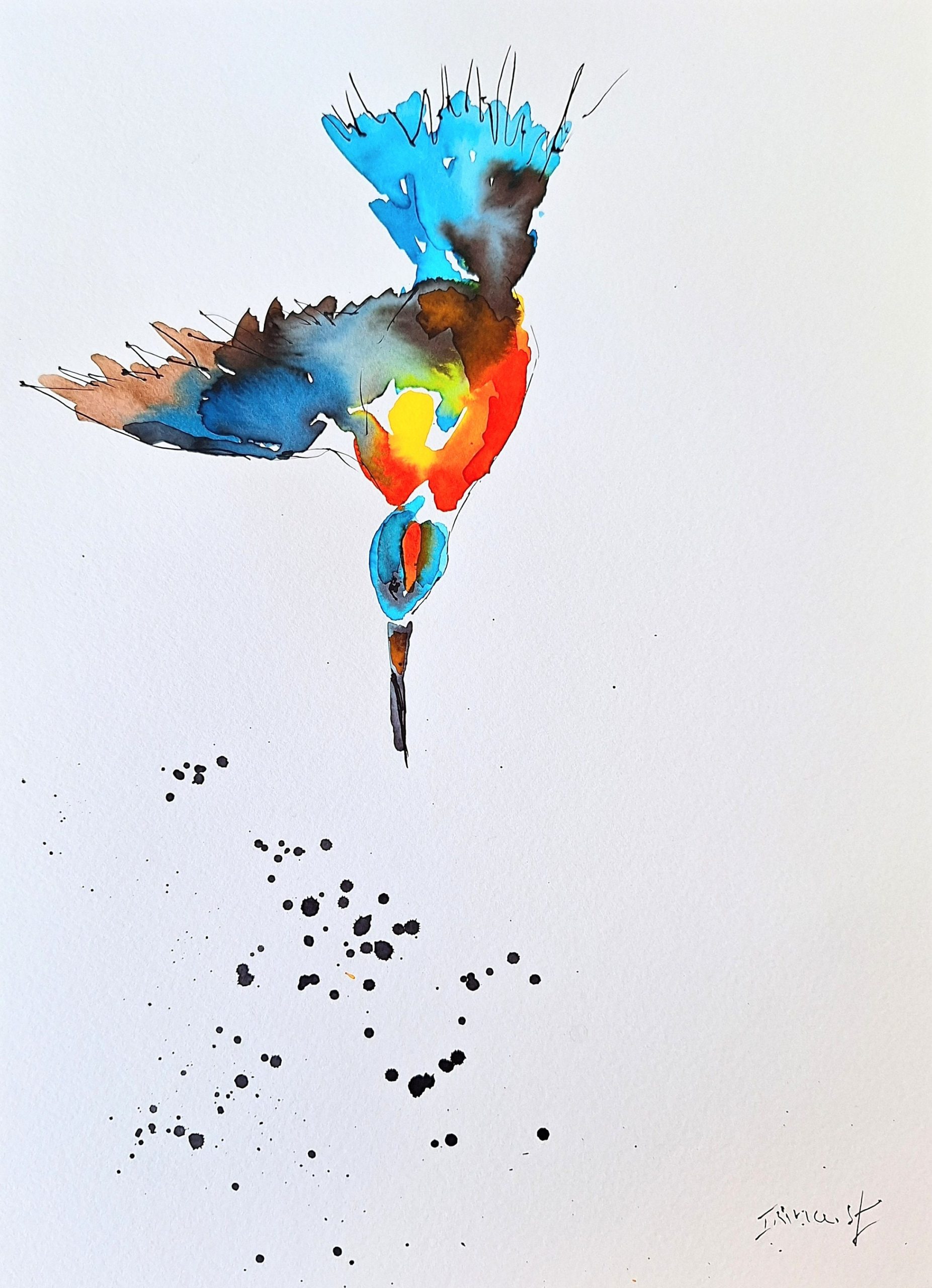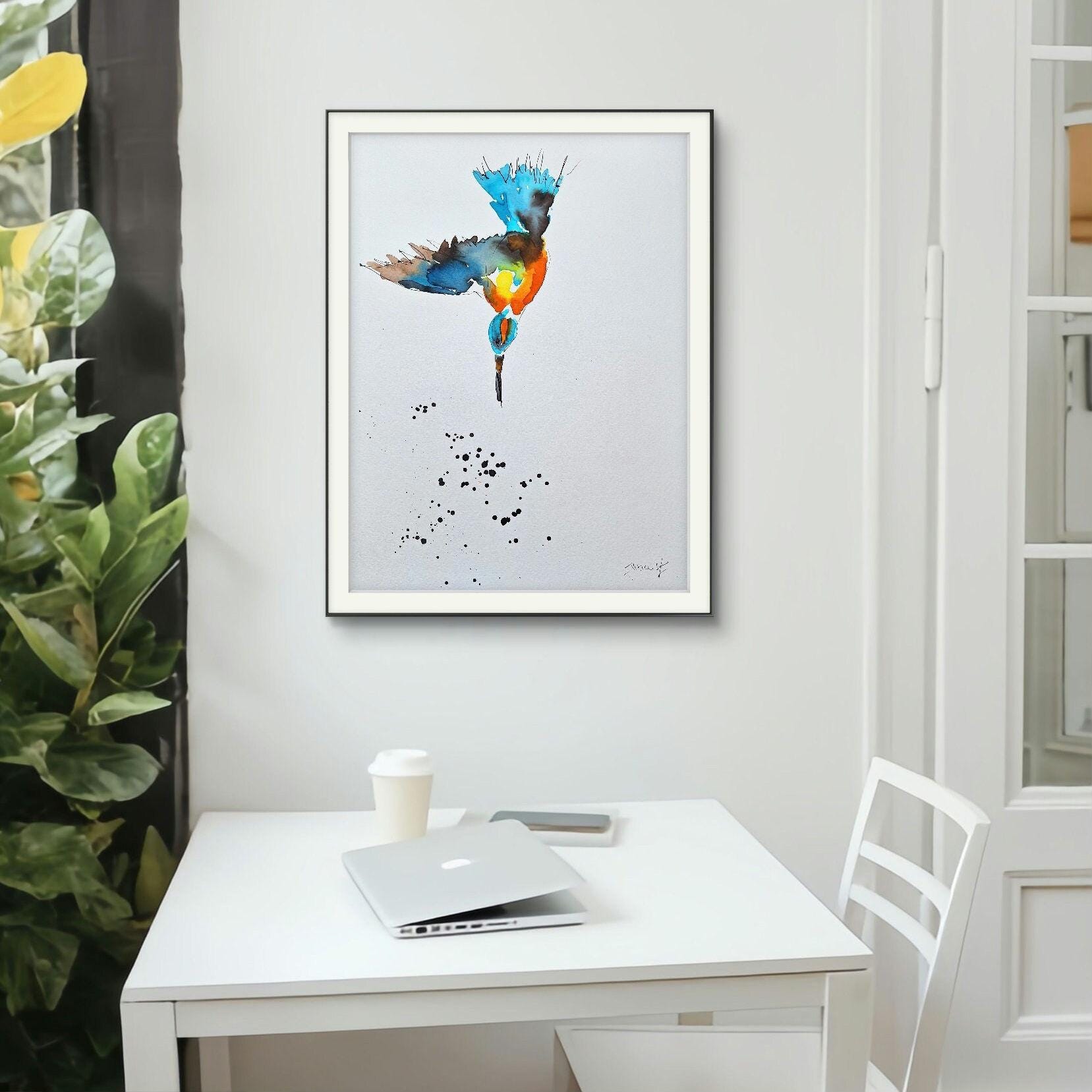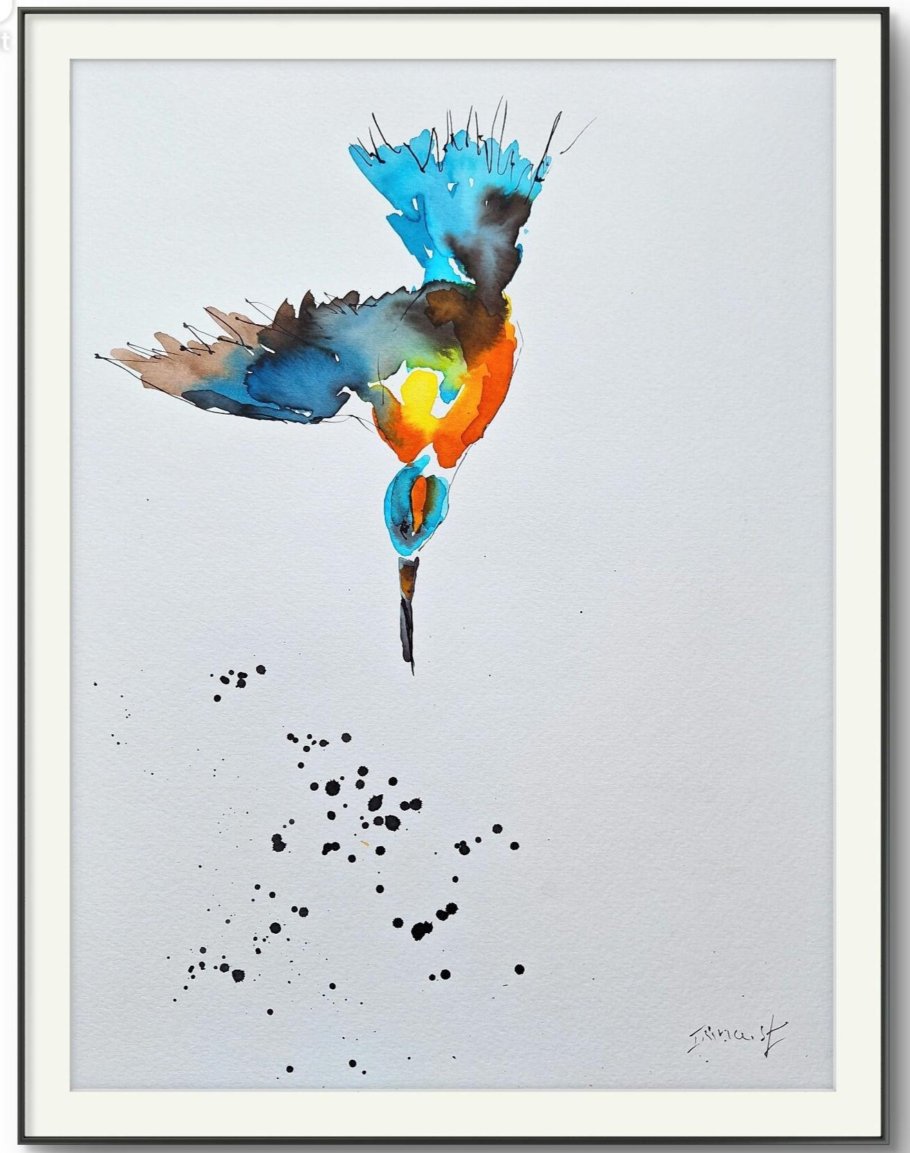 Diving Kingfisher – Minimalist Colorful Art Size 9.8/13.8, single source seller