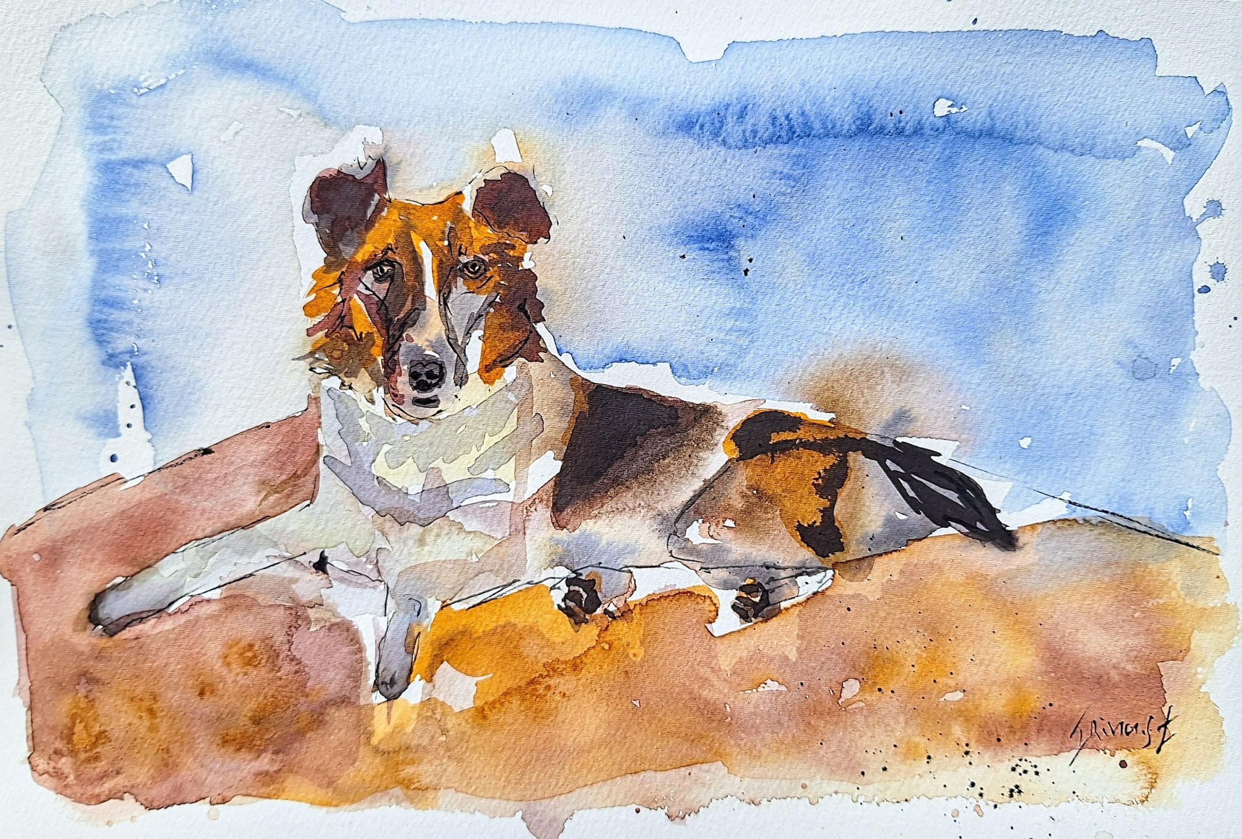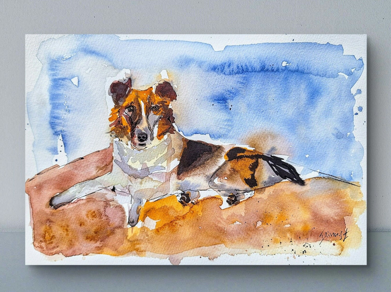 Dog Colorful Watercolor Painting on Cotton Paper – Single Painting
