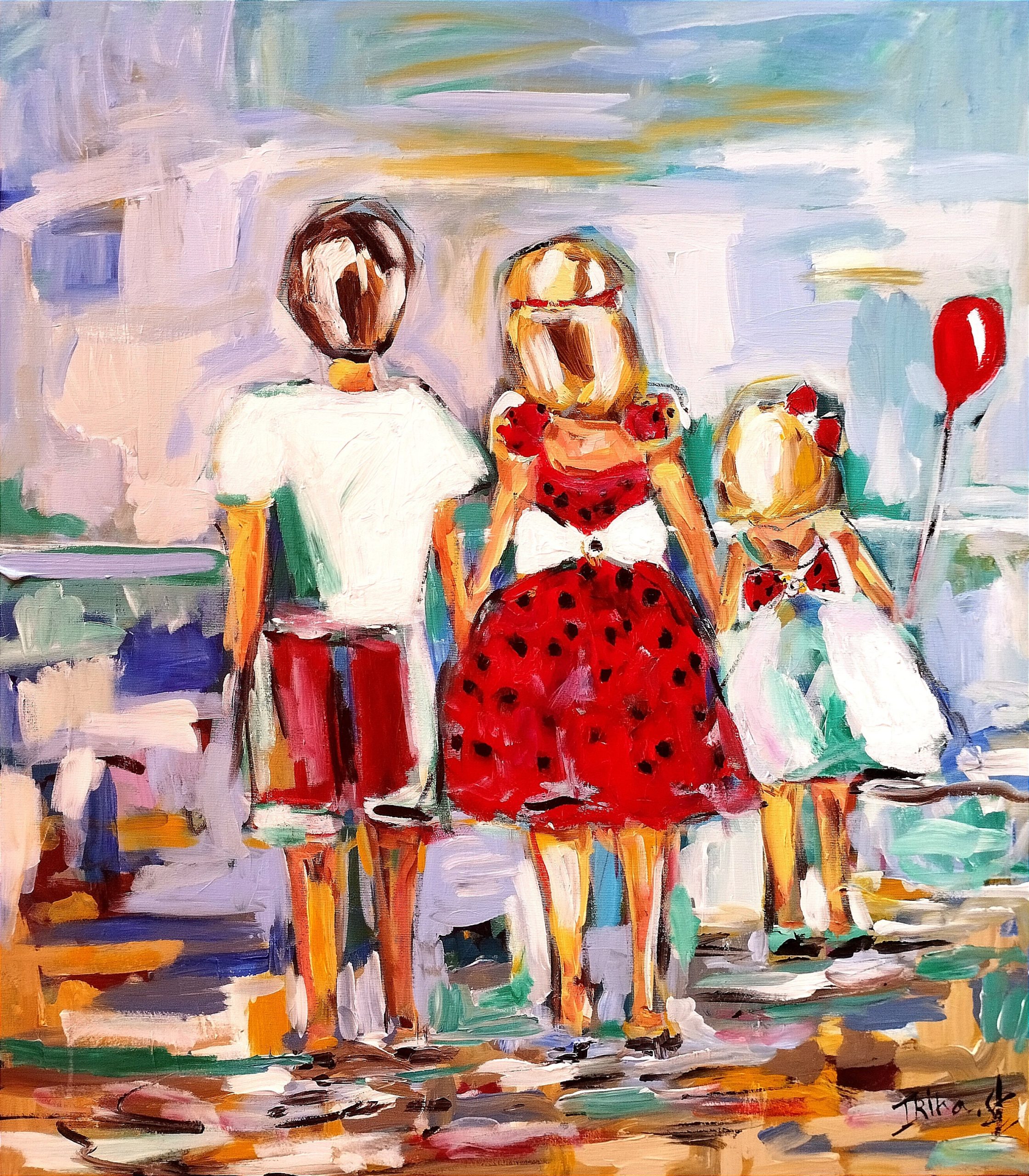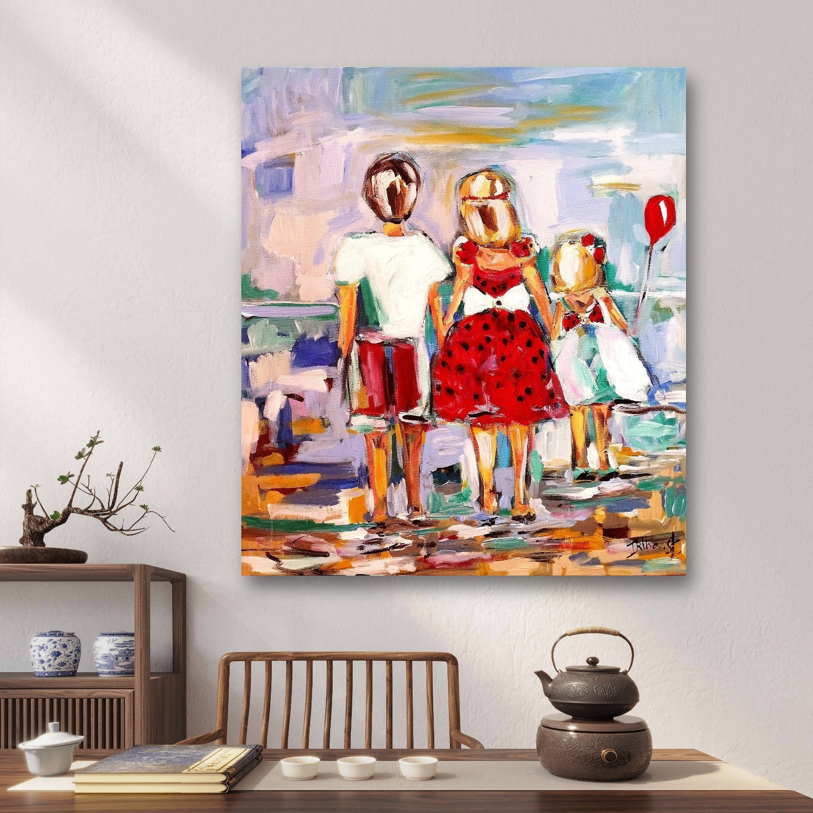 family Abstract Figurative Art on Canvas | Modern Style Painting for Wall Decor