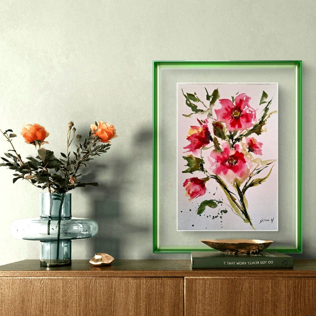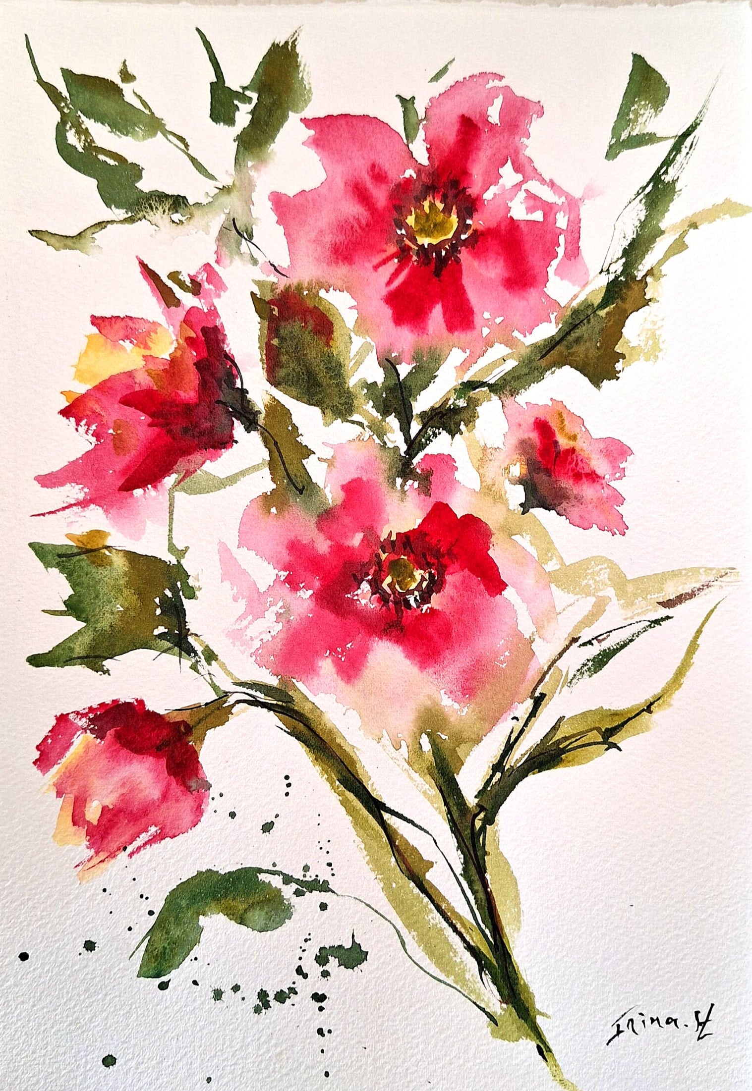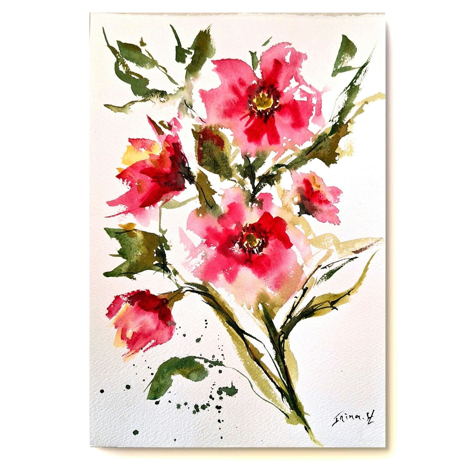 Handmade Floral Watercolor Painting: Abstract Flower Art (7.8/11.8 inches)