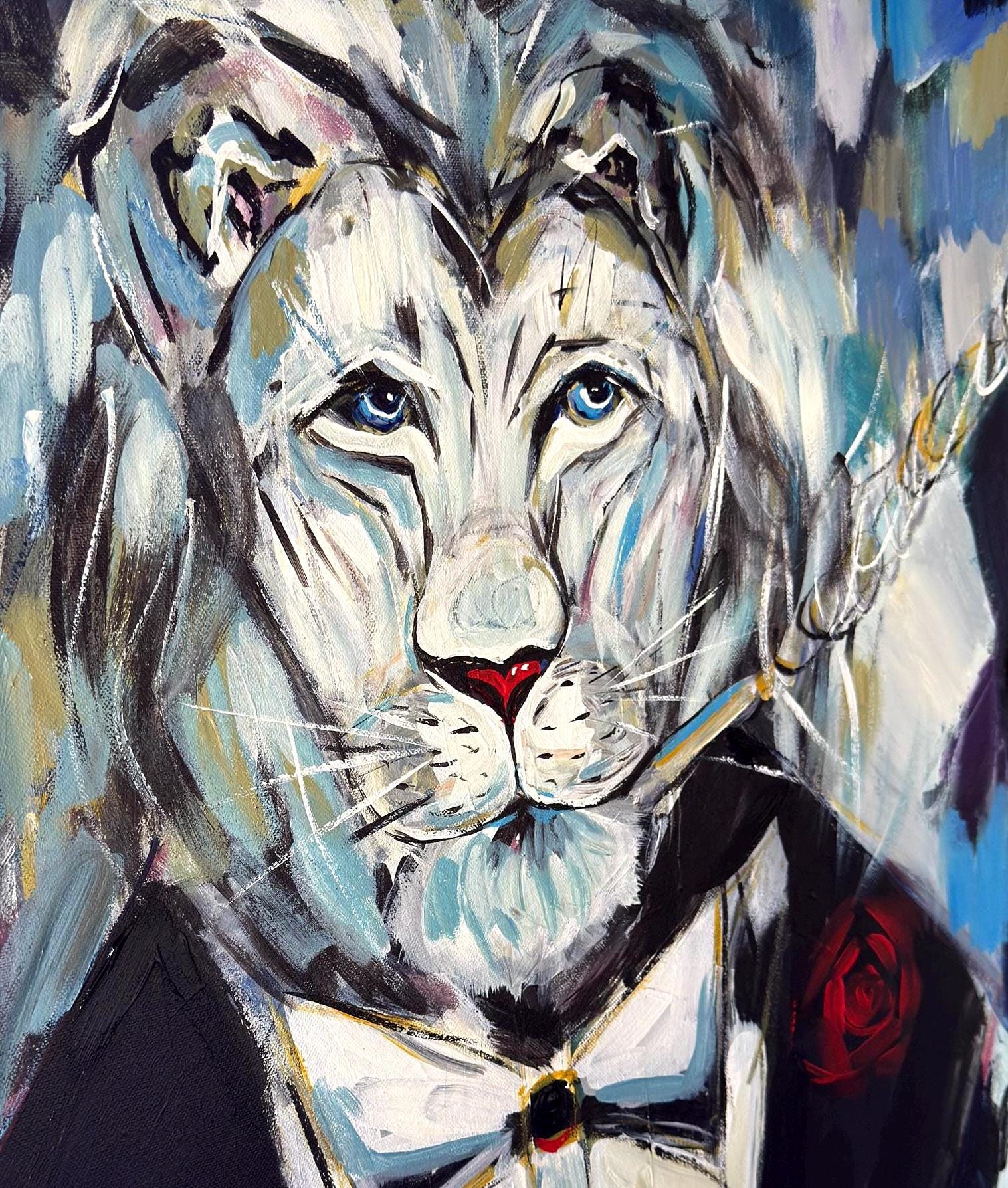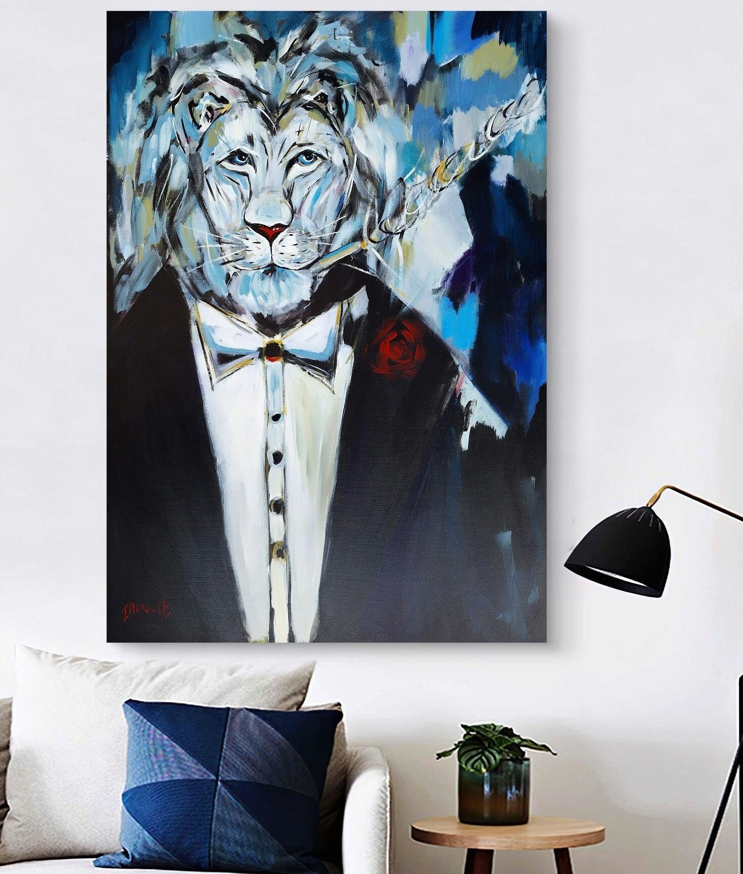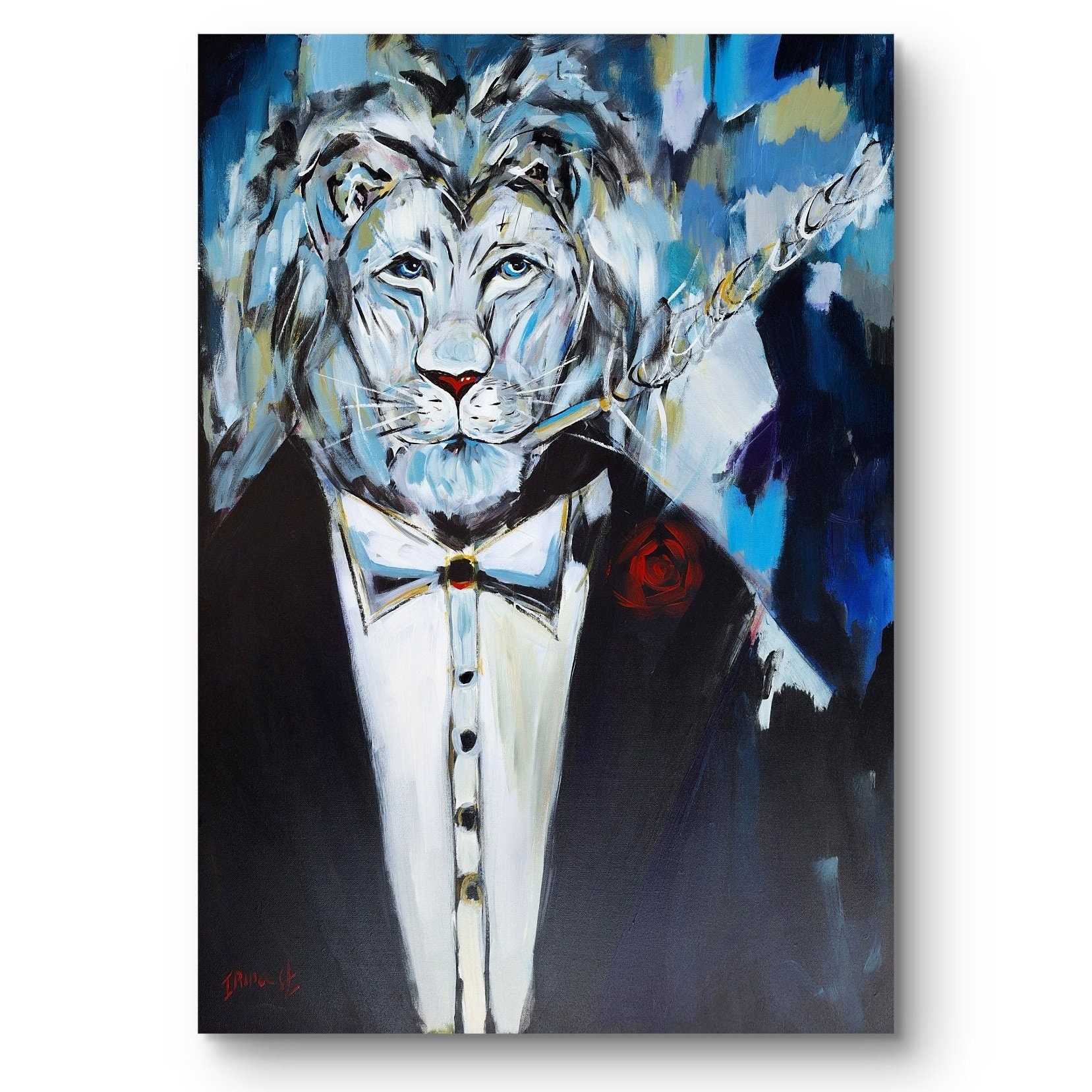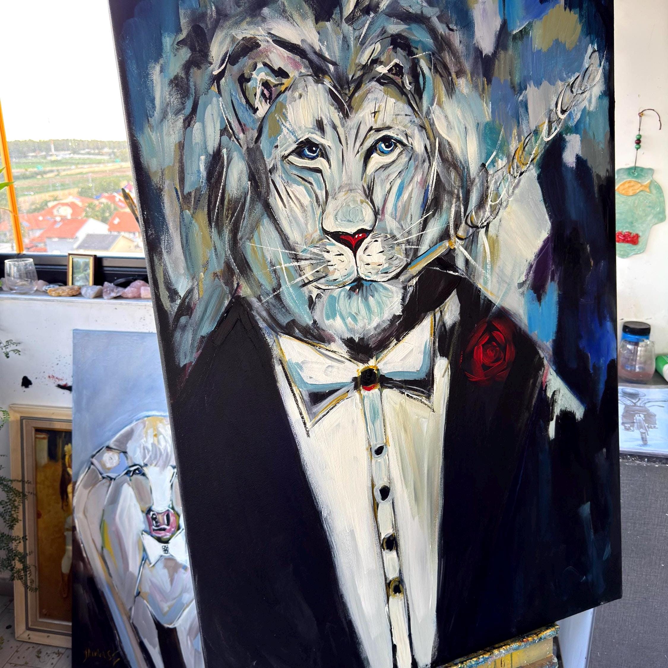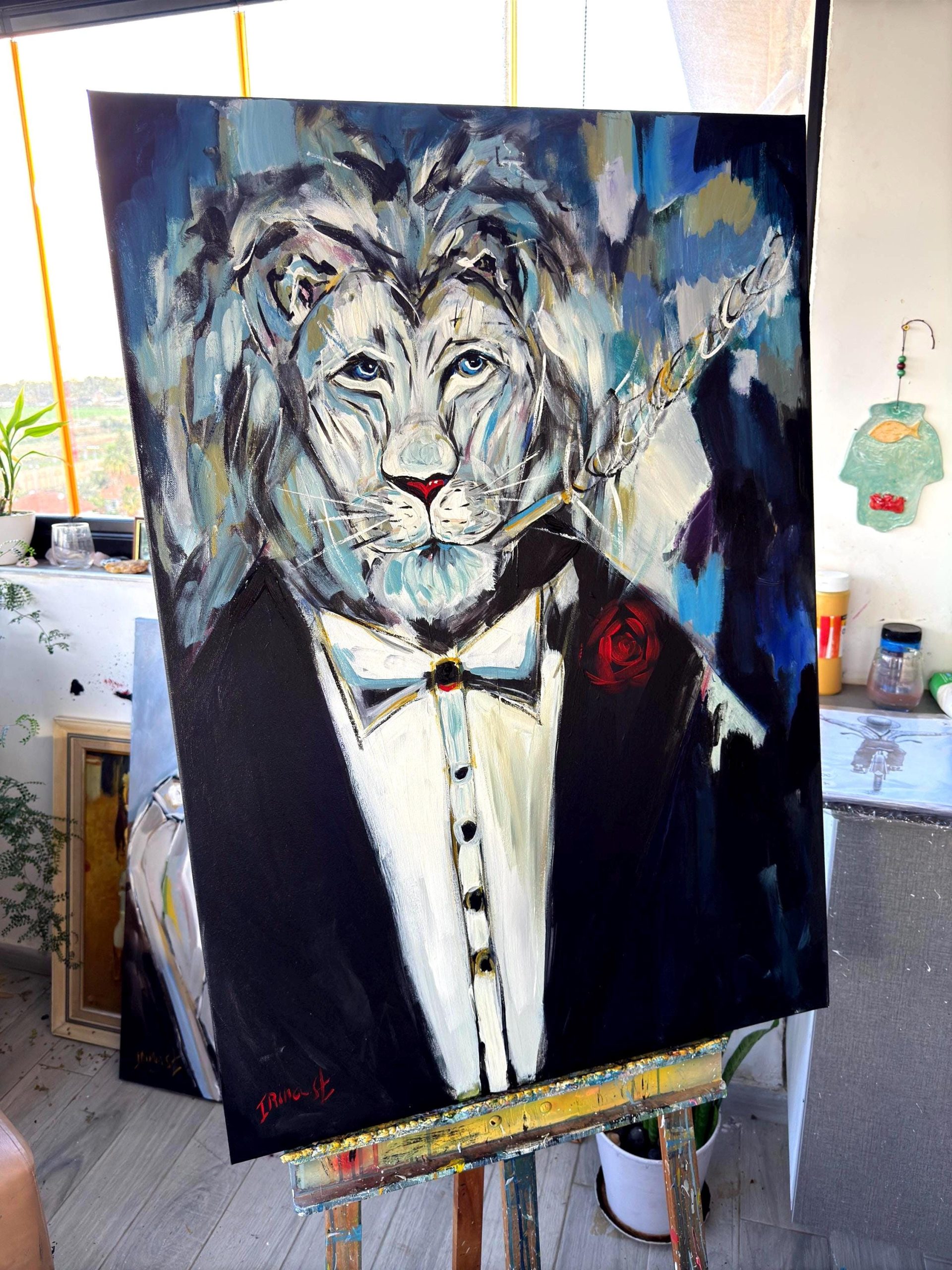 Handmade Gentleman Lion Portrait Painting on Canvas
