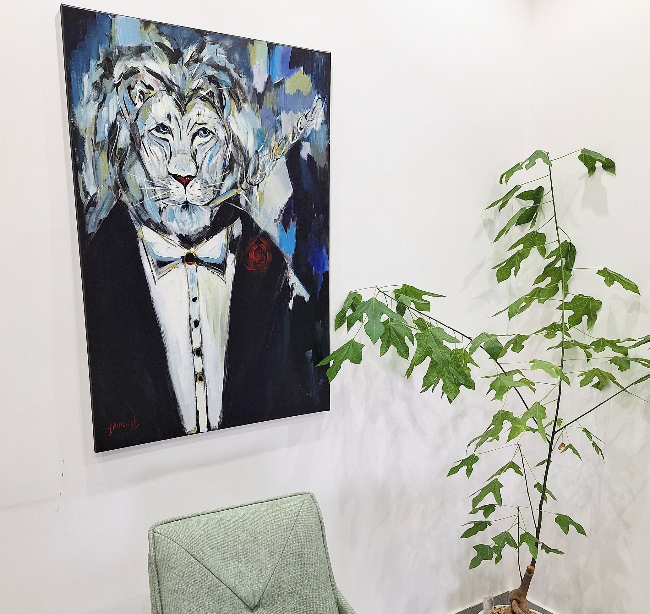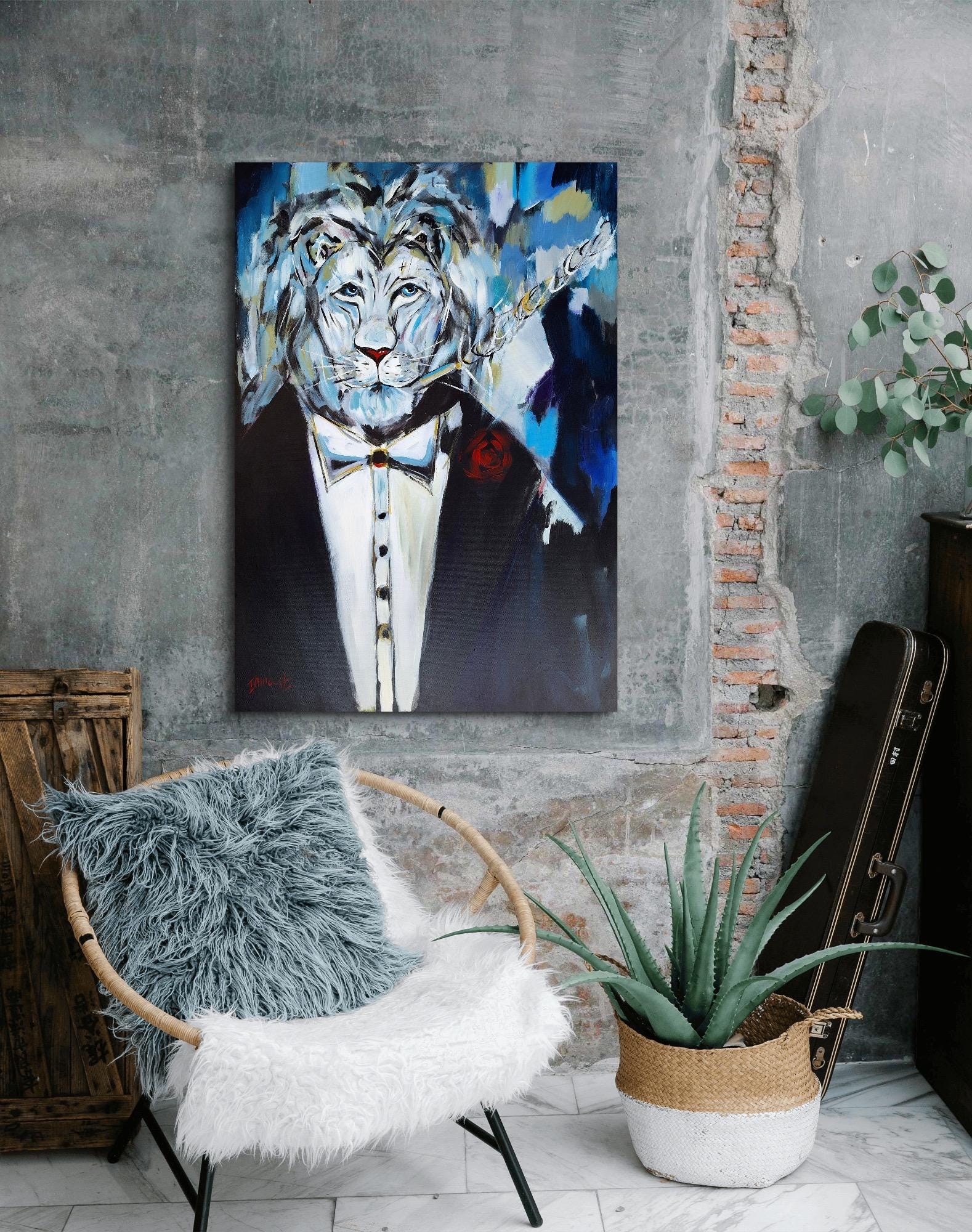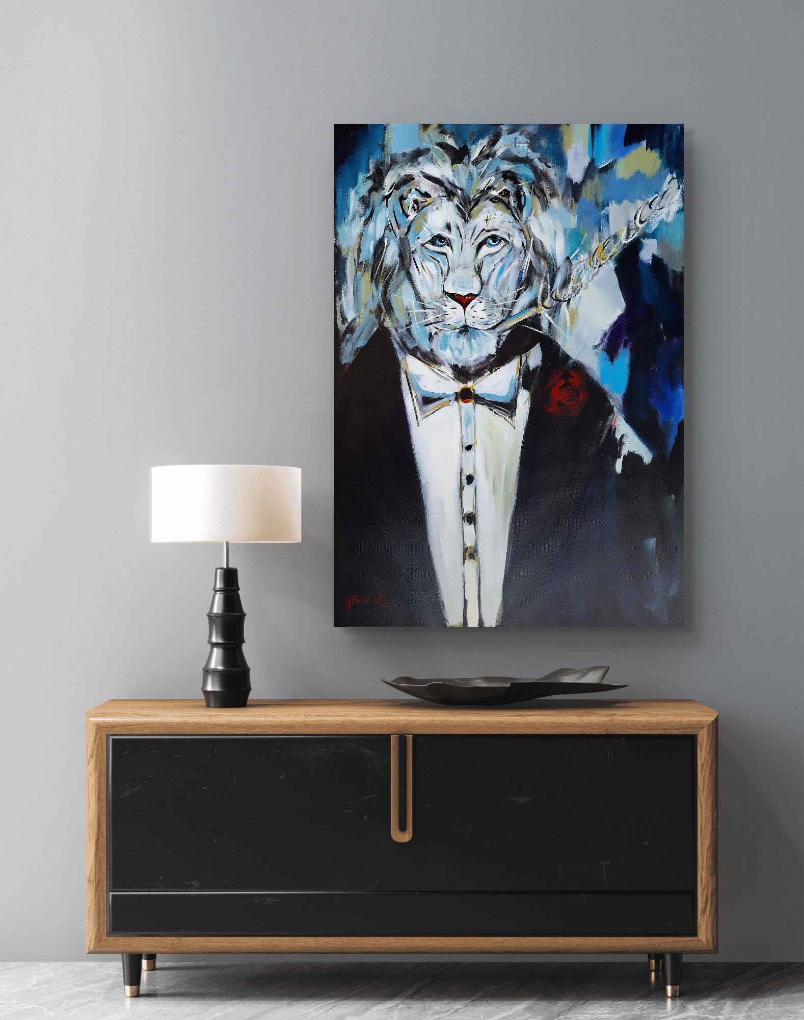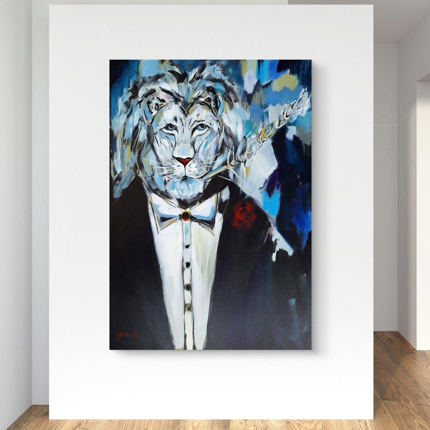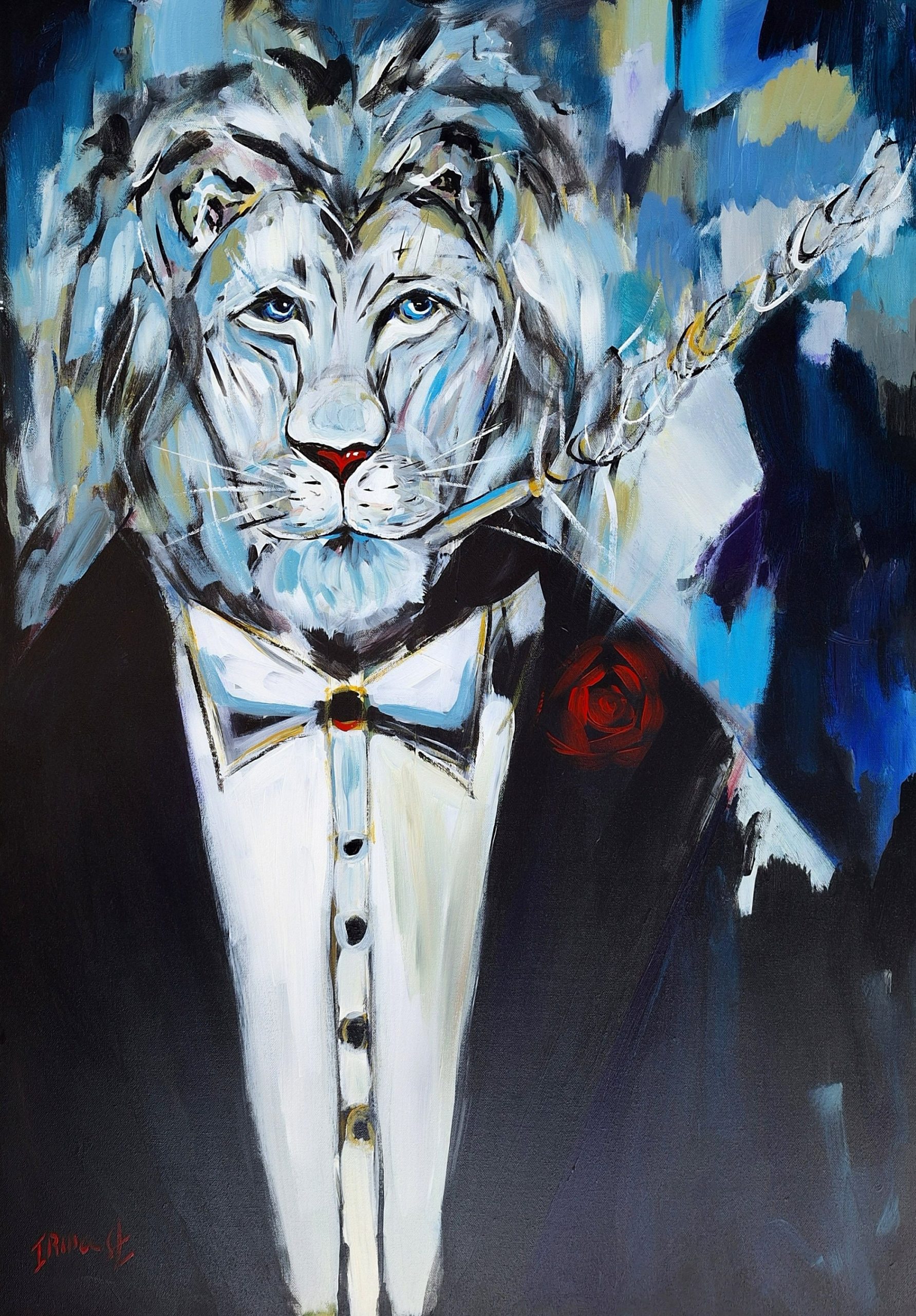 Handmade Gentleman Lion Portrait Painting on Canvas