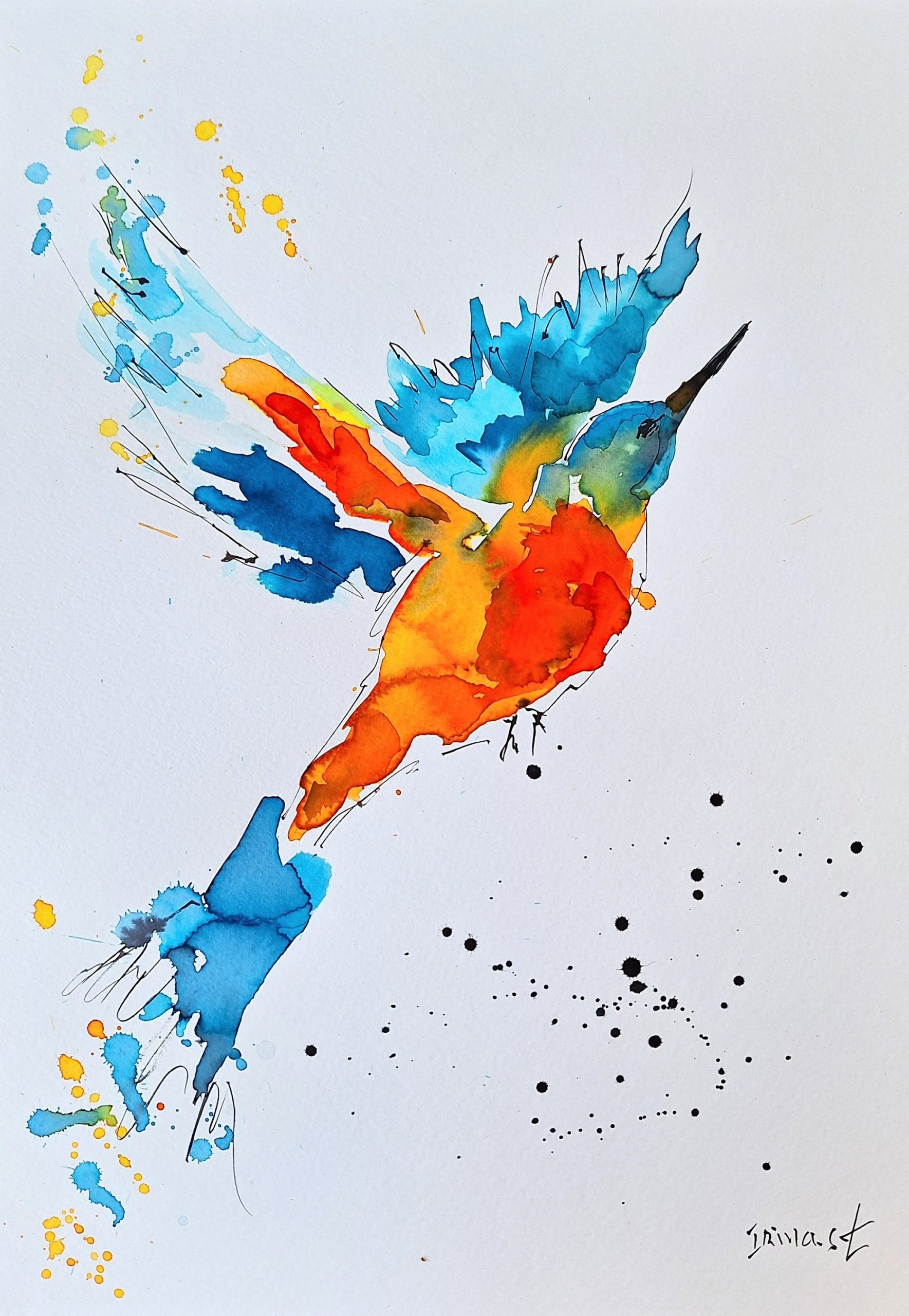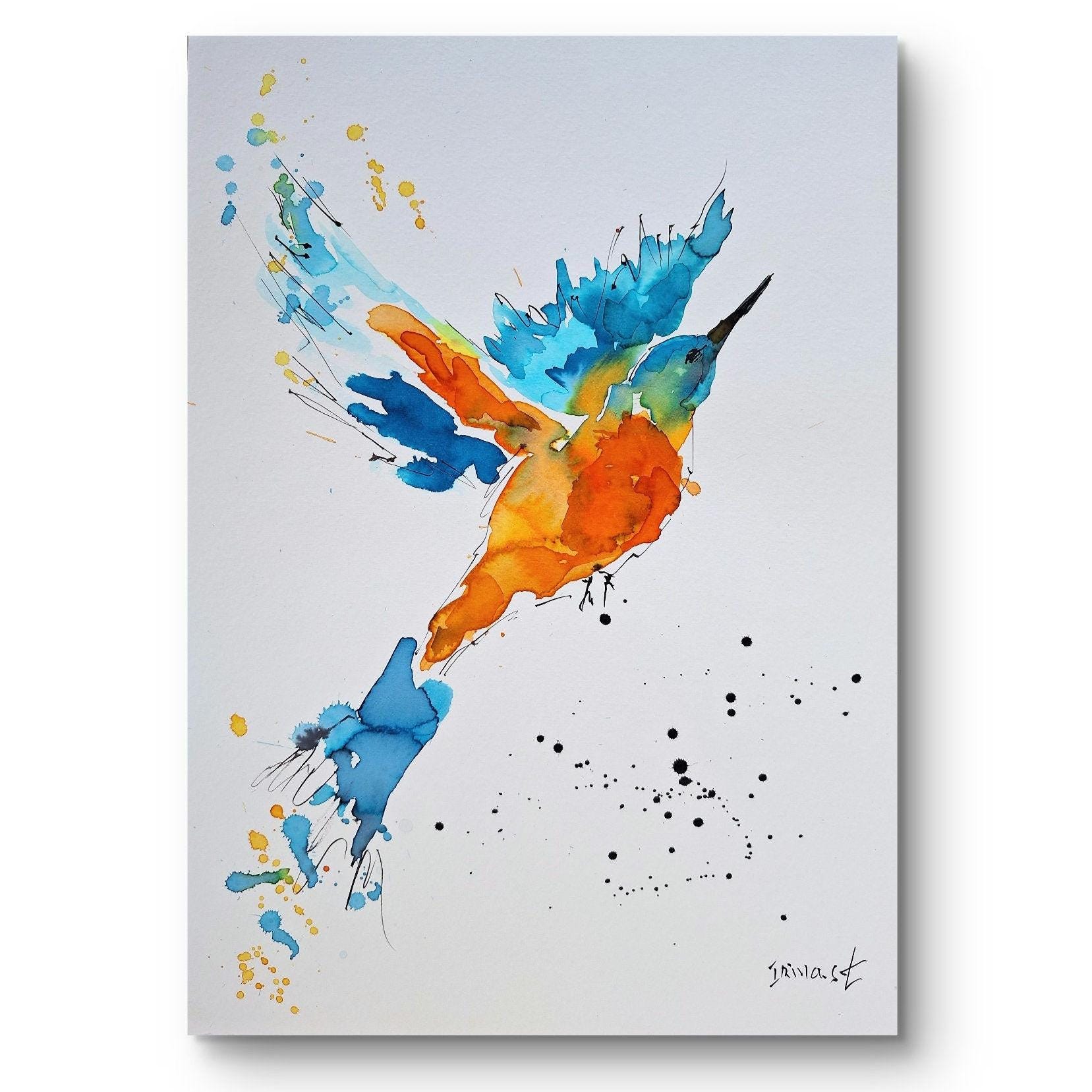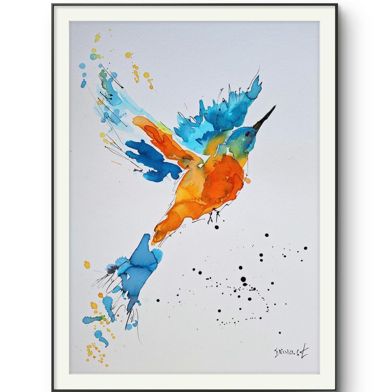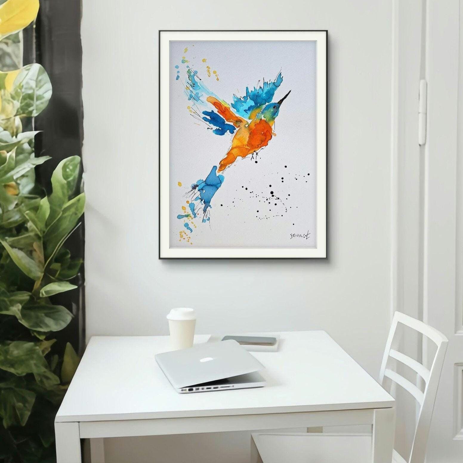 Handmade Kingfisher Watercolor Painting: Flying Bird Wall Art (9.8/13.8)