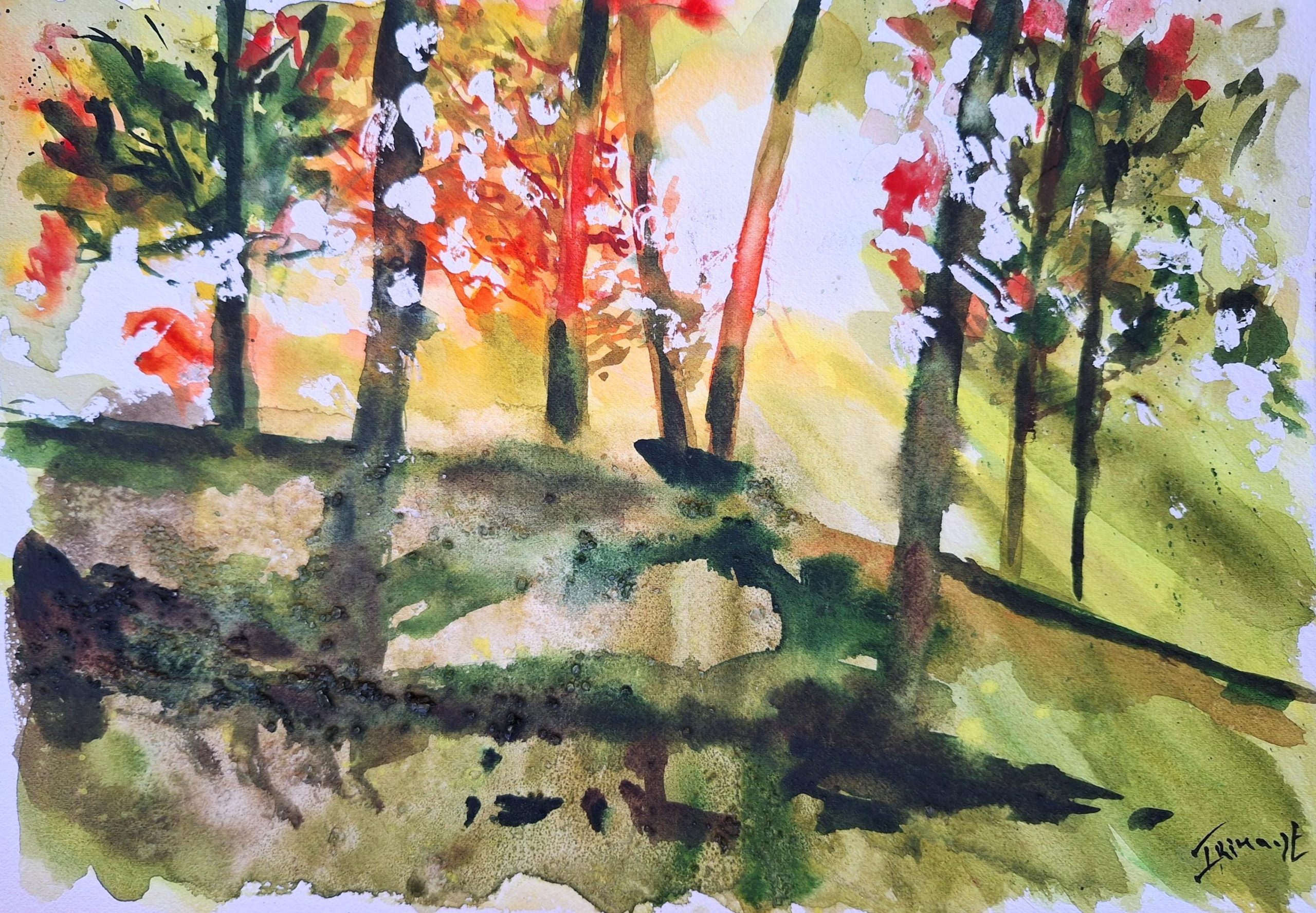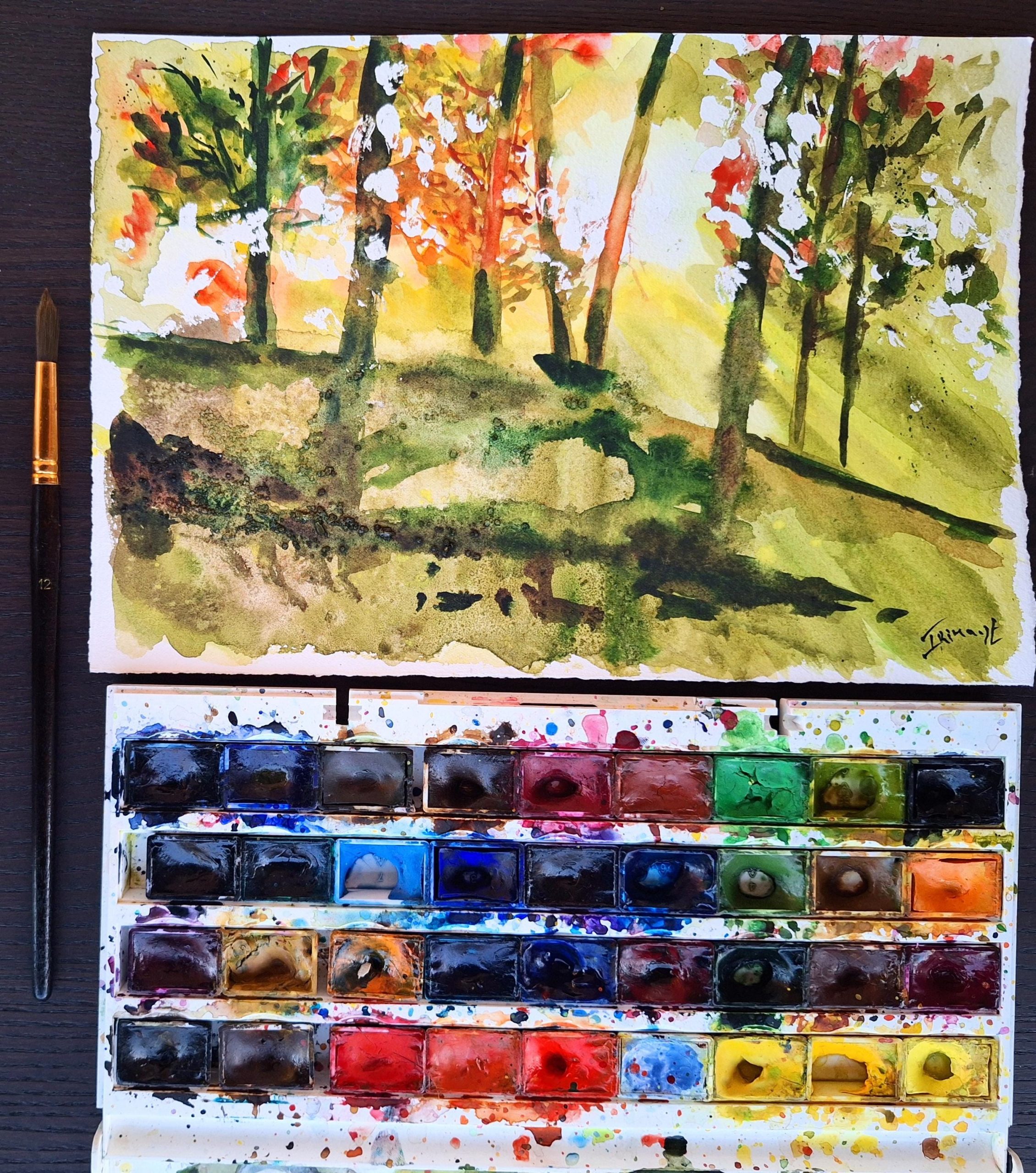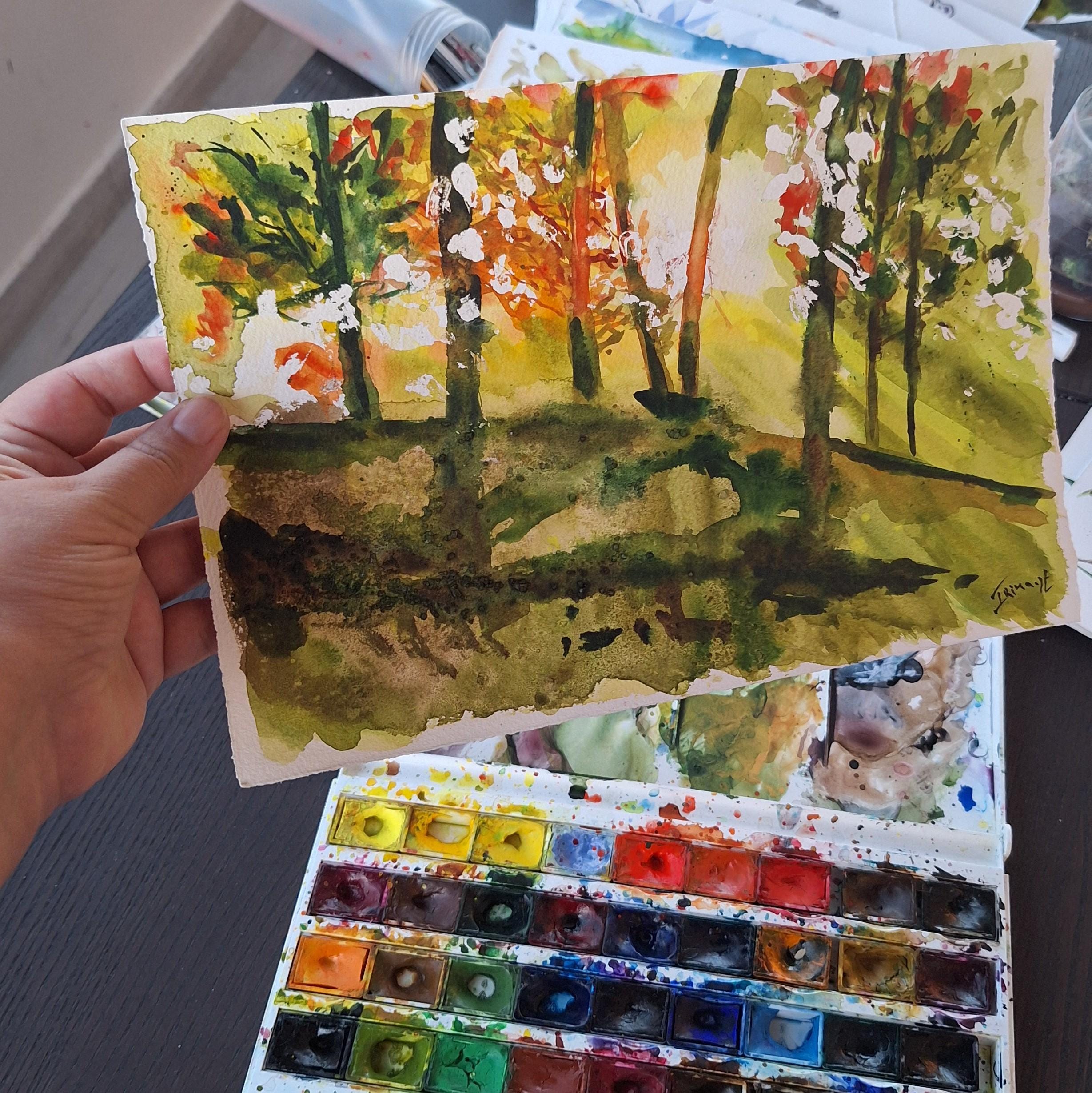 Handmade Watercolor Landscape Painting: Abstract Nature Art on Cotton Paper