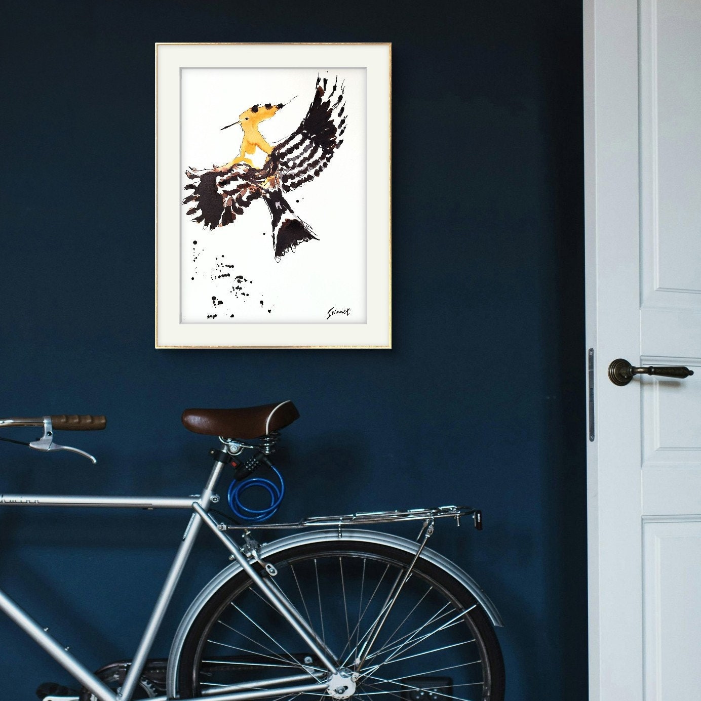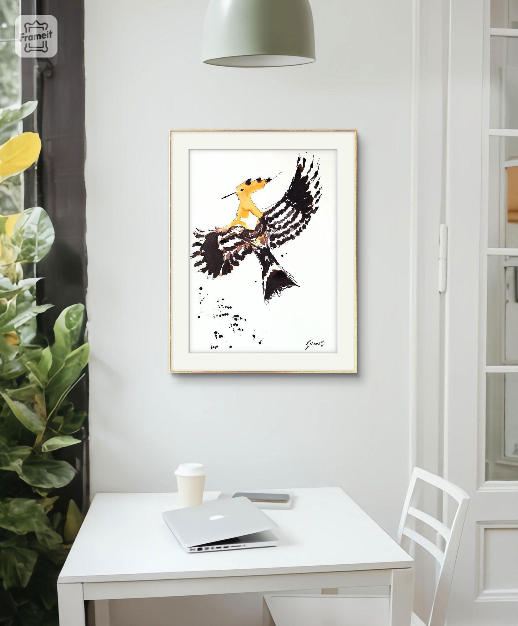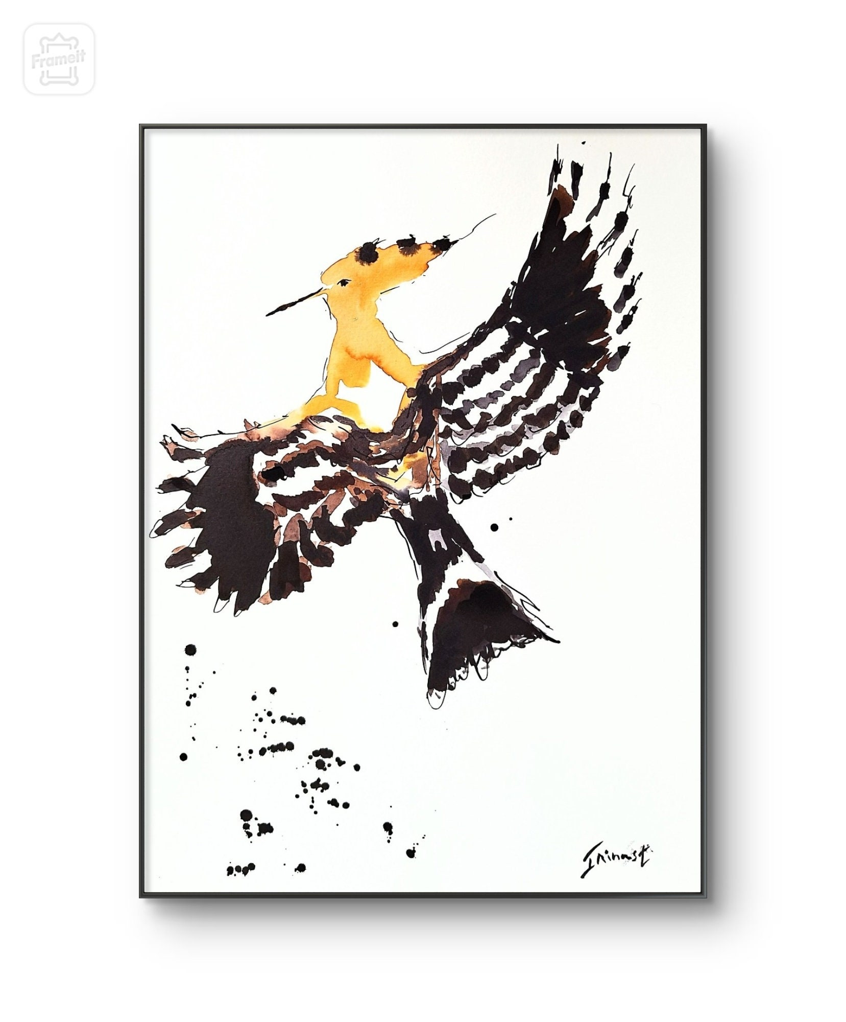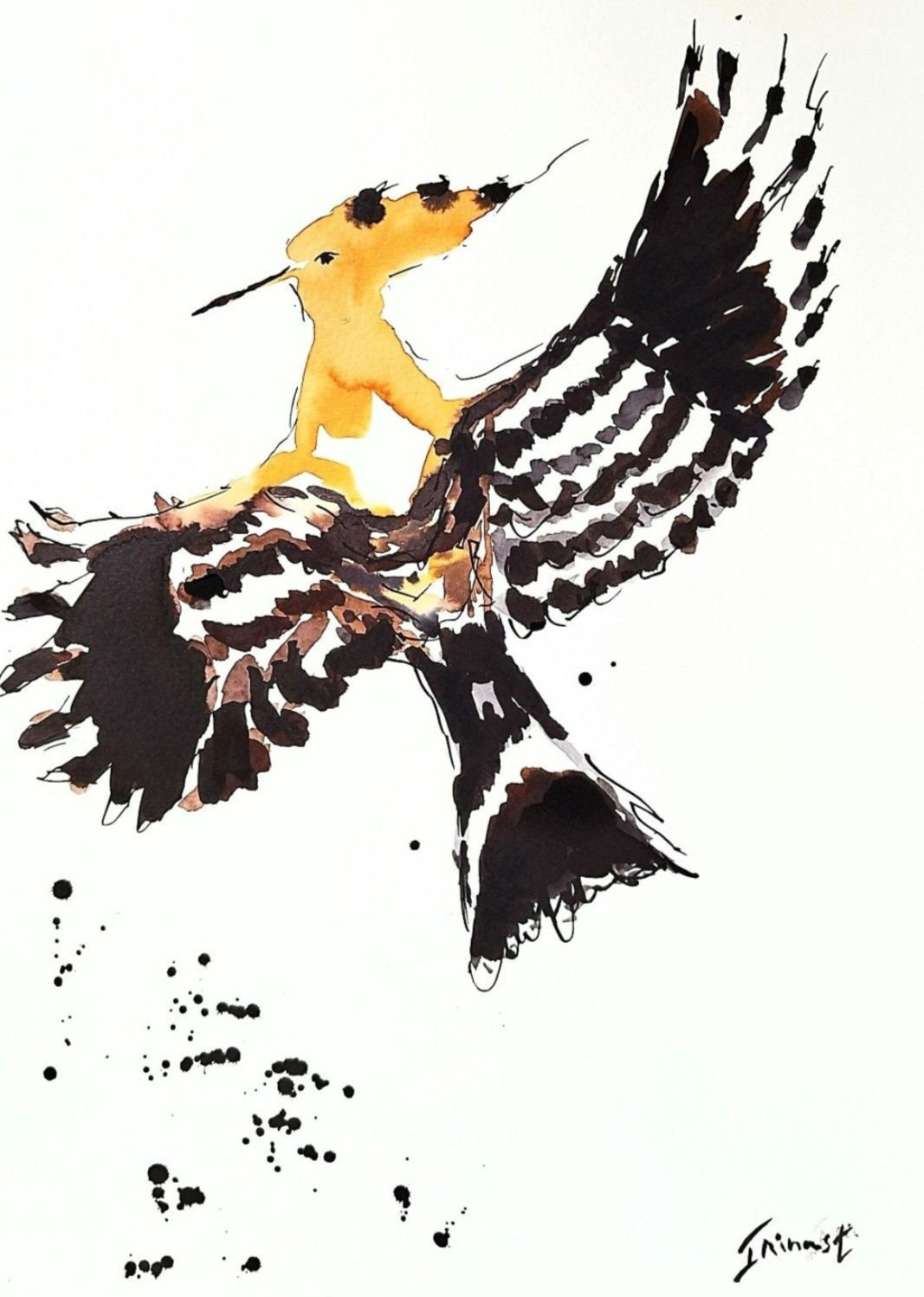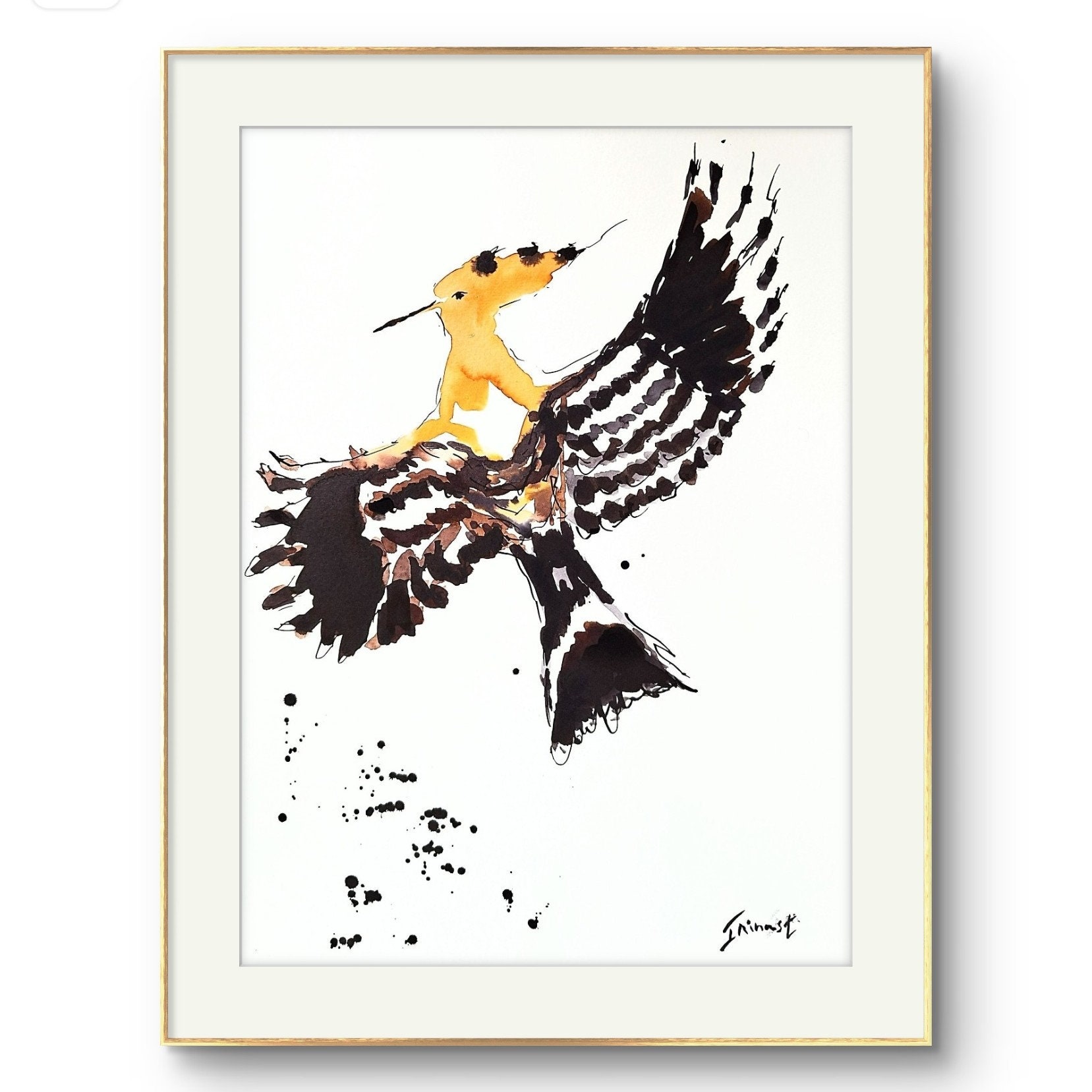 Hoopoe Bird Watercolor Ink Drawing: Single Source Art, 9.8×13.8 inches