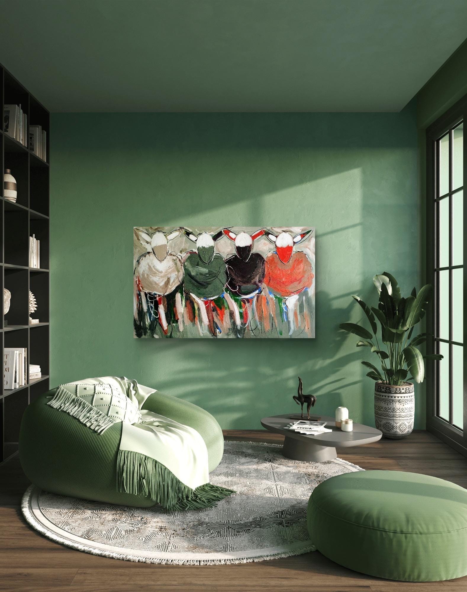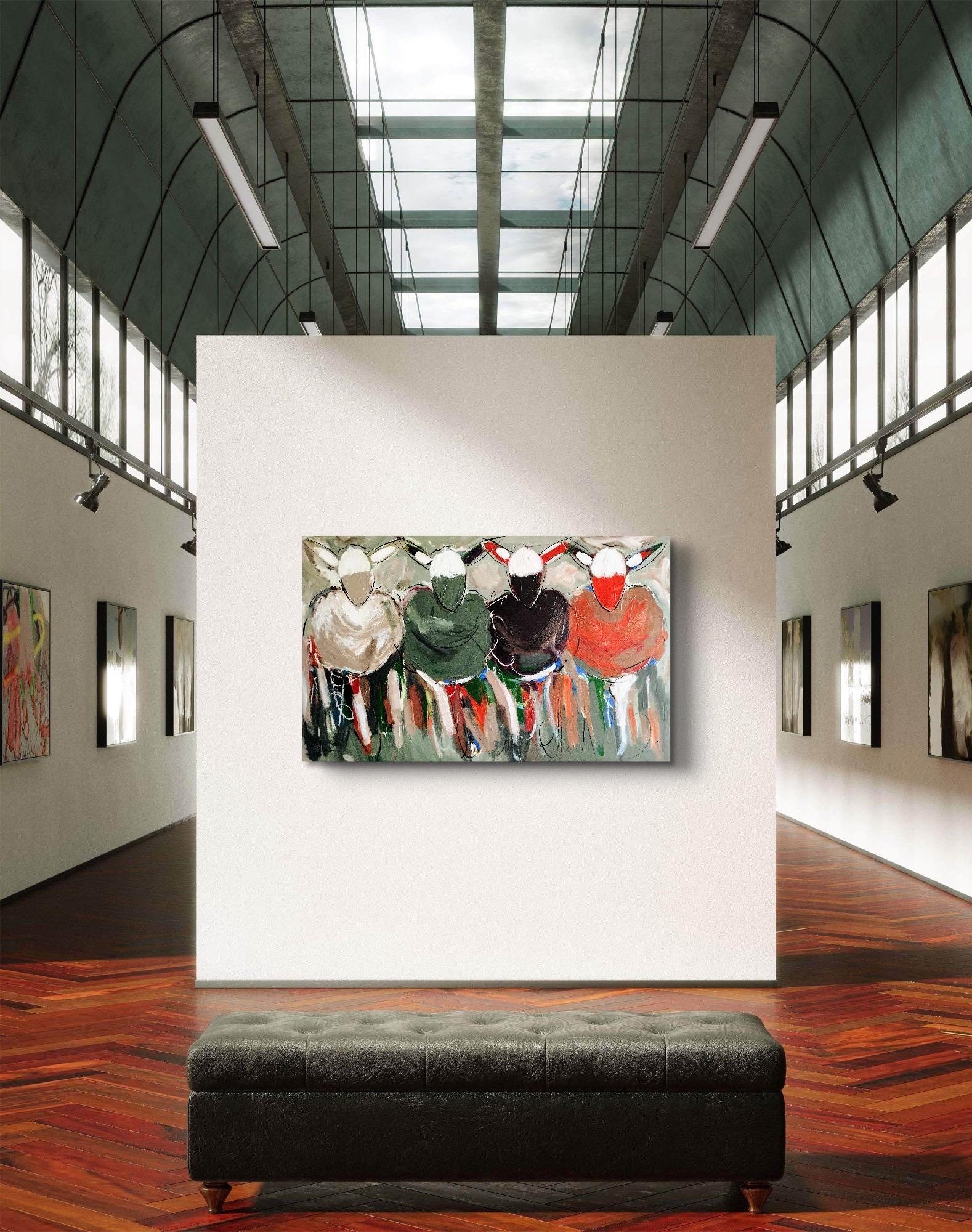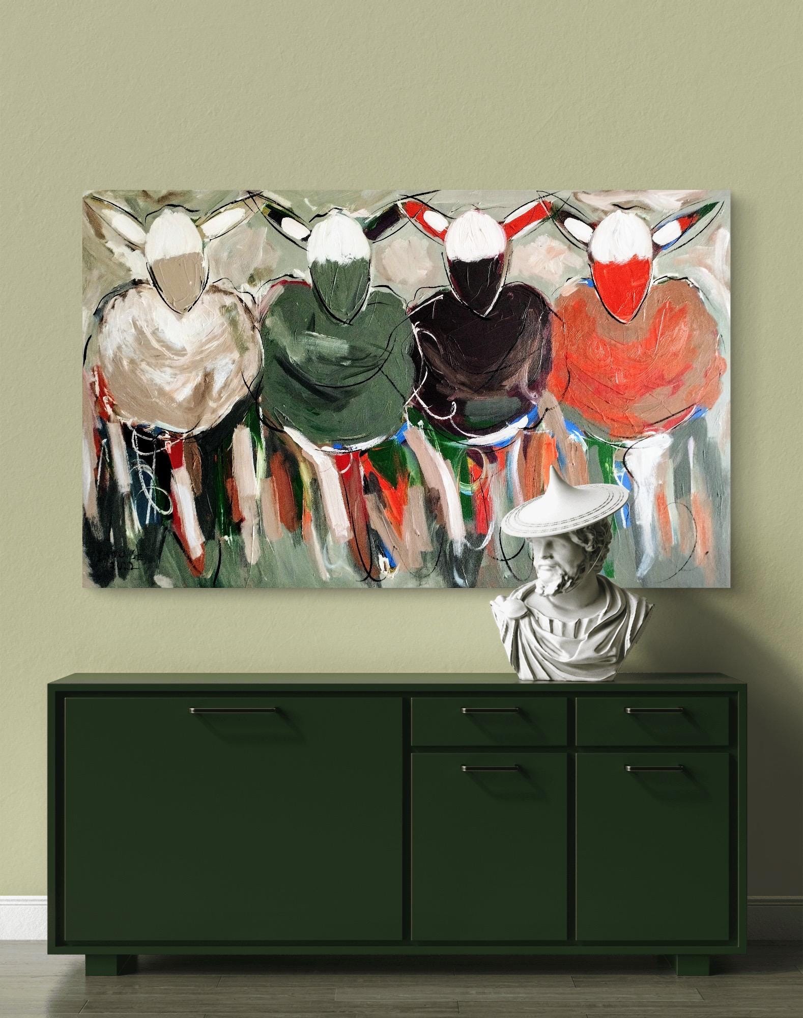 הציור משלב בין חום הכבשים לבין קווים וצבעוניות מודרנית, ומעניק תחושת רוגע ואסתטיקה עכשווית לכל חלל. בזכות טכניקת השמן העשירה מתקבל עומק צבע מרשים וטקסטורה חיה, ההופכים את היצירה למוקד עניין אמנותי בכל חדר.
