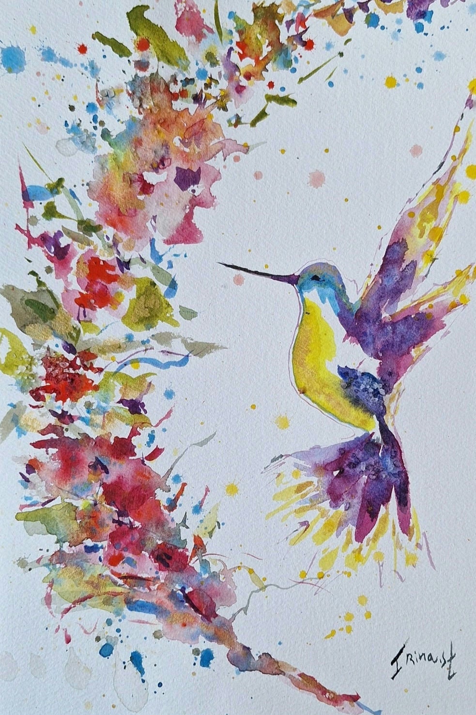ציור צבעוני מקורי בצבעי מים יונק דבש על נייר כותנה