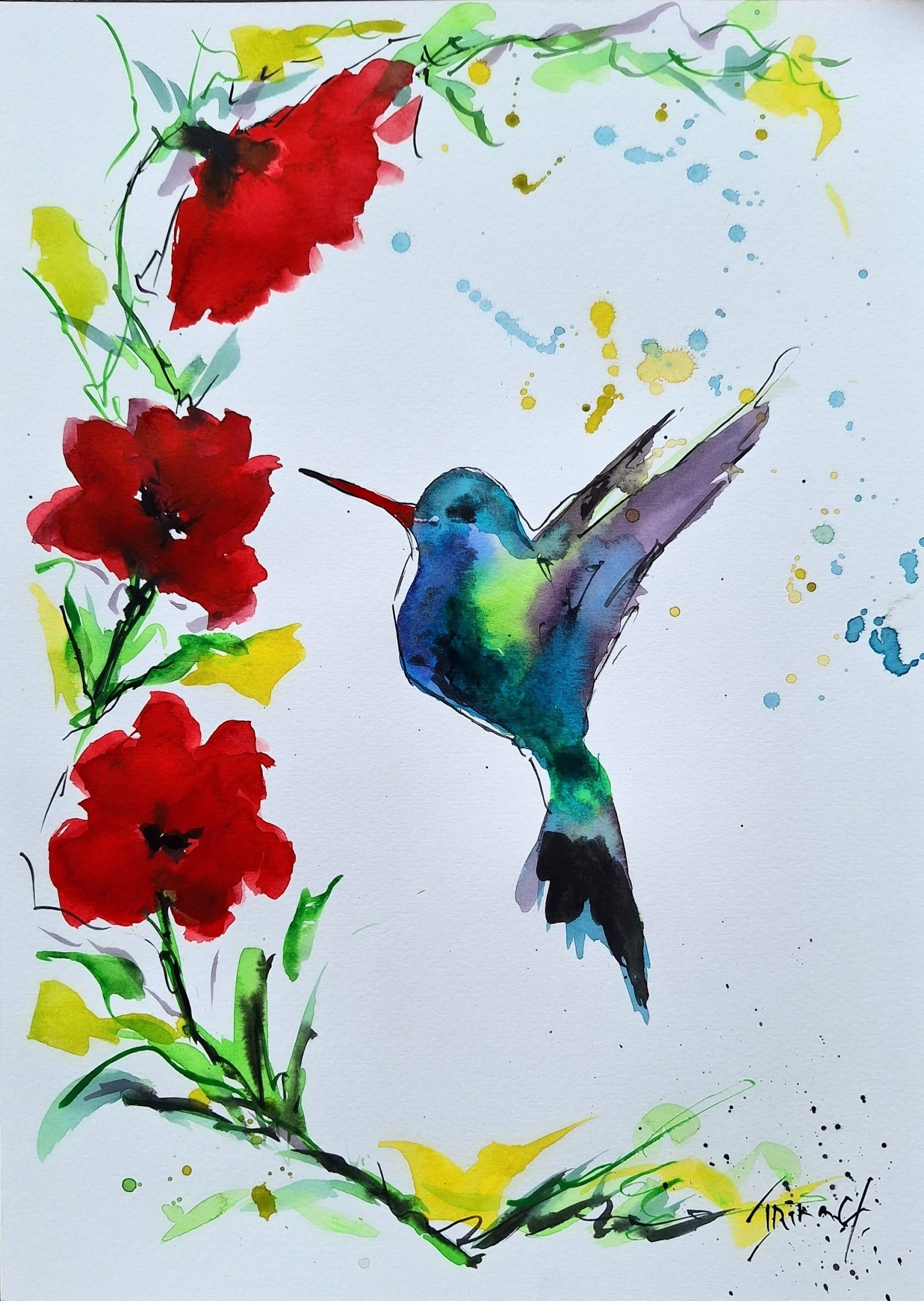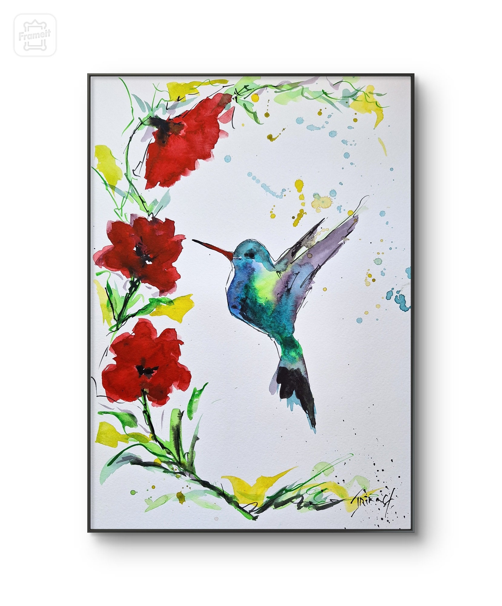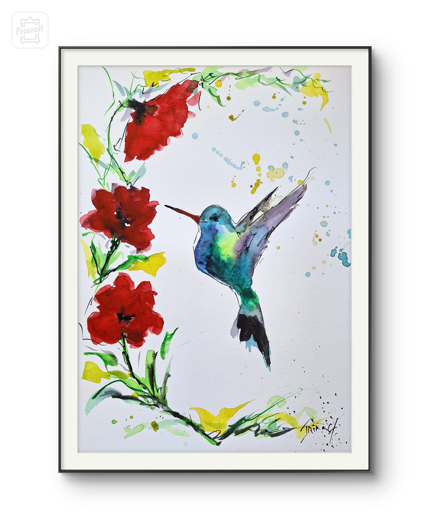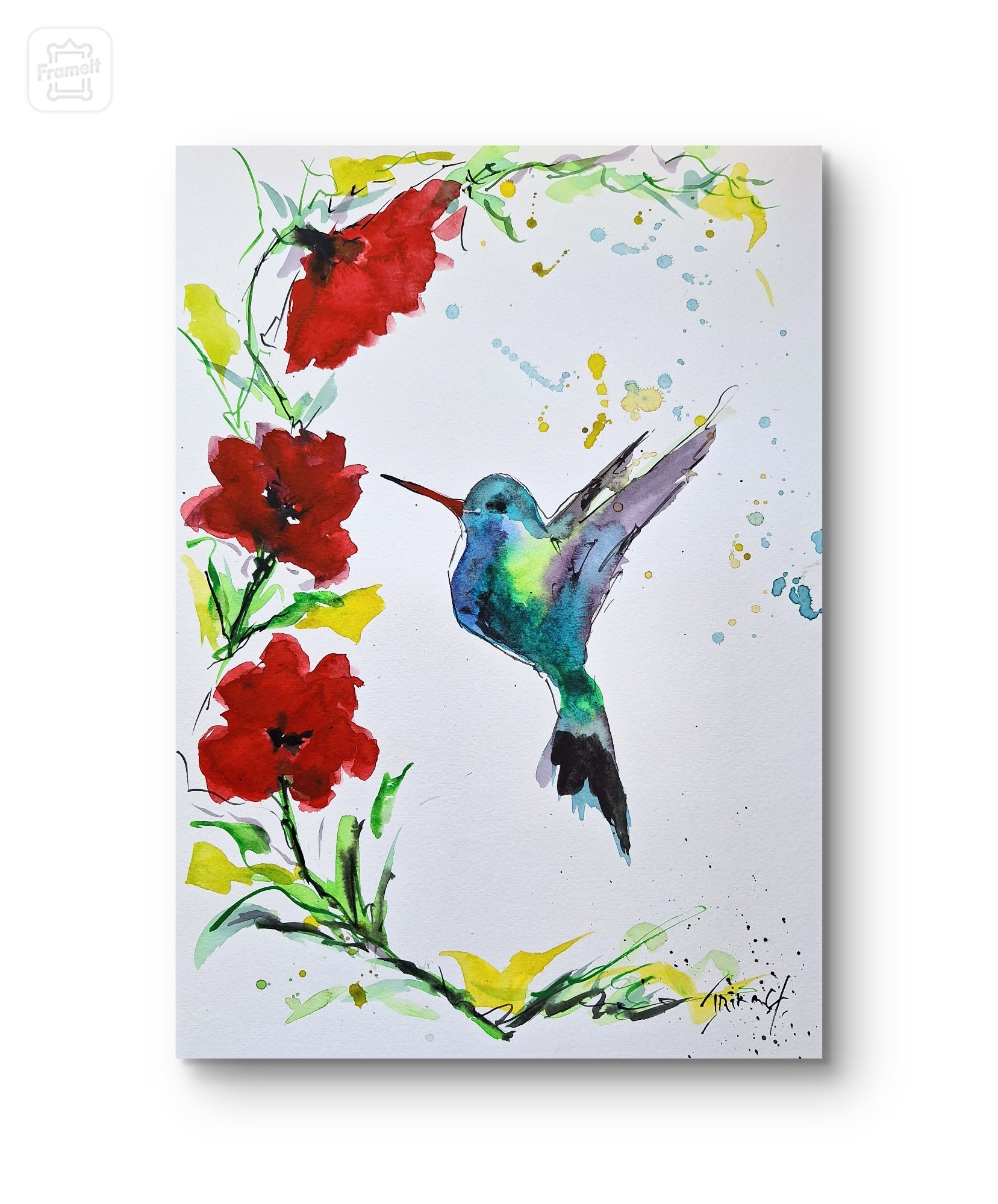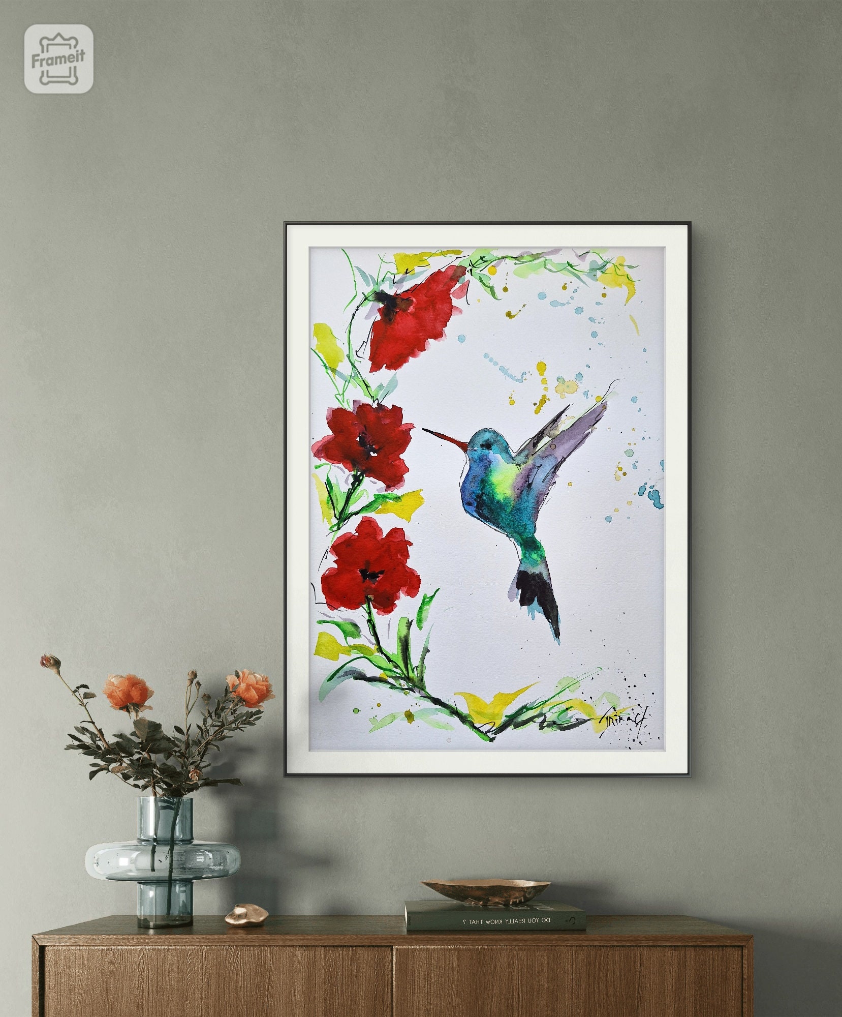 Hummingbird Watercolor Painting: Original Bird Art on Cotton Paper