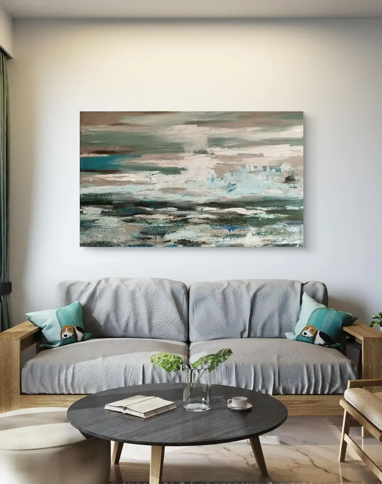 ציור על קנבס עם טקסטורה בגווני טורקיז