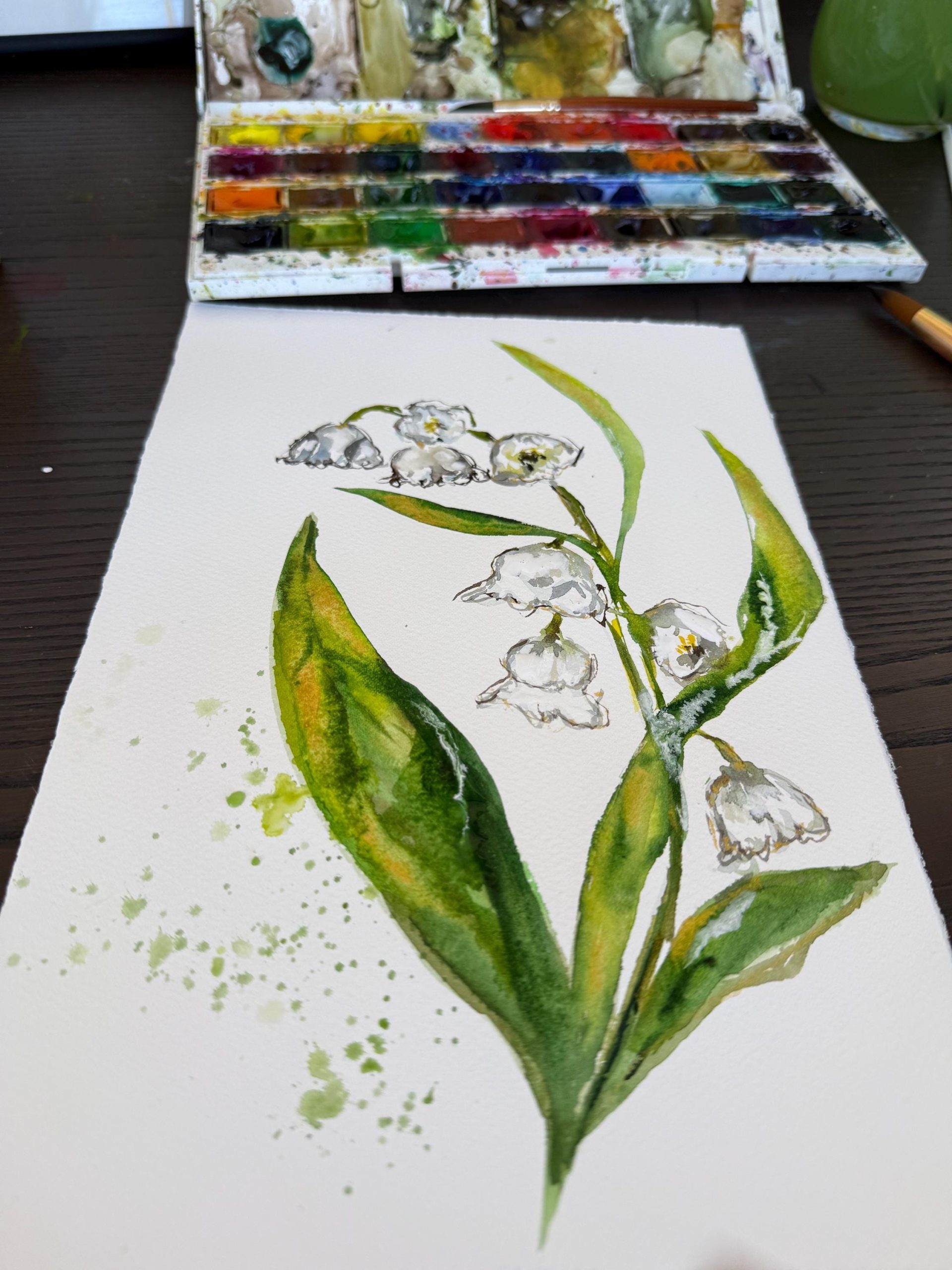 Lilly of the valley original watercolor painting on cotton paper botanical floral