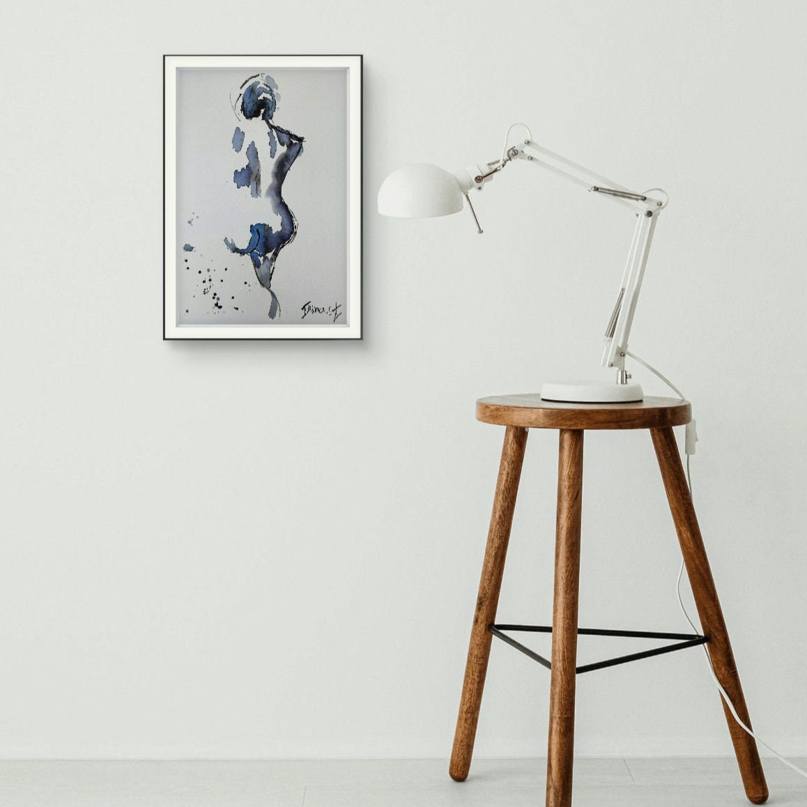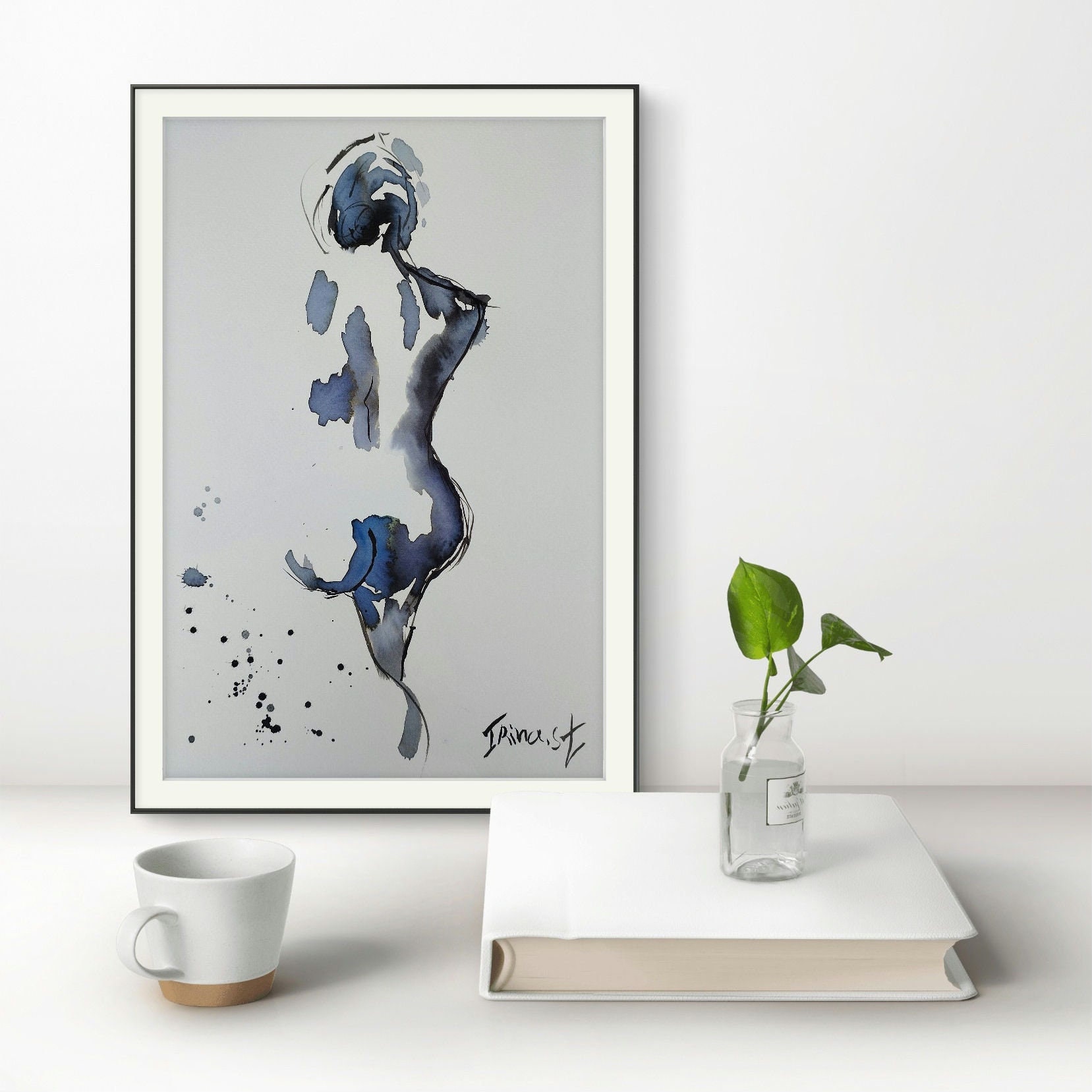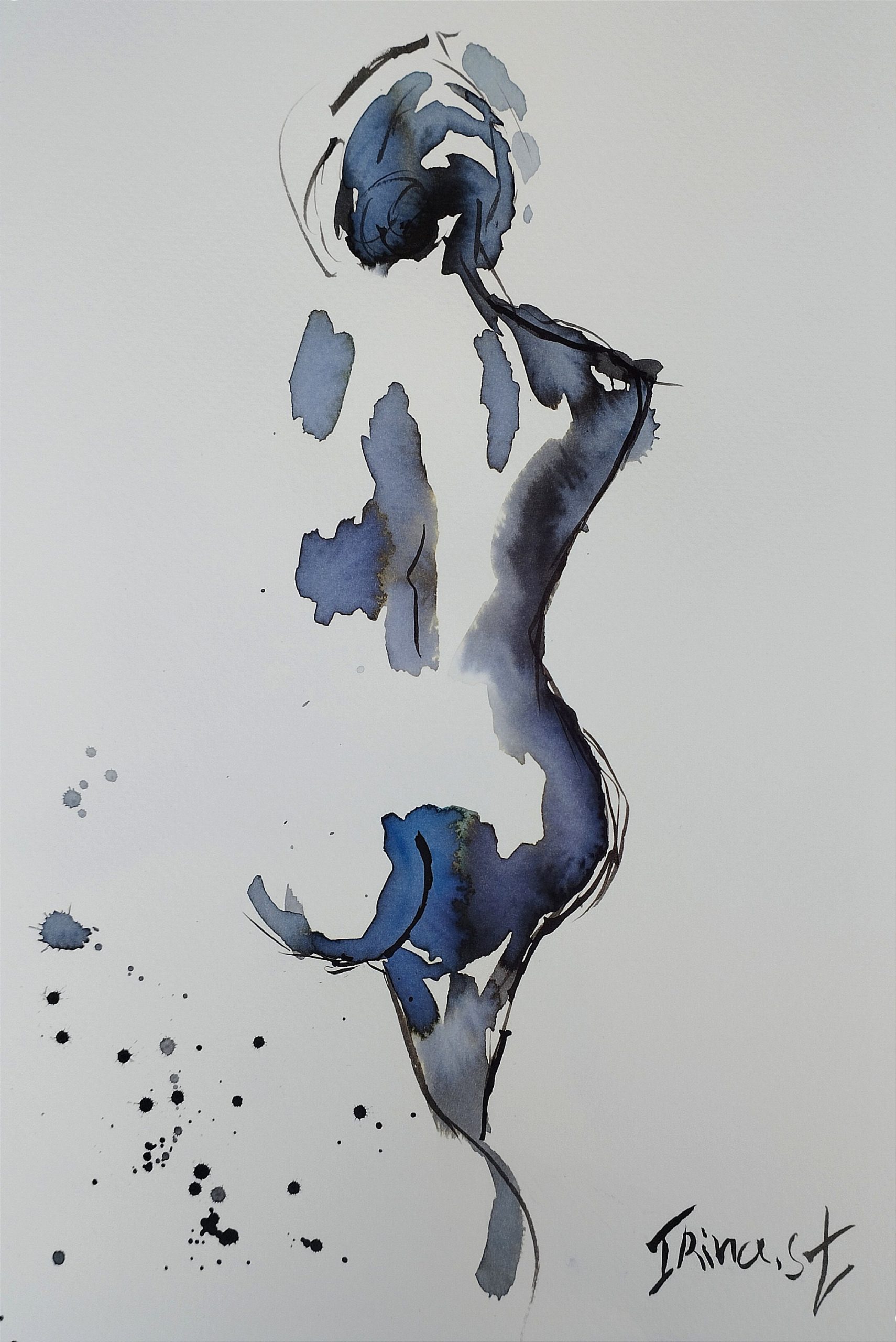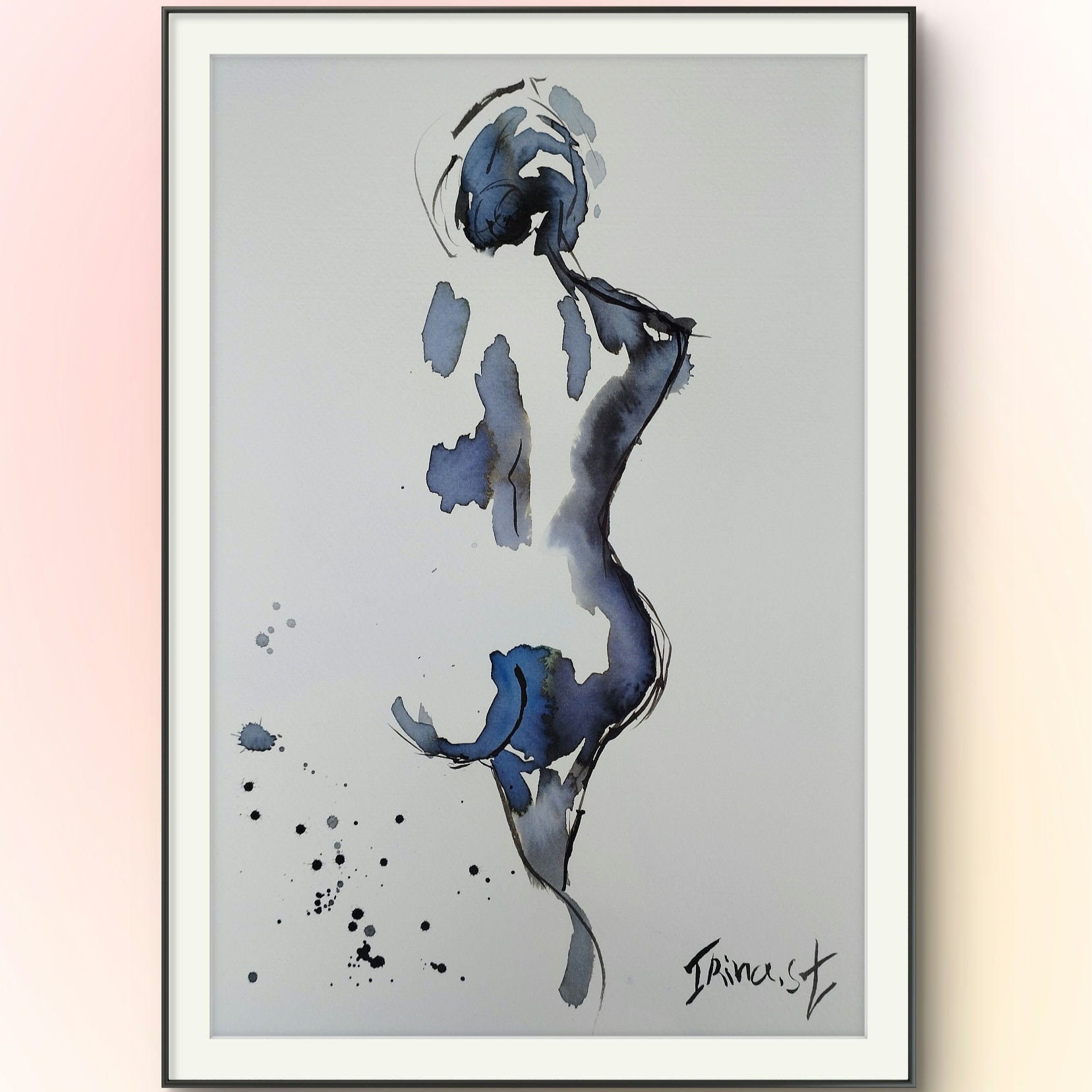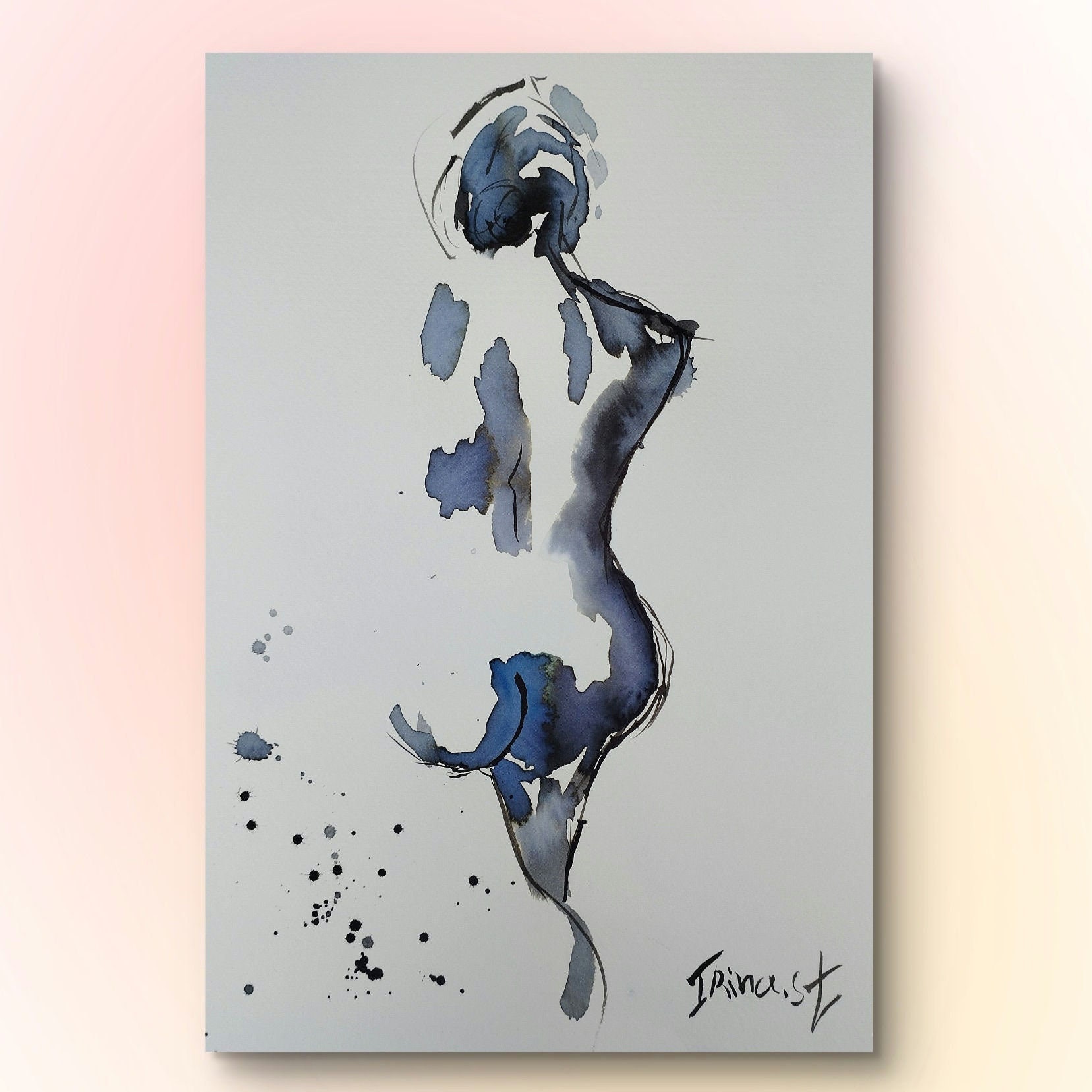 Nude Woman, Naked Figure, original Watercolor and ink Painting abstract Original figure painting