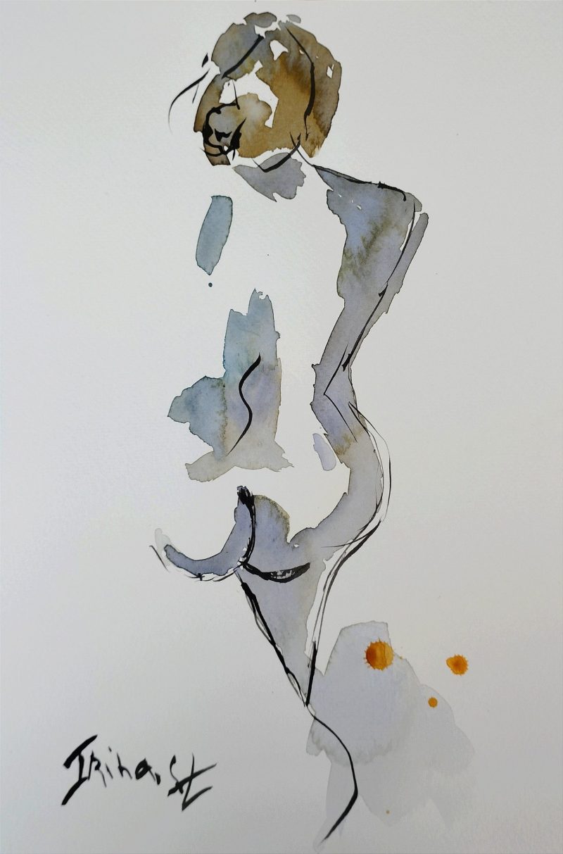 Nude Woman, Naked Figure, original Watercolor and ink Painting Original figure painting