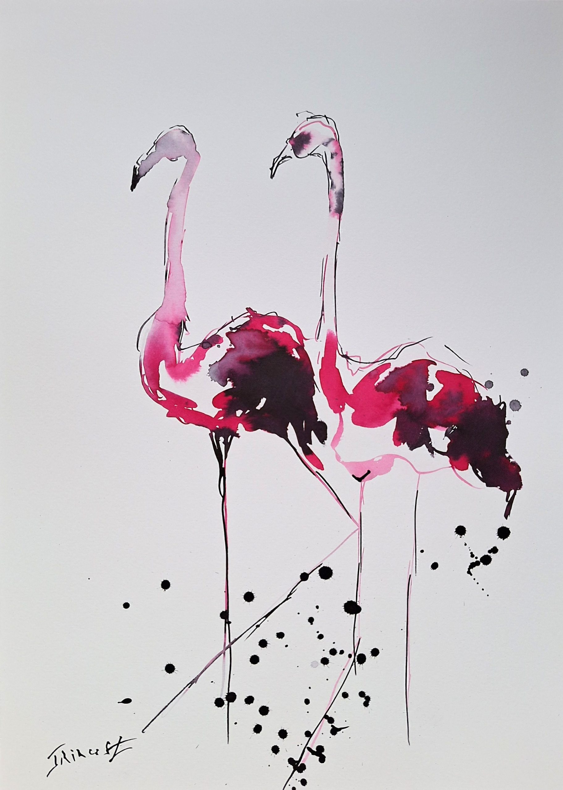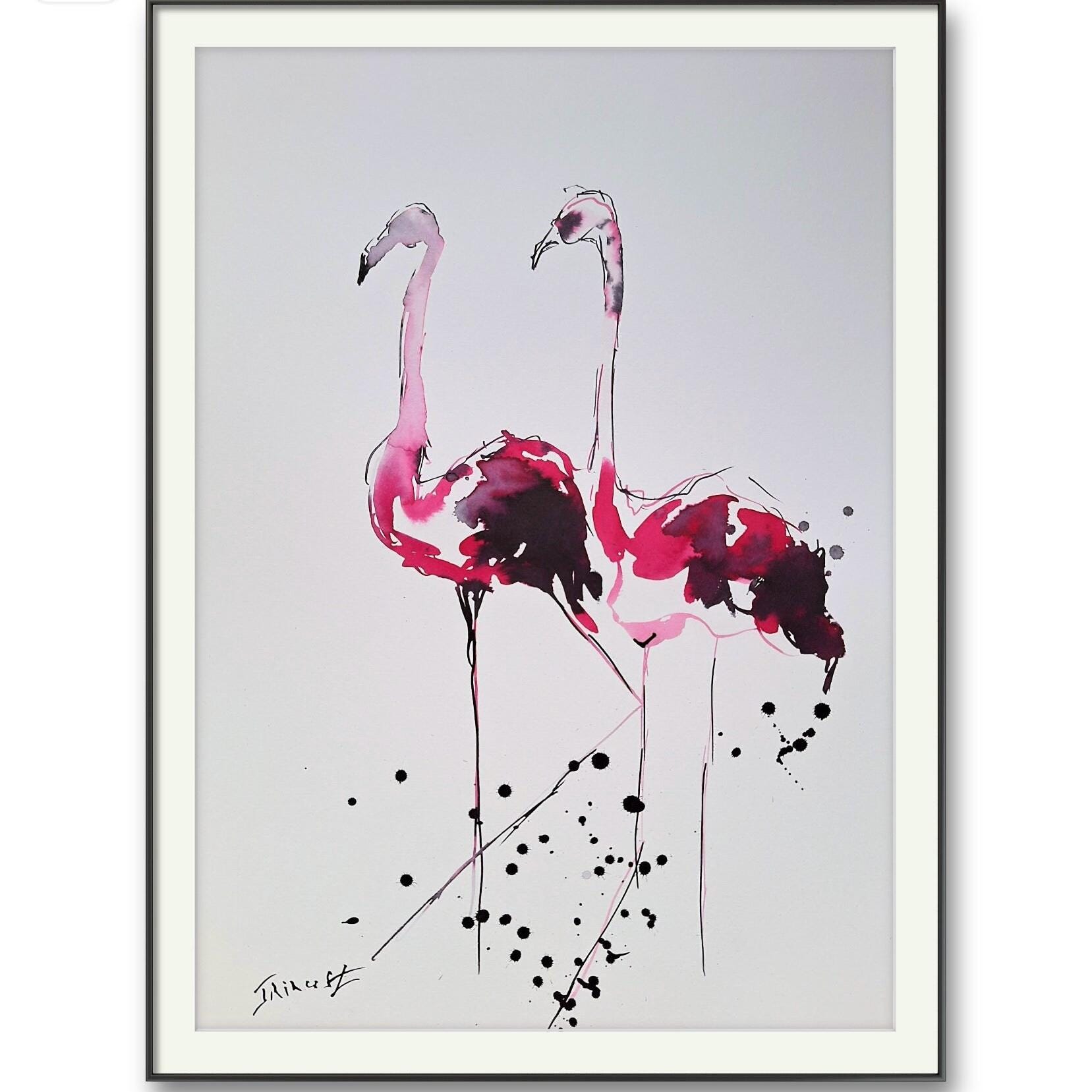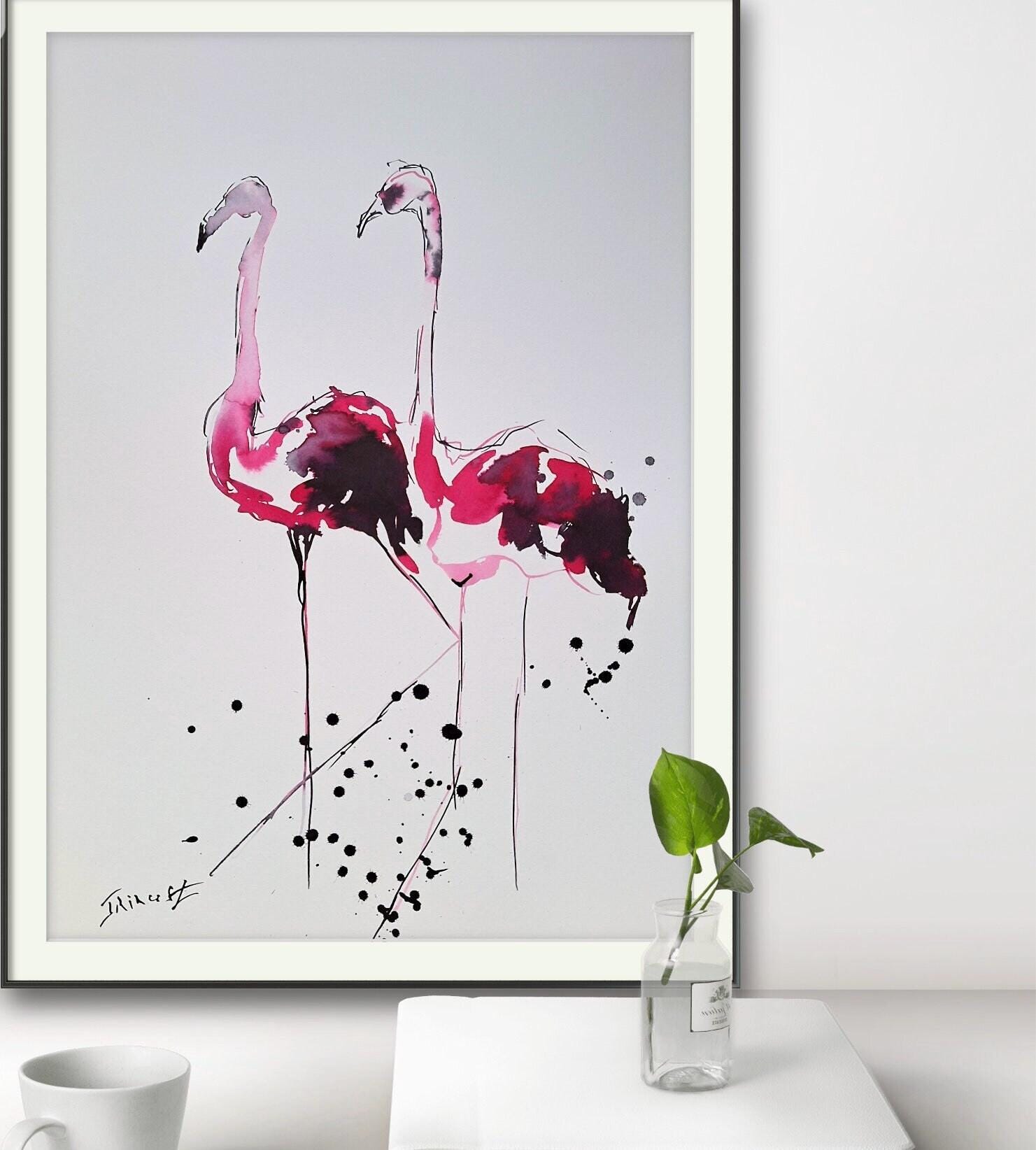 Original Flamingo Watercolor Painting: Handmade Cotton Paper Art