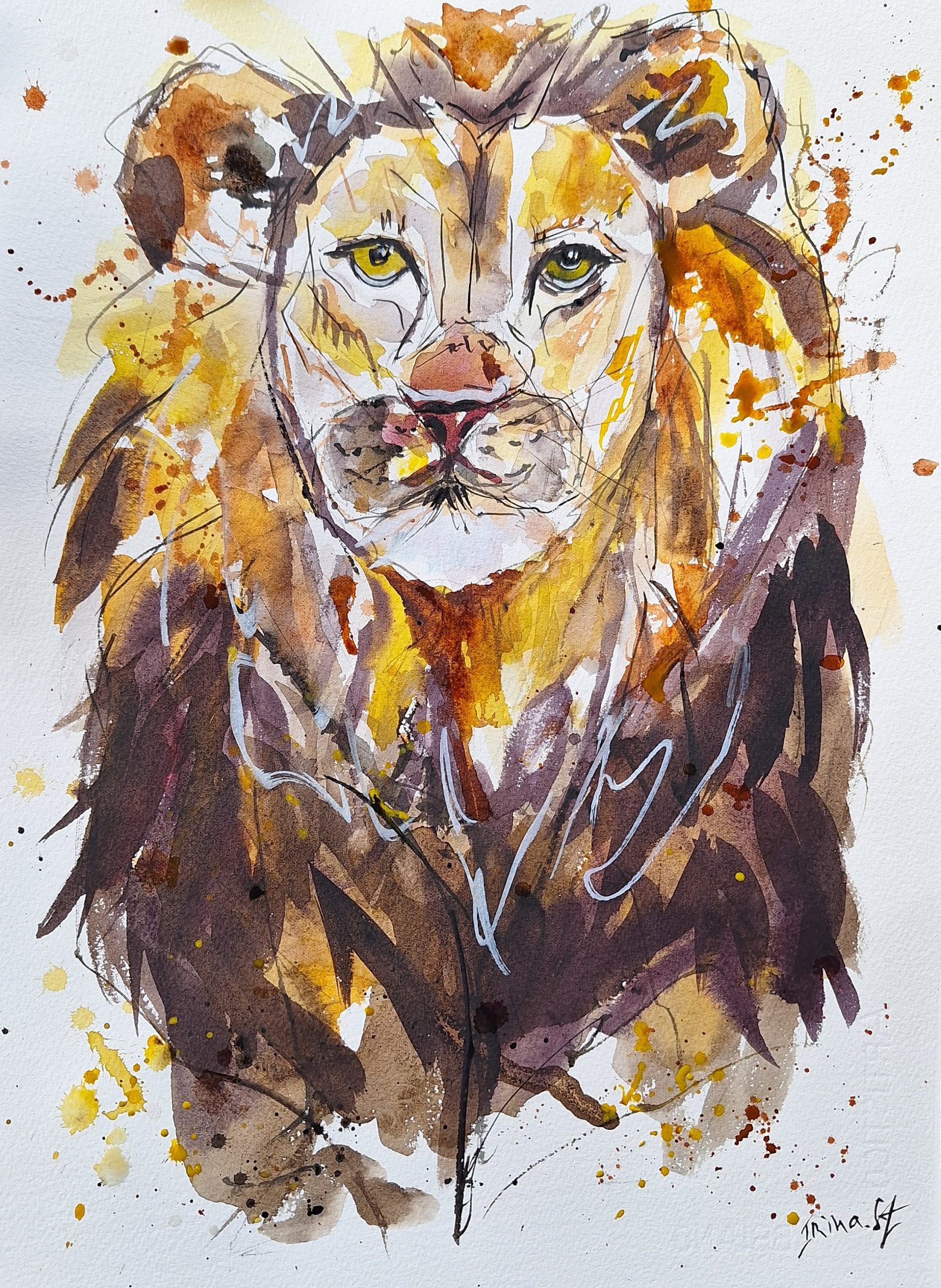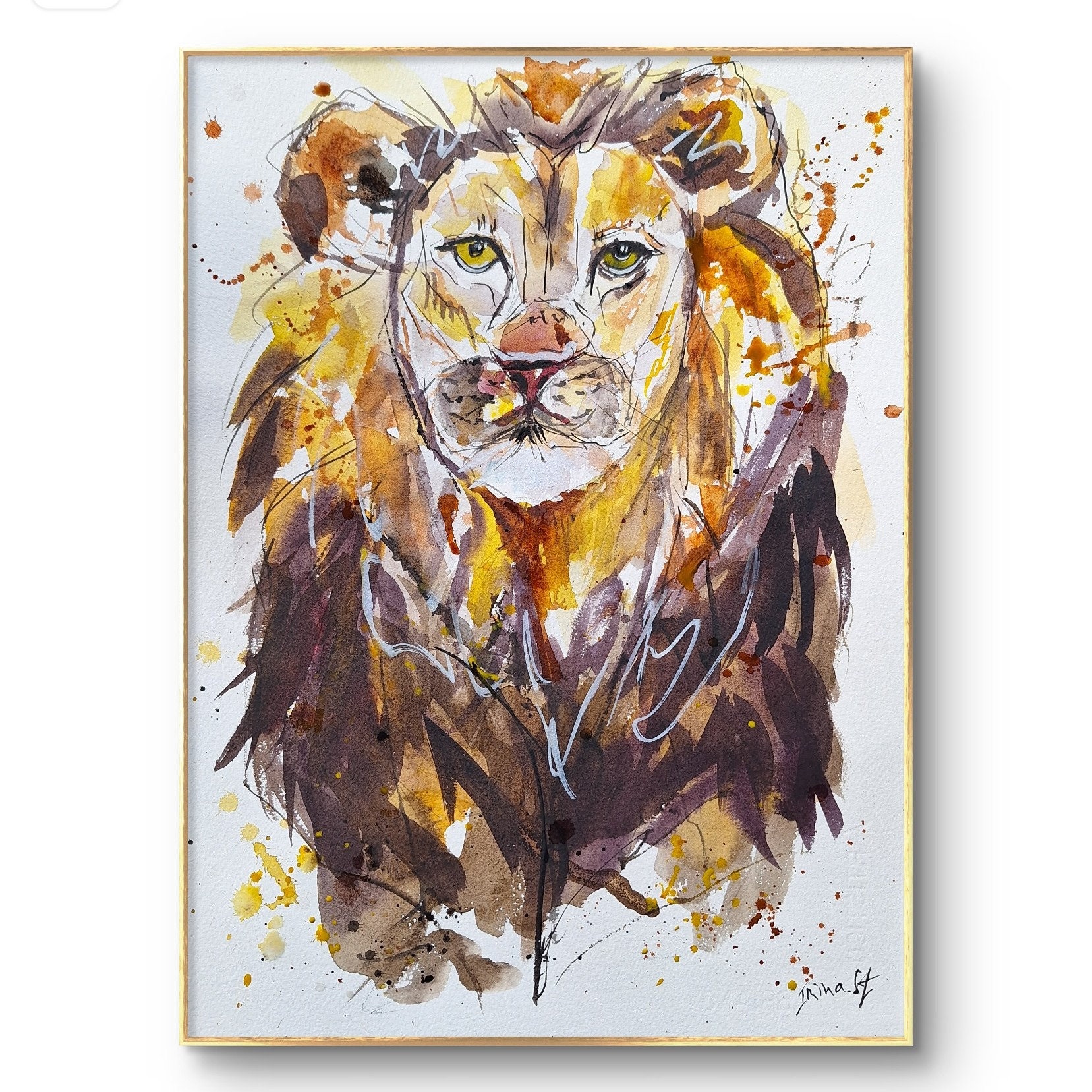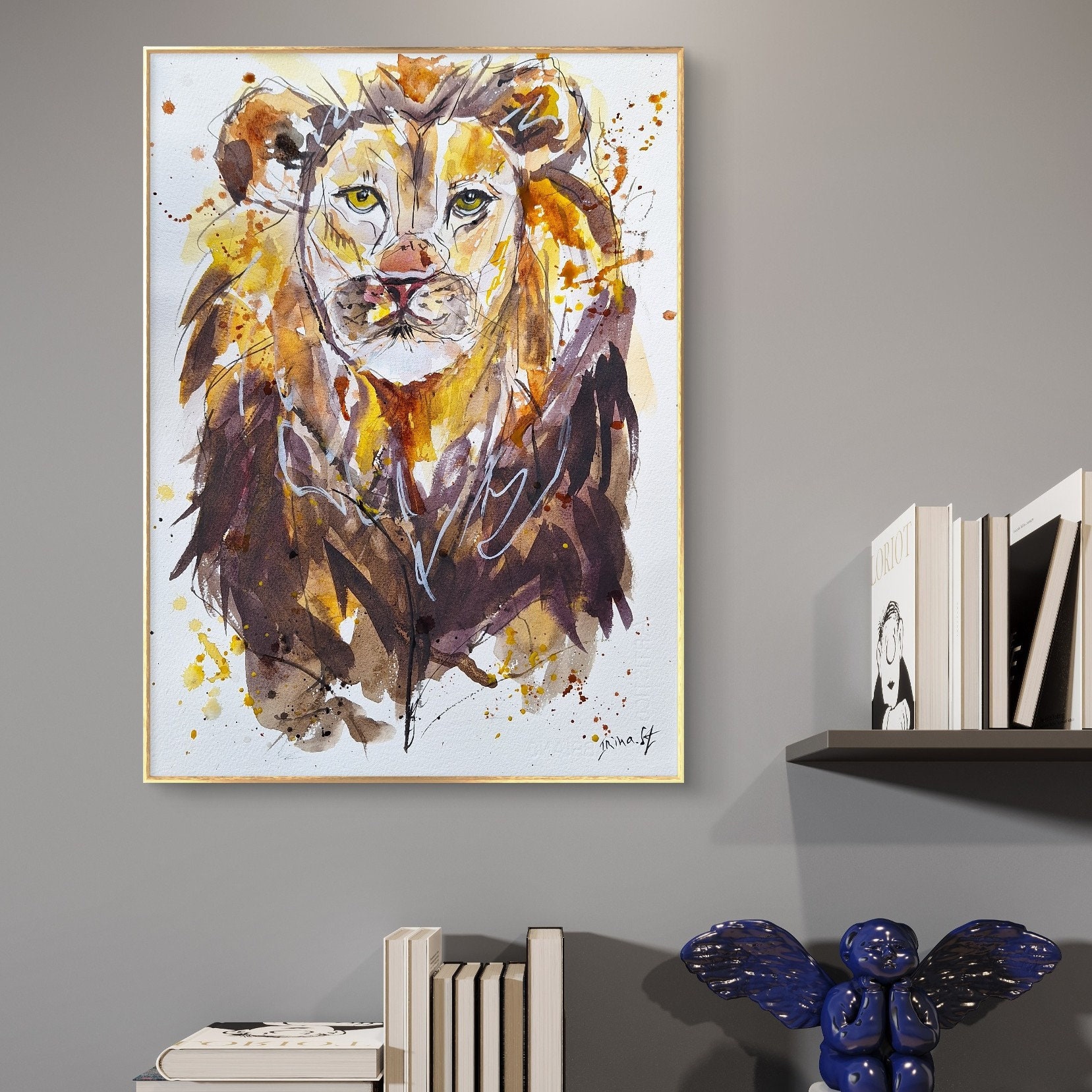 Original Lion Watercolor Painting: Animal Portrait Art (11×14 inches)