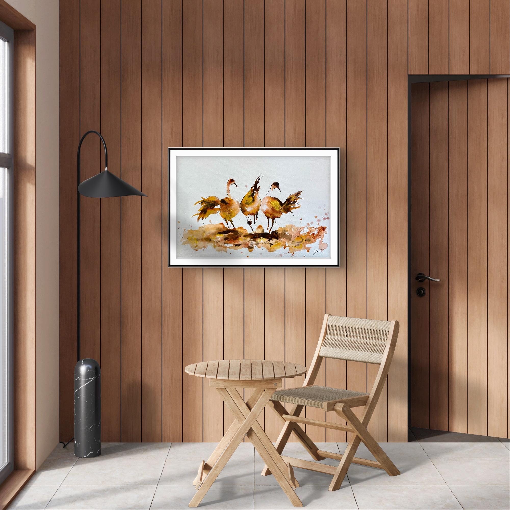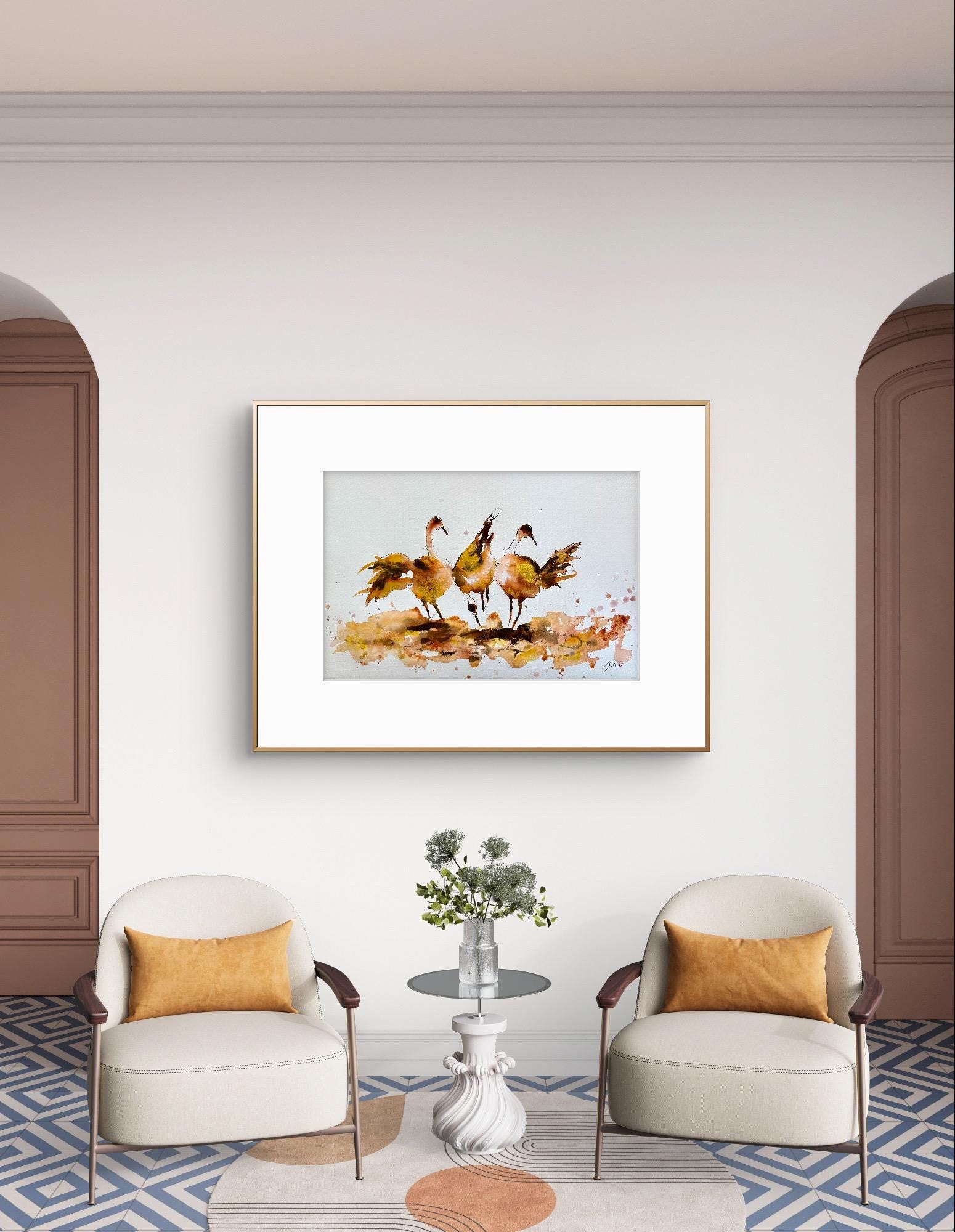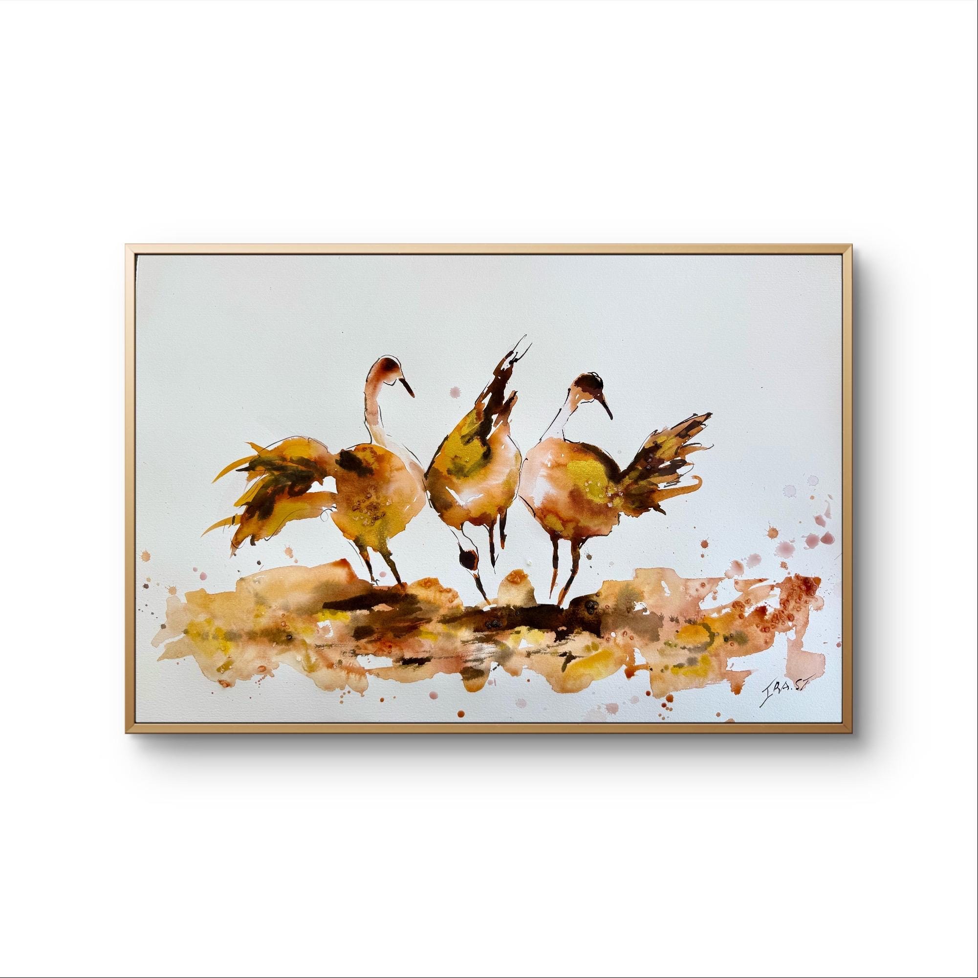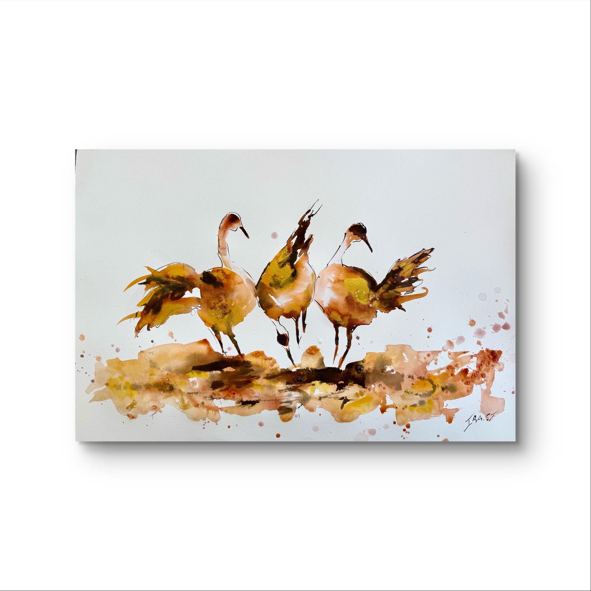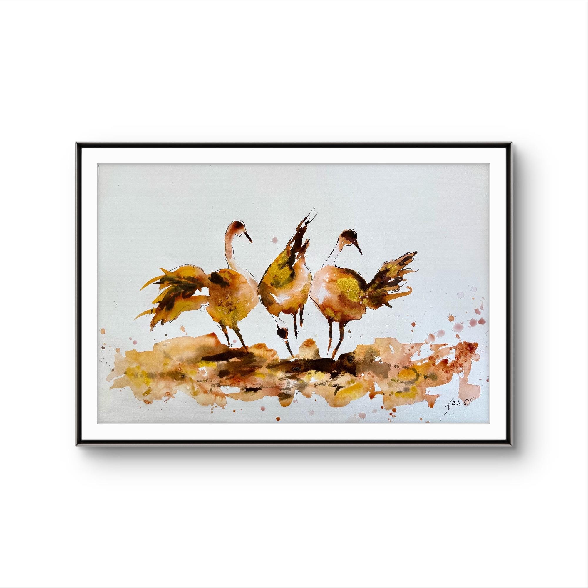 Original Watercolor Bird Painting Abstract Crane Artwork Modern Wall Art on 100% Cotton Paper (22×15.7 in)