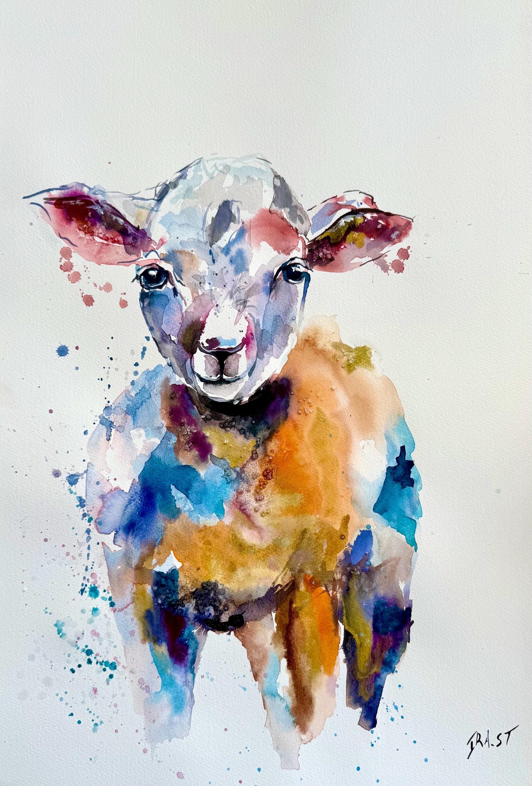ציור מקורי של כבש צעיר וצבעוני בעבודת יד על נייר כותנה איכותי. היצירה בסגנון מודרני ומופשט, מושלמת להוספת צבע וחיוניות לכל חלל בבית או במשרד.