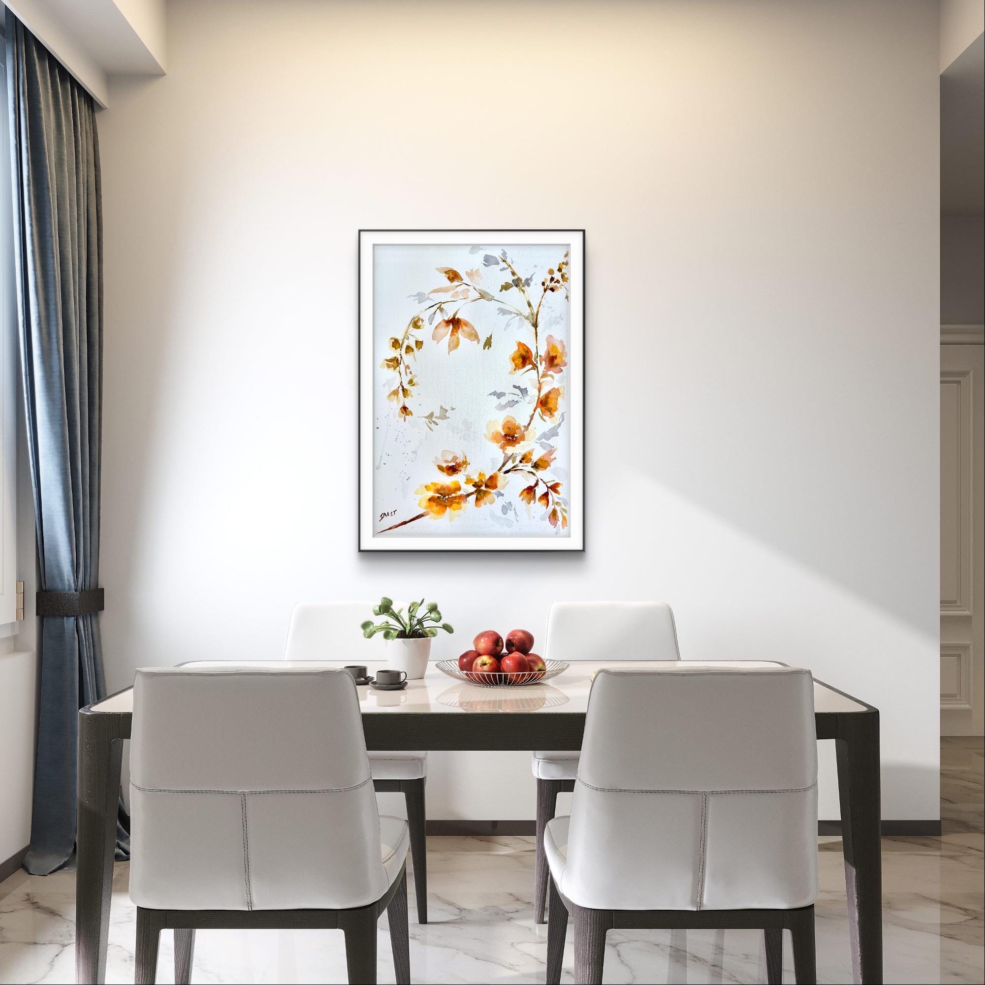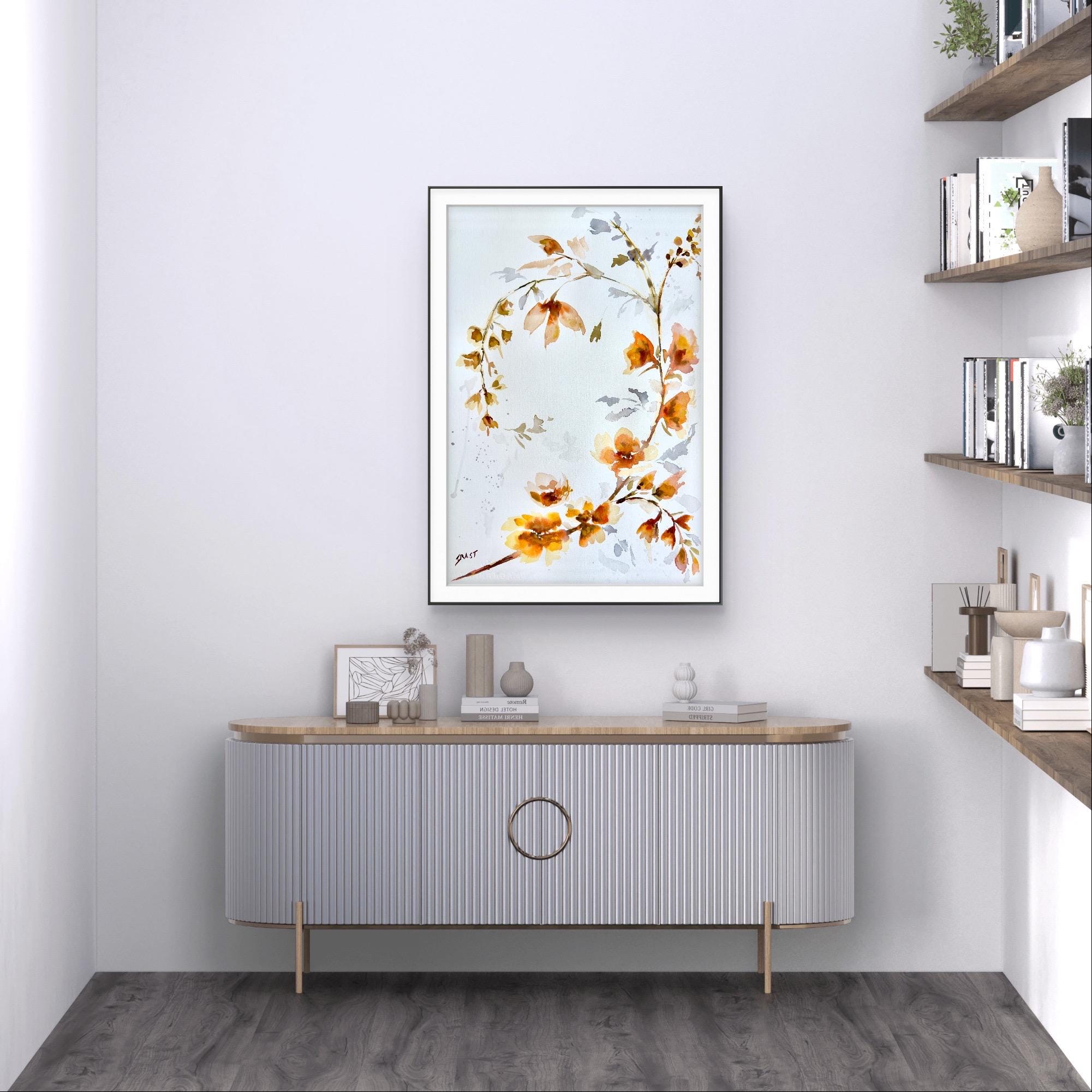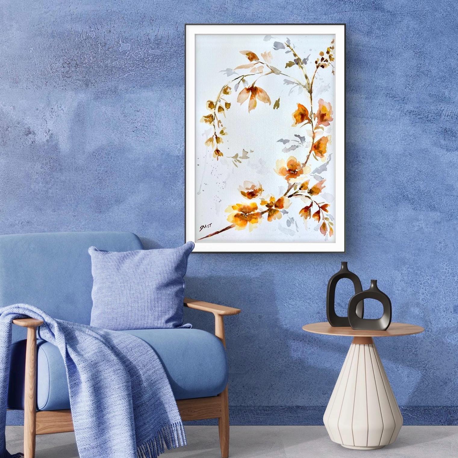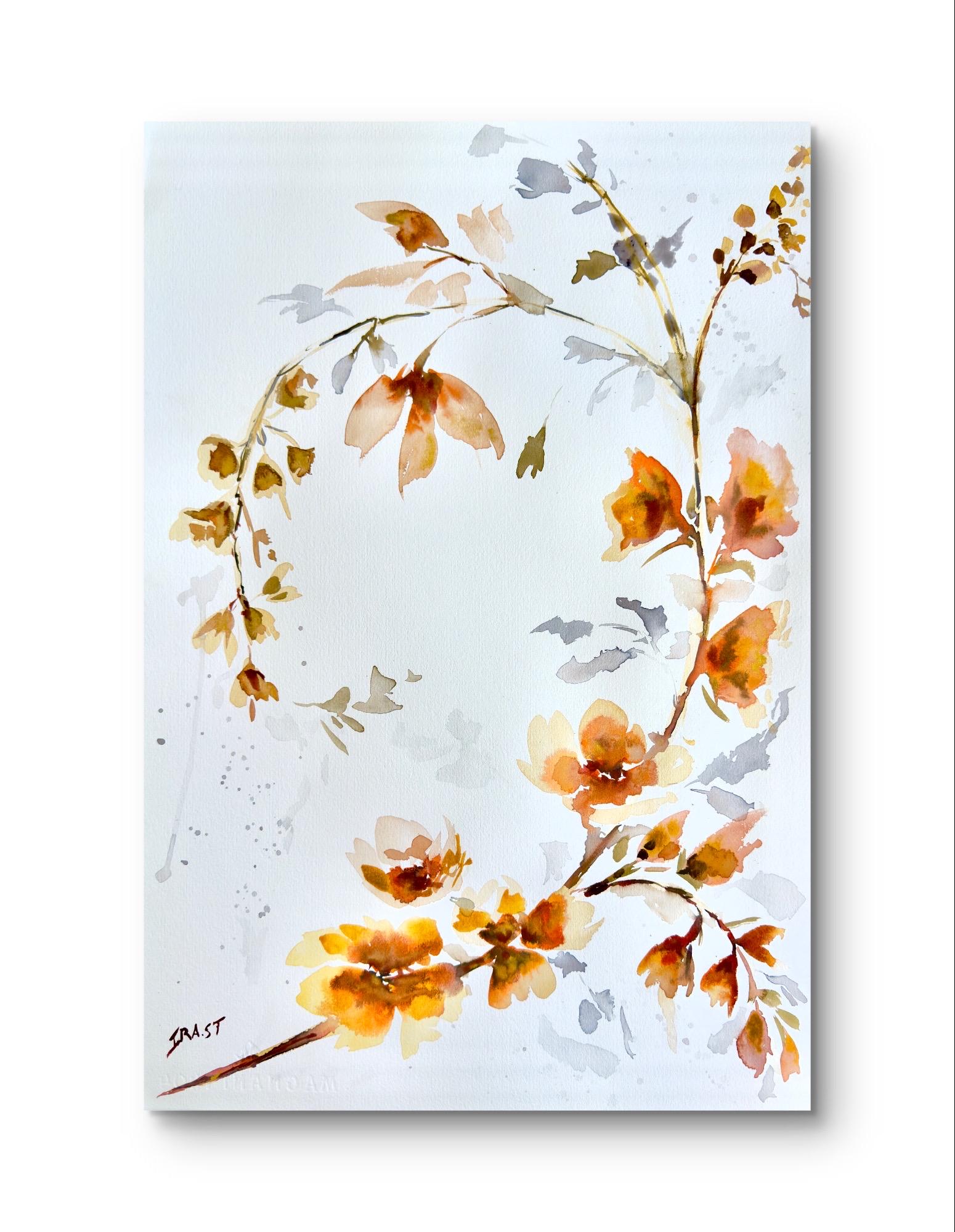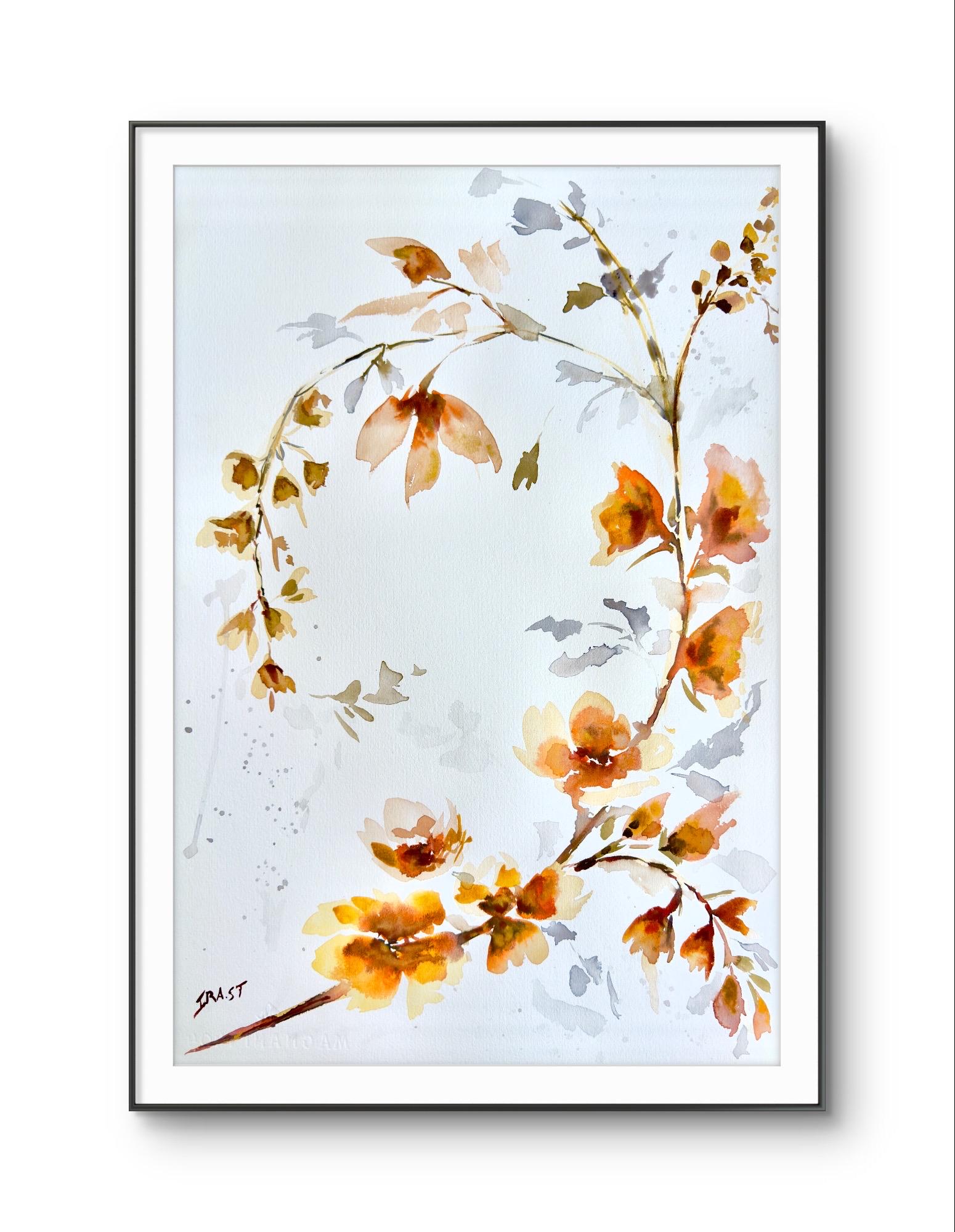 Original Watercolor Painting orange Floral botanical Wall Art Large Botanical Artwork 22×15.7 in