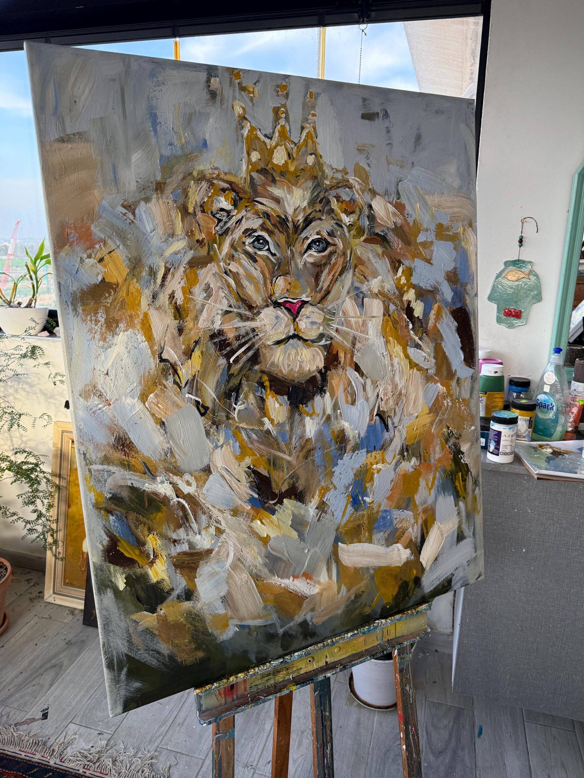 Add a bold and vibrant touch to your home decor with this stunning painting of a majestic lione . This original work of art is sure to be a conversation starter in any room.