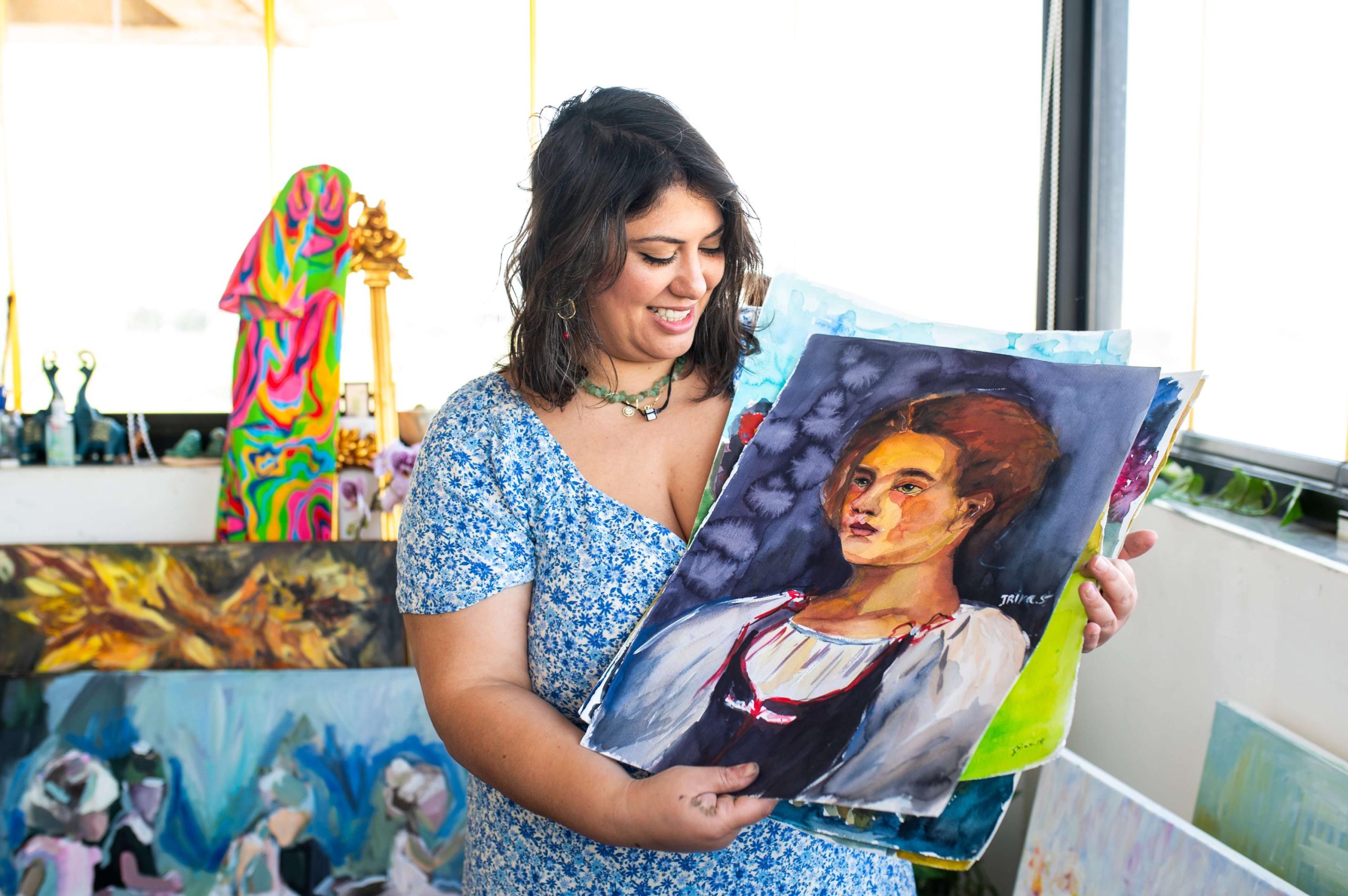 אני מציירת את הציור מאפס, עובדת עם צבעי צבעי שמן על בד קנבס איטלקי עבה ואיכותי עם קורה מעץ.