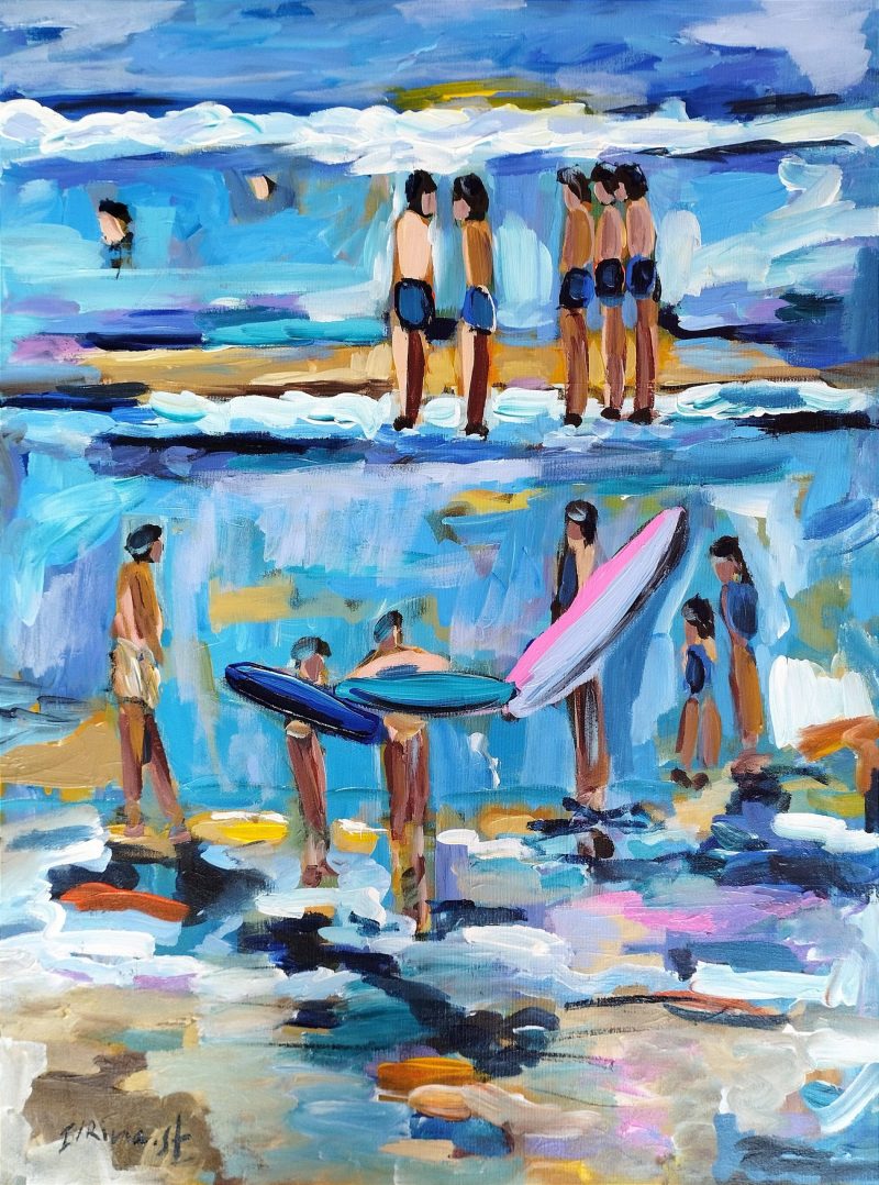 ציור שציירת בהשראת השיר של אביב גפן נערים על החוף