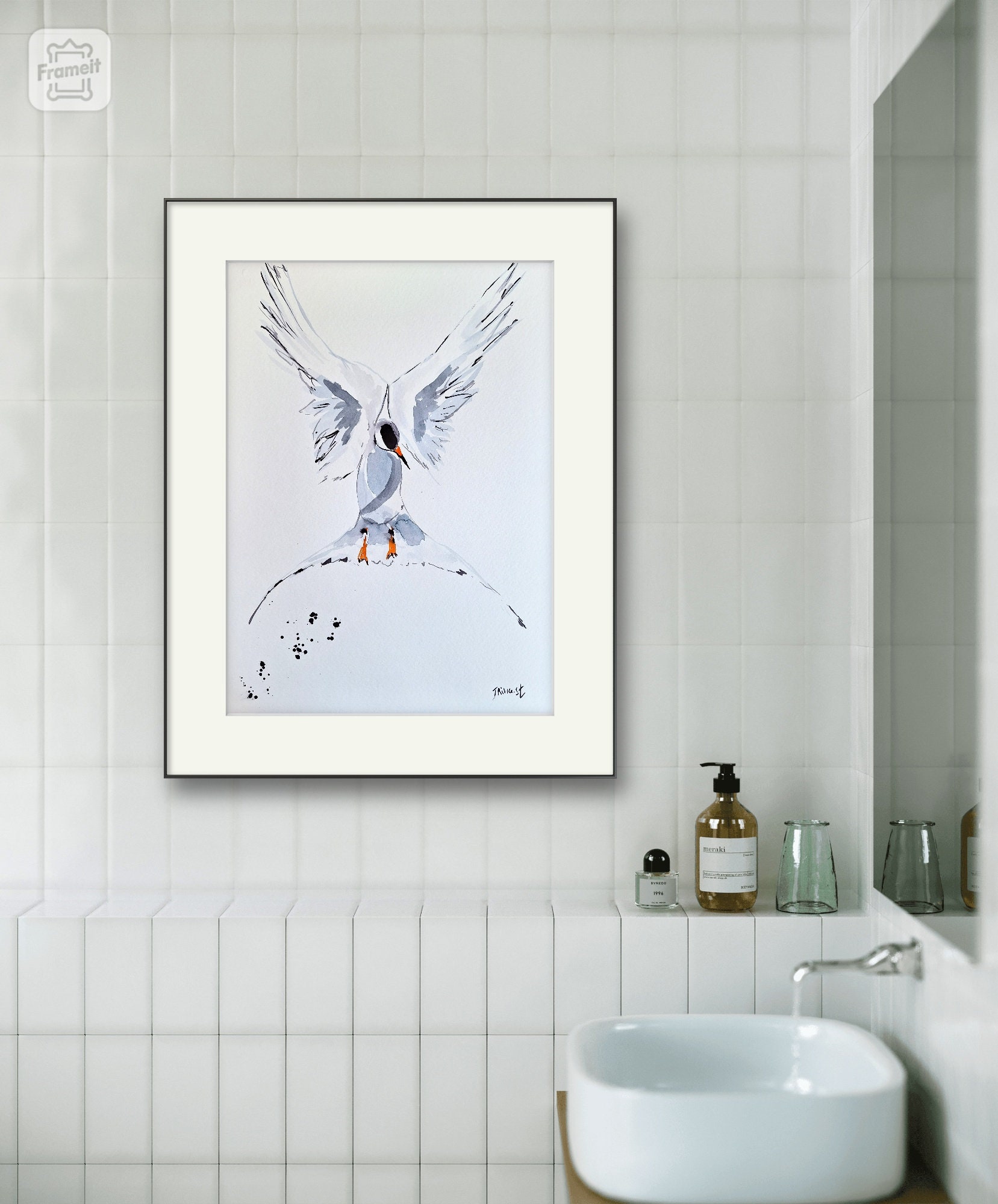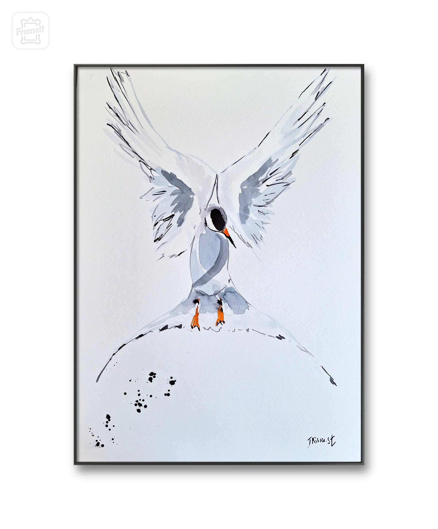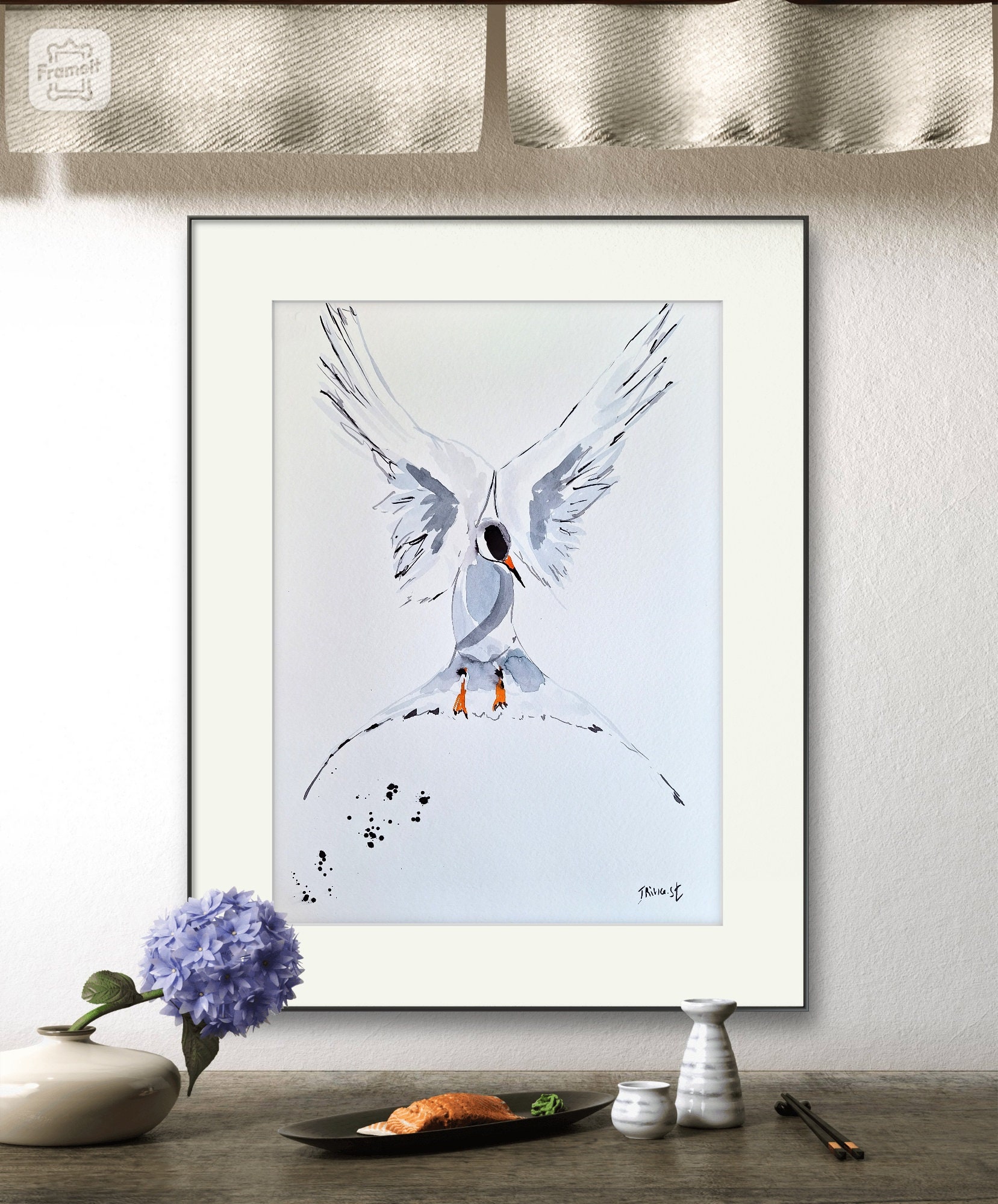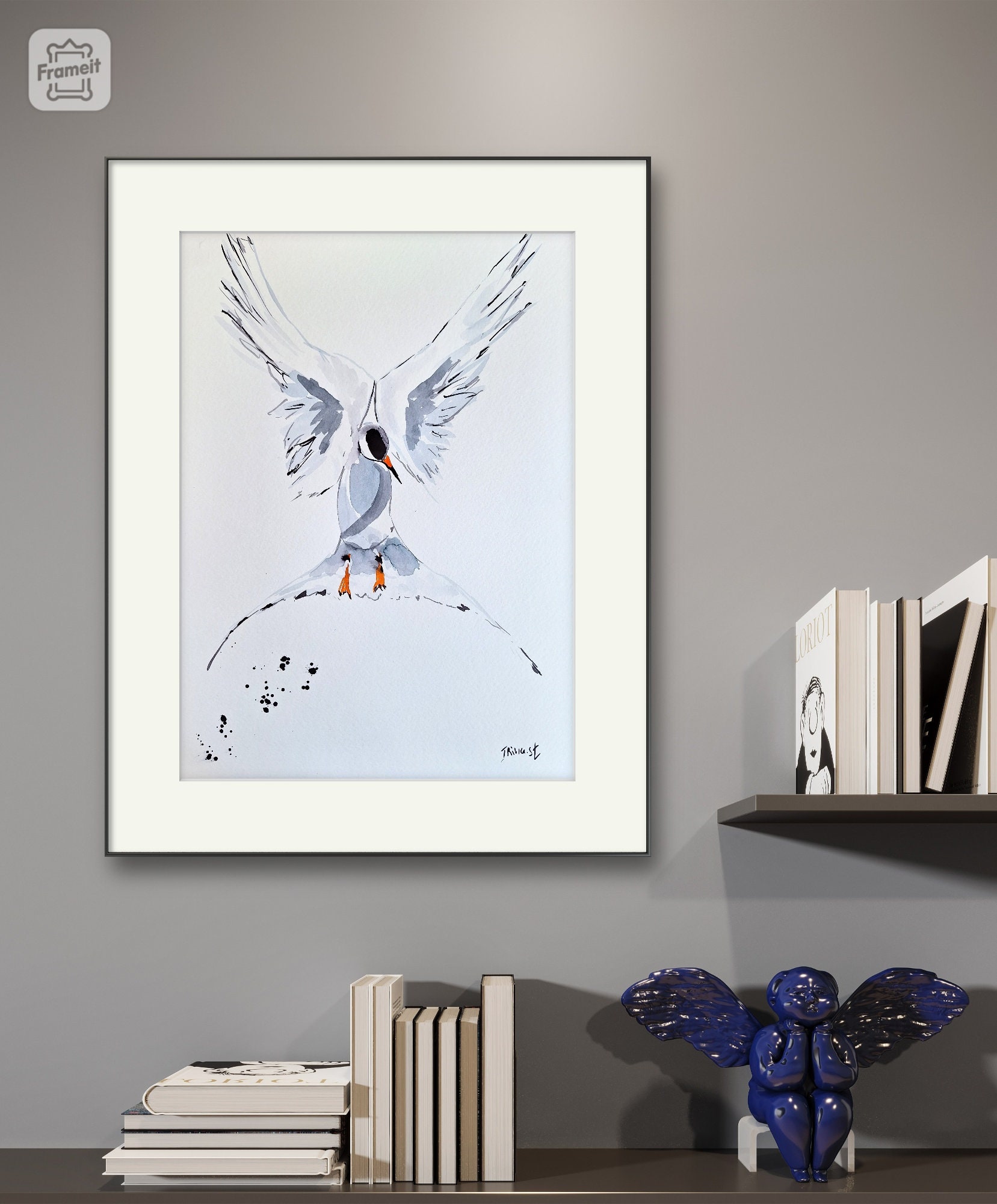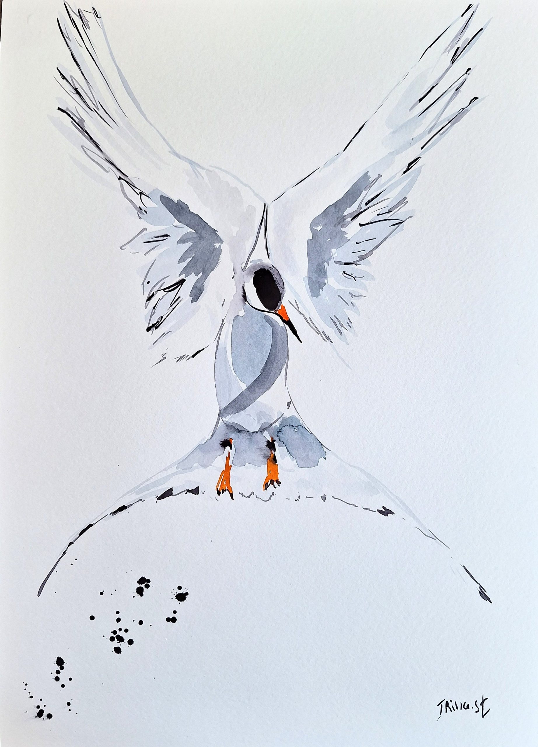 Swallows Bird Watercolor Painting: Black and White Ink Drawing (9.8/13.8")