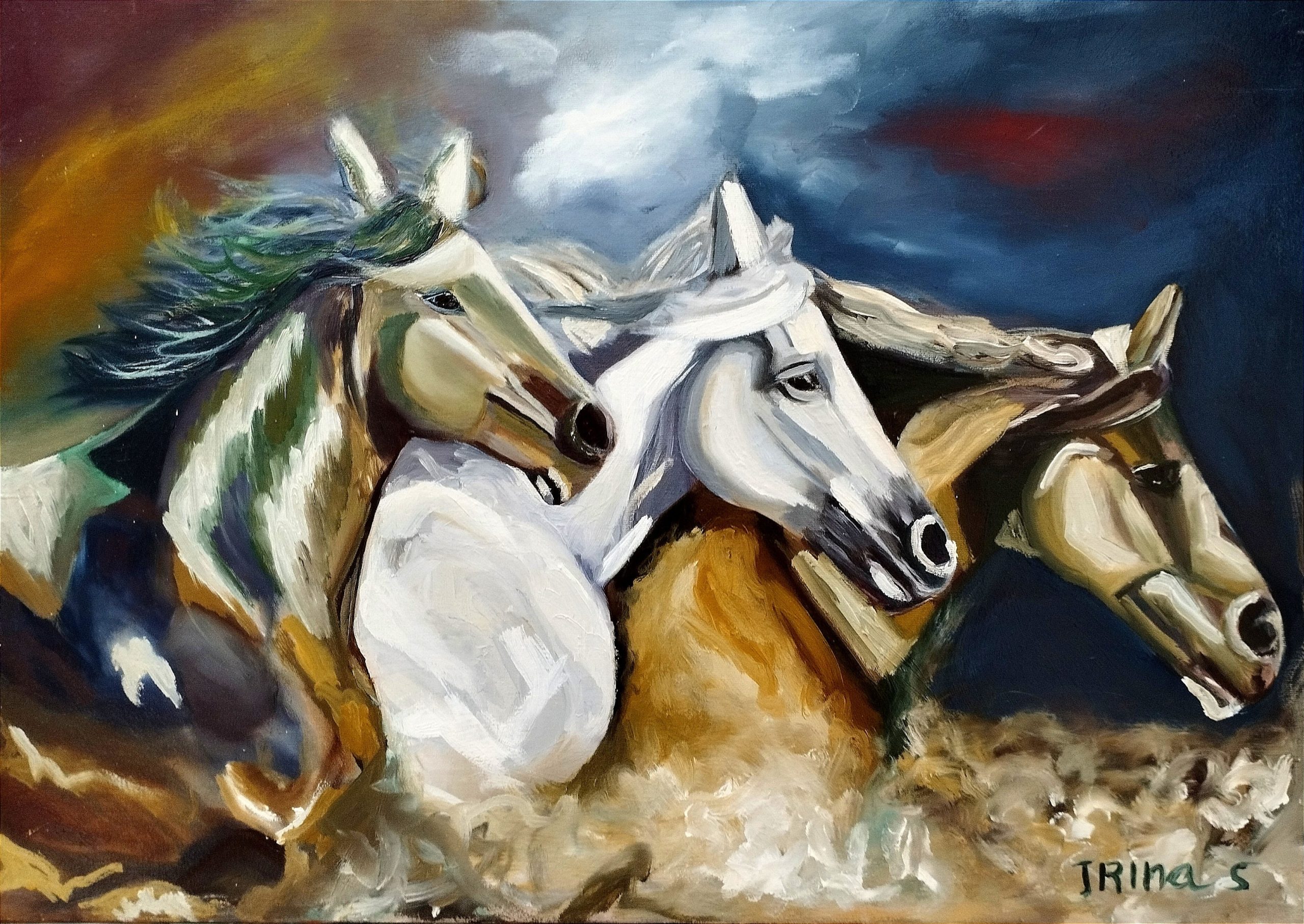 גלה את הקסם של חופש ושל עוצמה טבעית עם ציור זה של 3 סוסים בצבעי שמן על בד קנבס איטלקי איכותי. כל מכה של מברשת מספרת סיפור על תנועה, חן וכוח פנימי. הסוסים כאילו מתפרצים מתוך הבד, מביאים עימם תחושת חיות וחופש שממלאת את החלל שבו הם תלויים.