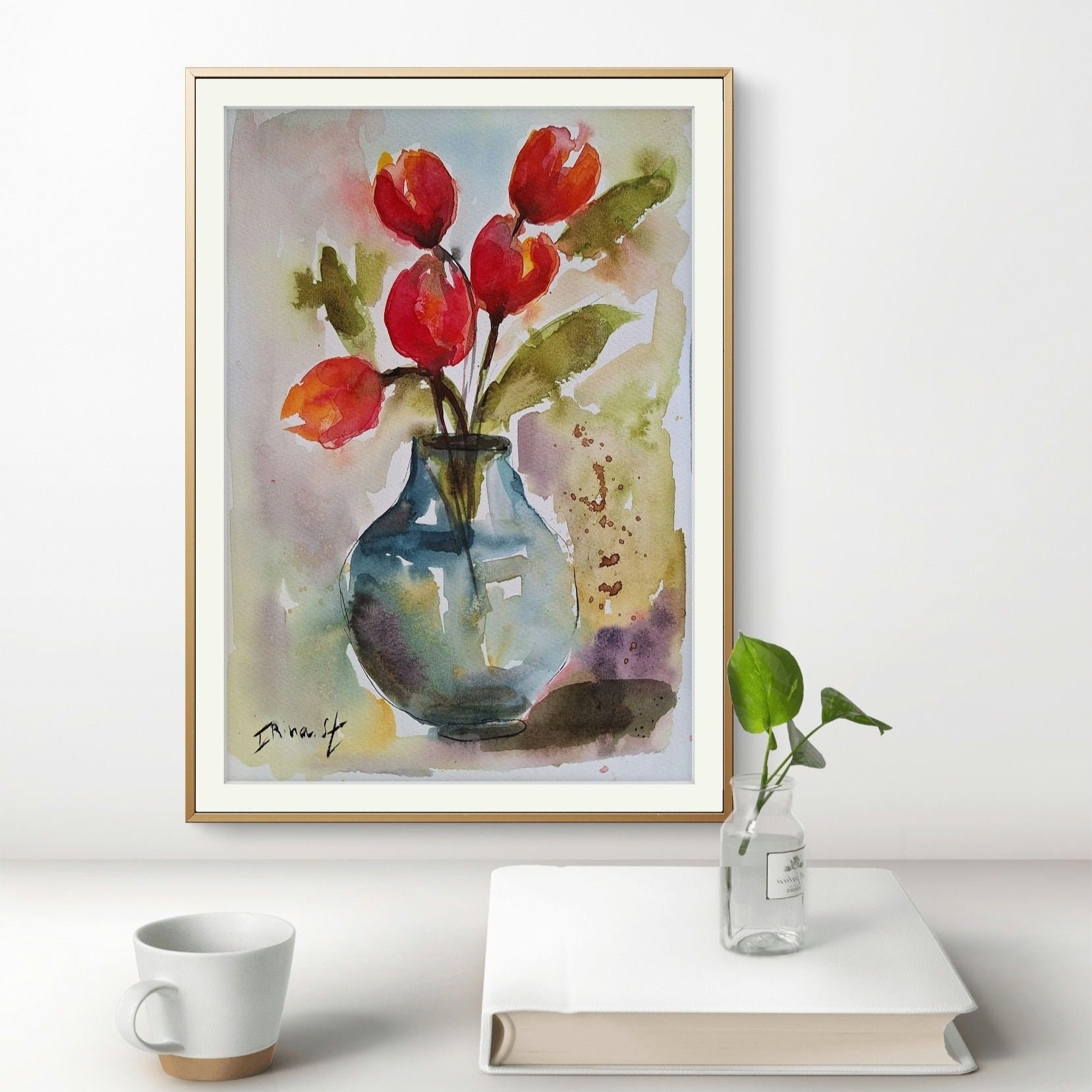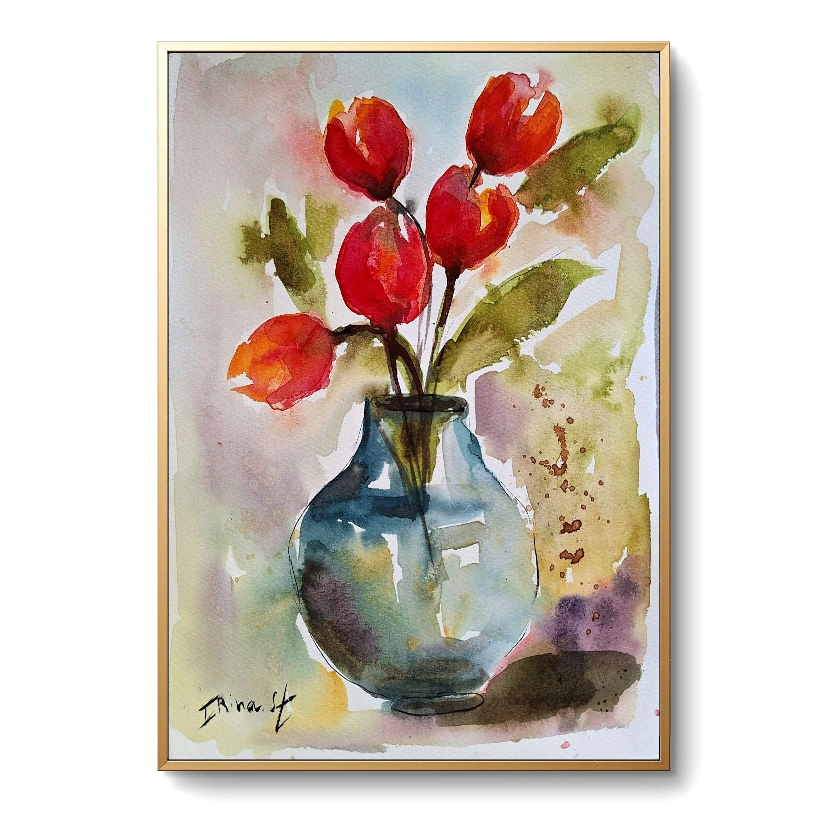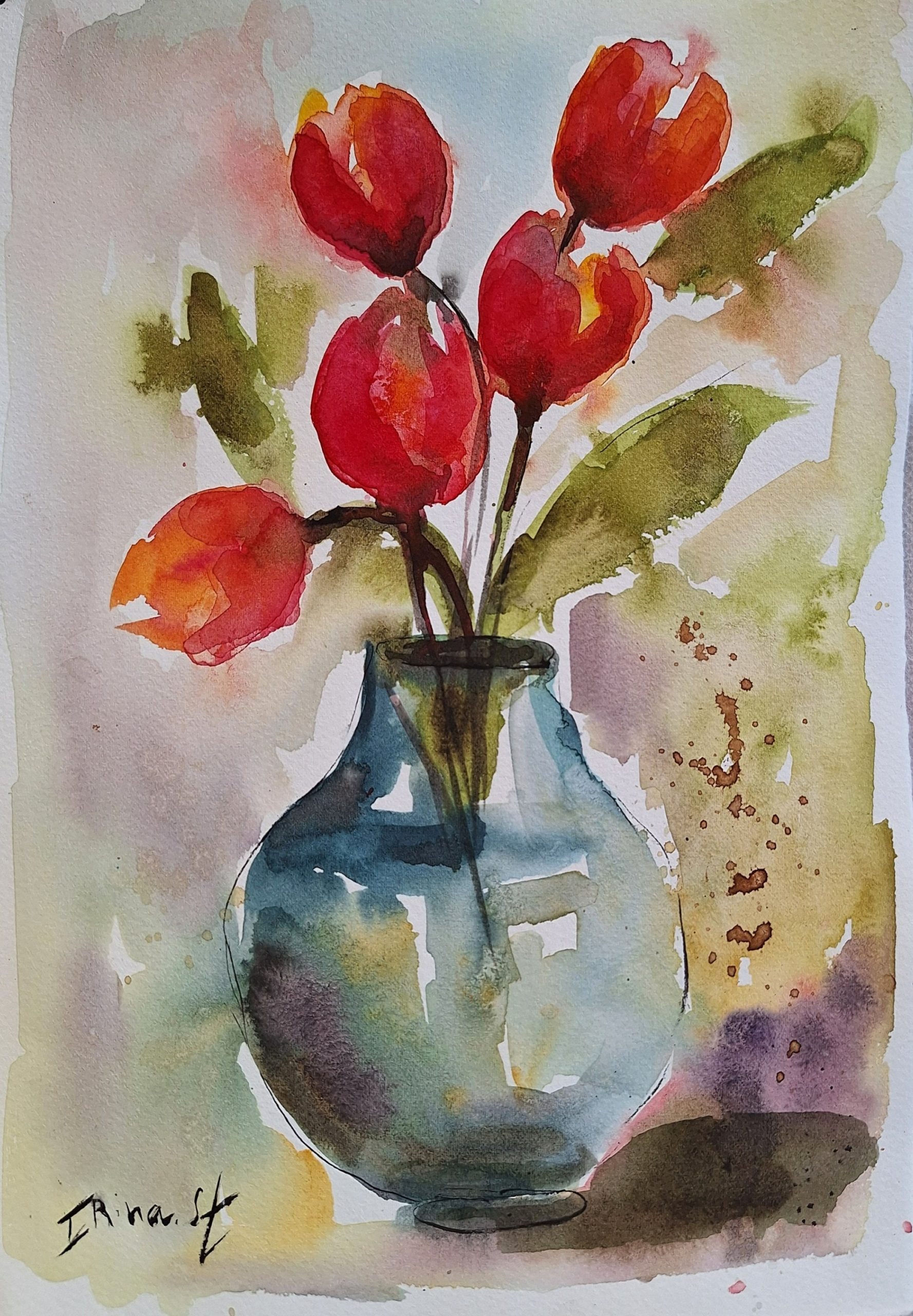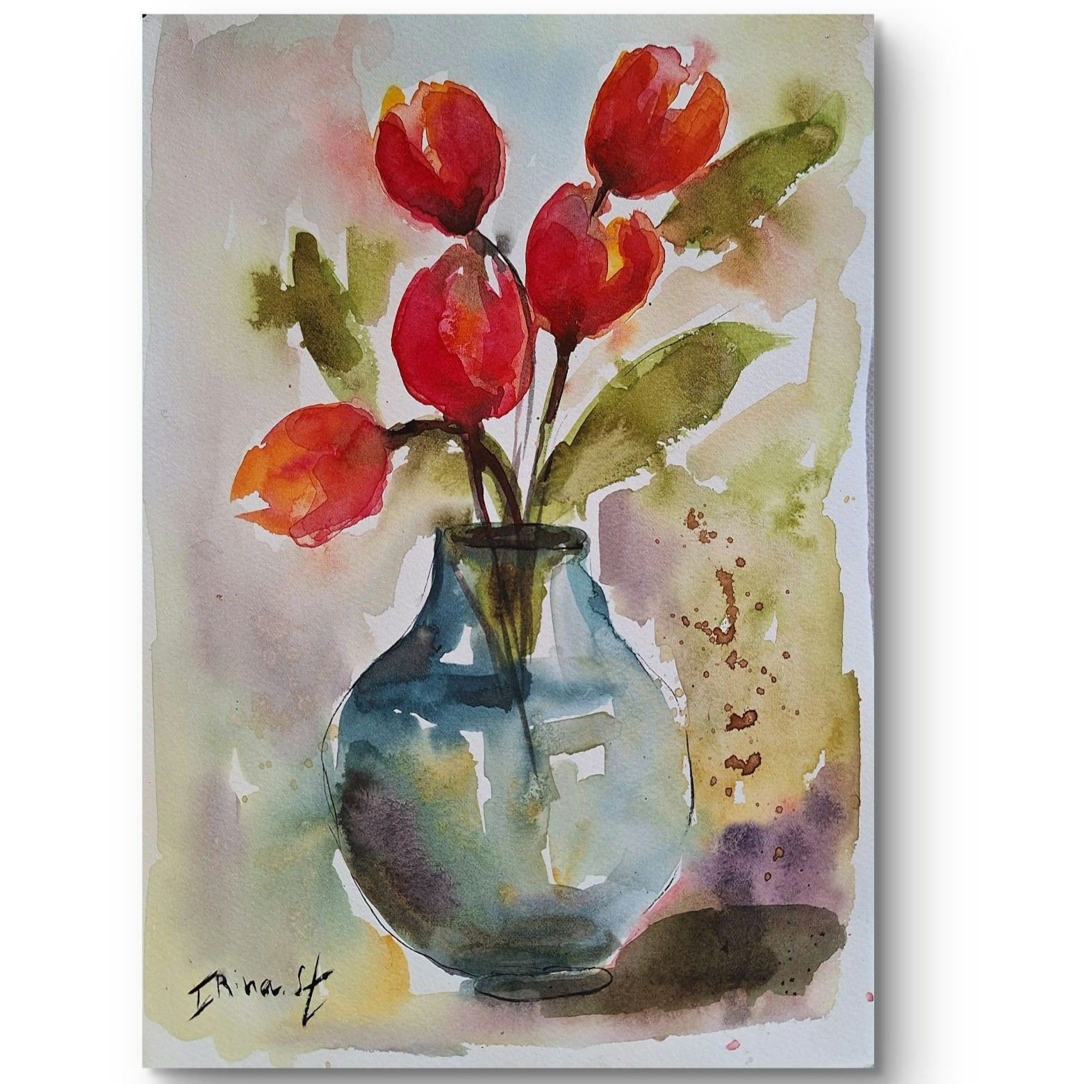 Tulips Watercolor Painting: Abstract Floral Art (7.8×11.8 in)