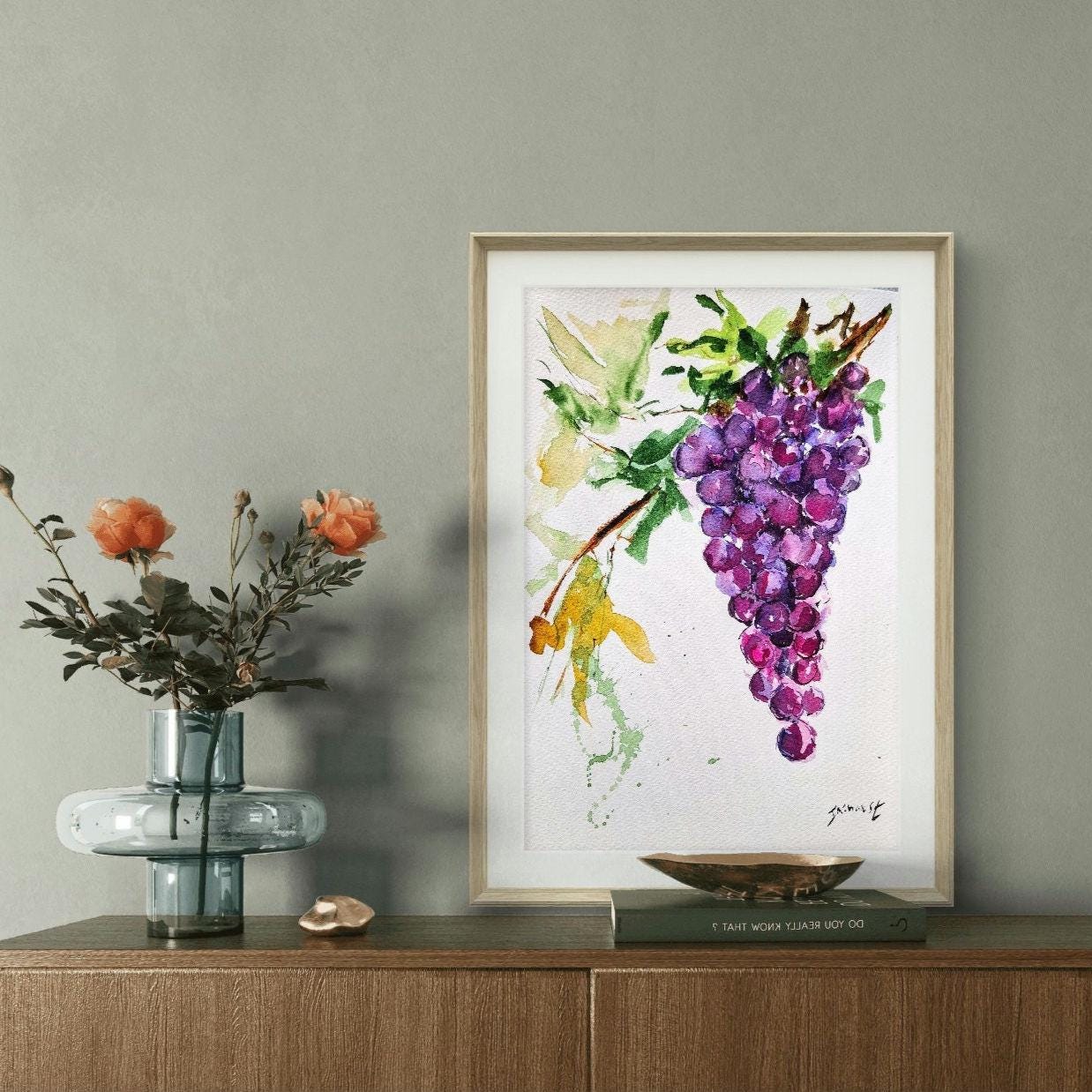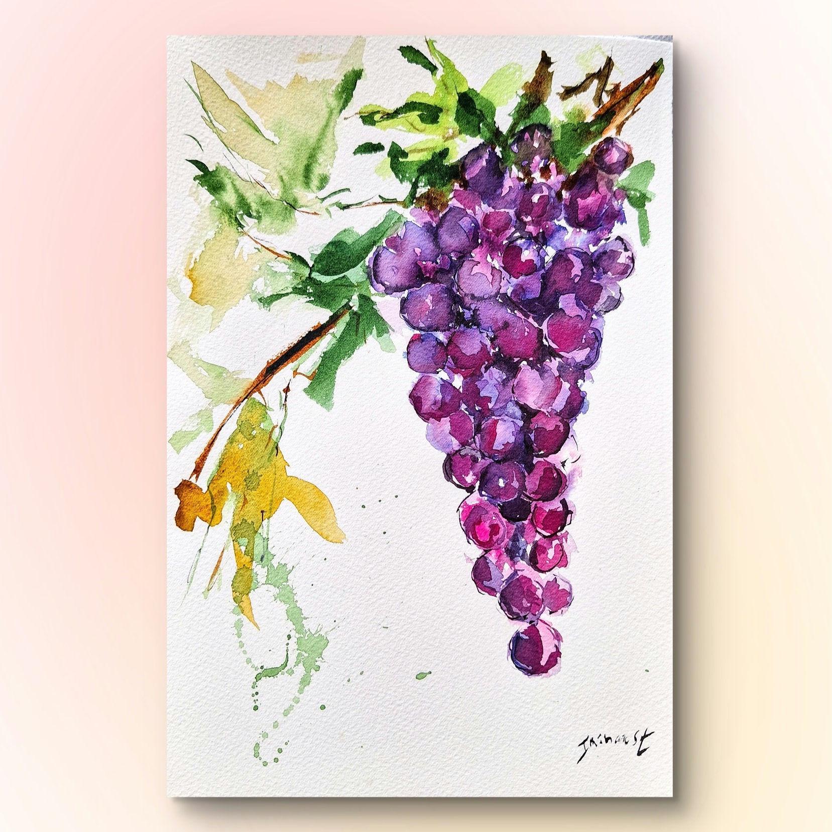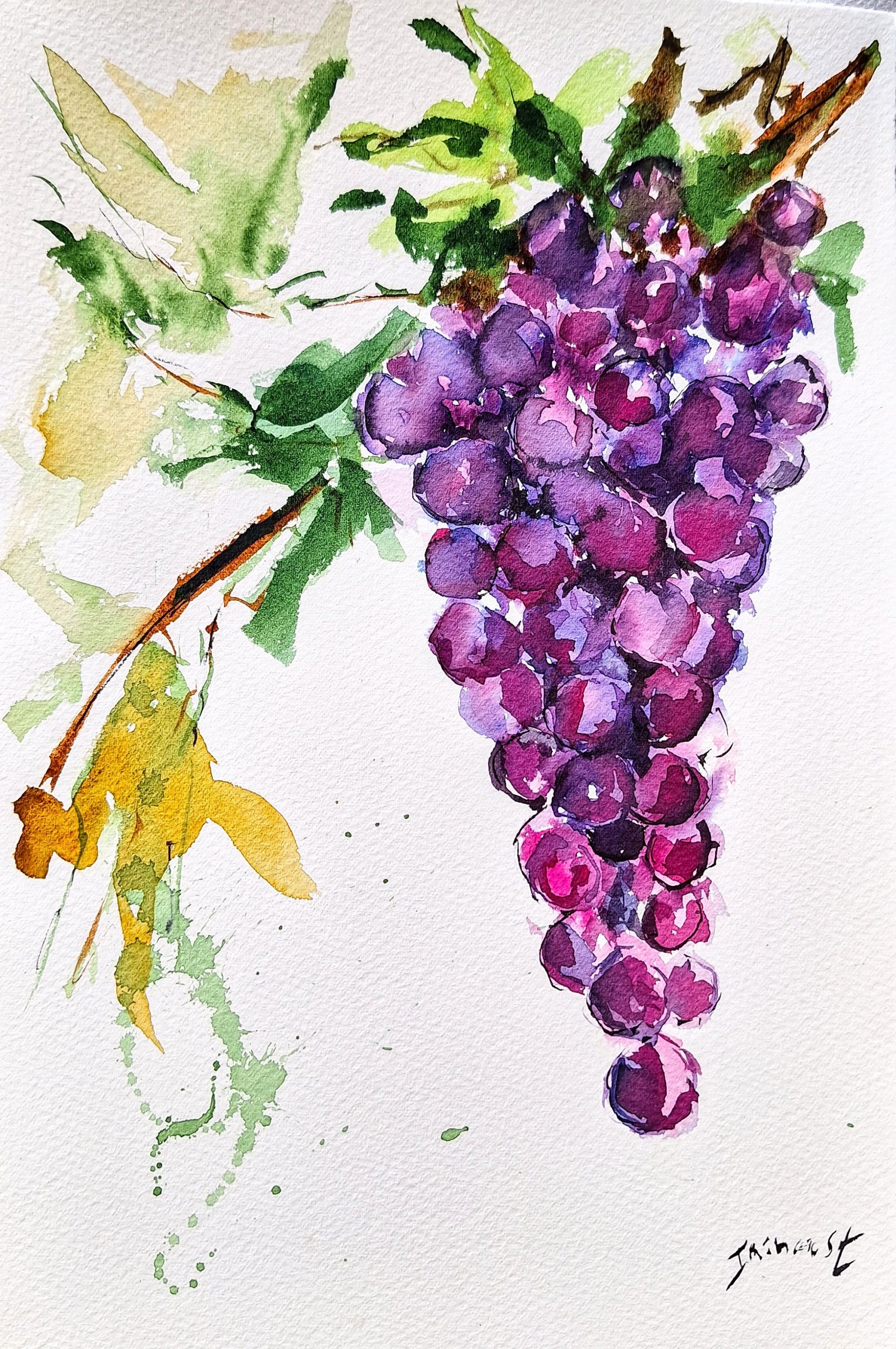 Watercolor Grape Painting: Abstract Floral Art on Cotton Paper